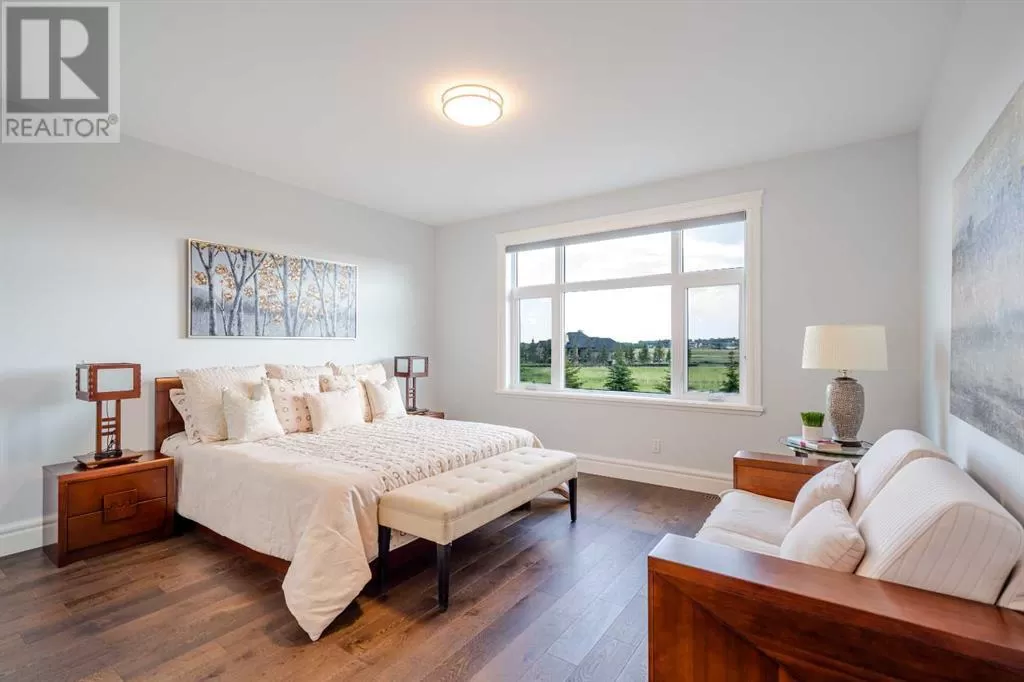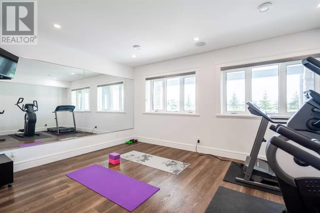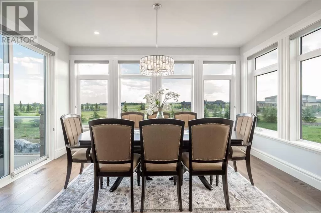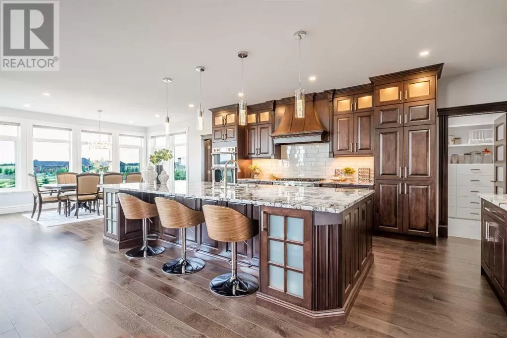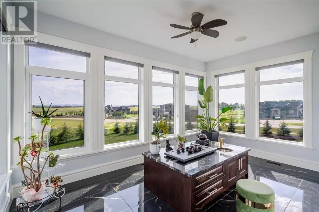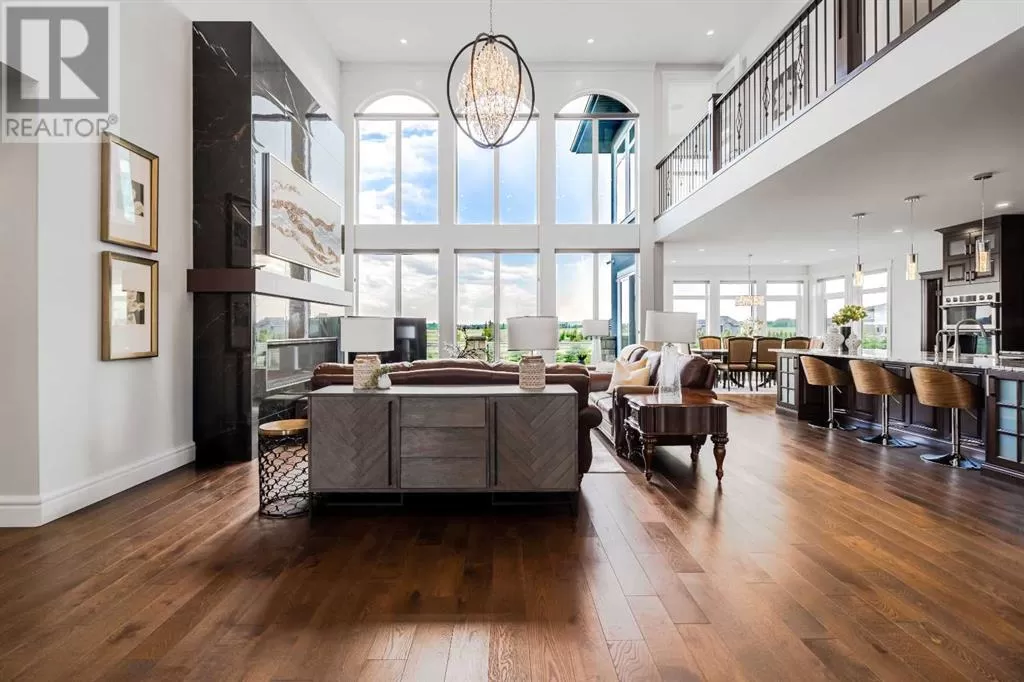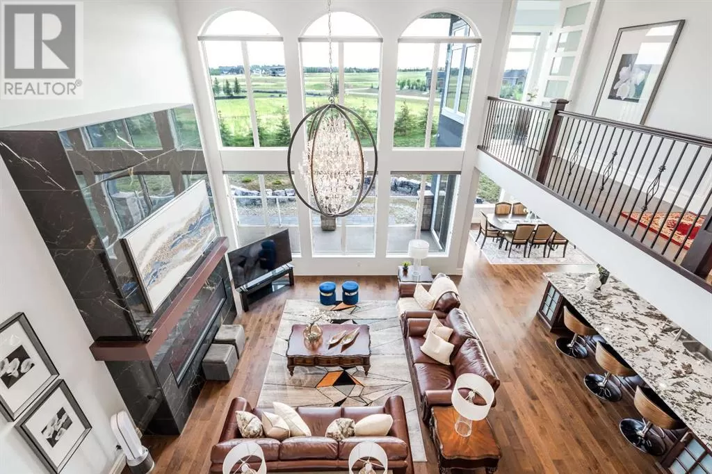 Welcome to Windhorse Manor, where refined luxury meets awe-inspiring mountain views. Built in 2020, this architectural showpiece offers a total of 7,954.4 square feet (including basement) of impeccably crafted living space, including a fully finished basement. With 6 bedrooms and 8 bathrooms, every inch of this home exudes elegance, functionality, and thoughtful design.Step into the grand foyer and be greeted by an open-to-below layout that frames the panoramic Rocky Mountain backdropâan ever-changing masterpiece visible from every angle. Expansive windows bathe the home in natural light, highlighting the exceptional craftsmanship and timeless finishes throughout.At the heart of the home lies a gourmet kitchen designed for culinary excellence, featuring top-tier built-in appliances, an oversized island, and a separate spice kitchen. 9-foot ceilings and engineered hardwood floors create an airy, sophisticated atmosphere ideal for everyday living and entertaining alike.Host with ease on the spacious deck and patio, complete with a BBQ gas lineâperfect for summer gatherings and alfresco dining. Downstairs, discover a full entertainment oasis: a private home theatre, home gym, recreation room, and wet bar, complemented by a stunning wine cellar. Thereâs even space allocated for your very own sauna retreat.Car enthusiasts will appreciate the heated triple car garage plus a dedicated RV garage, offering ample room for all your vehicles and toys. Every detail of this home has been curated to enhance your lifestyle.Nestled in the prestigious, serene community of Windhorse Manor, this estate combines tranquility with convenienceâset against the beauty of Albertaâs natural landscape.Donât miss your chance to own this truly unparalleled residence. Contact us today to book your private showing and step into the luxury of Windhorse Manor. (id:27476)