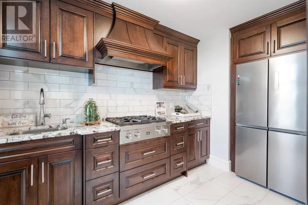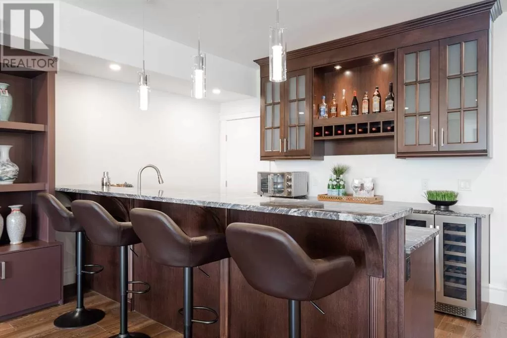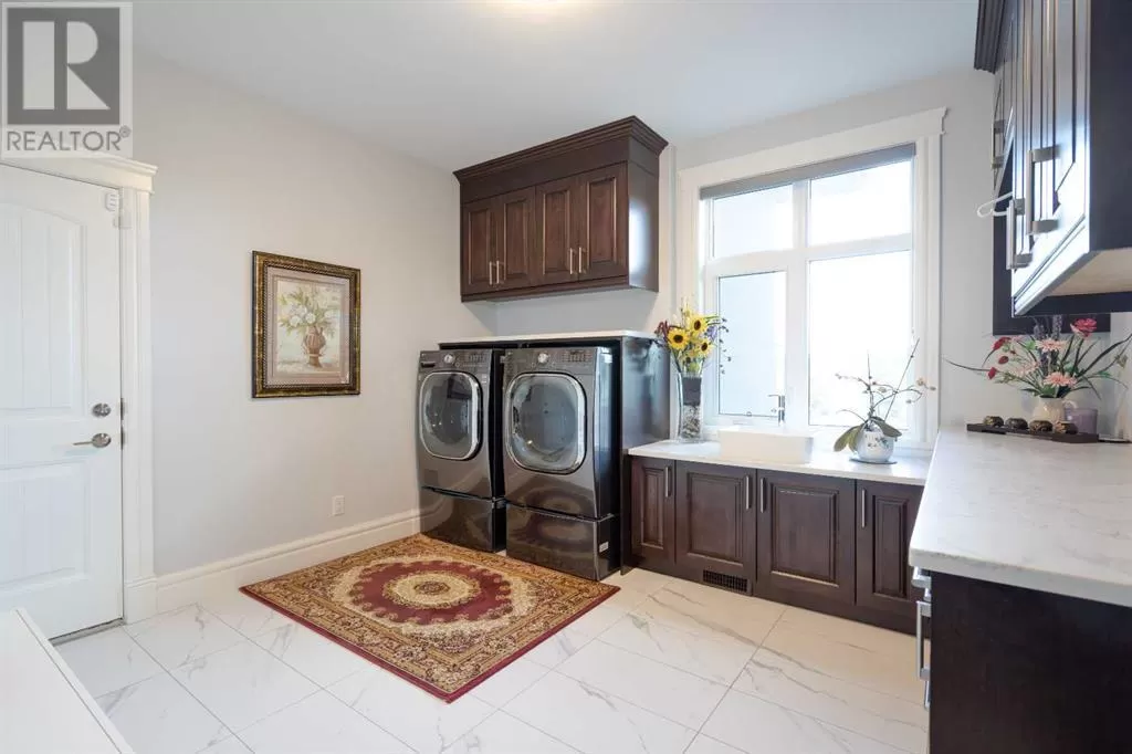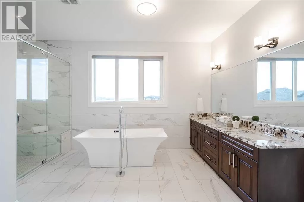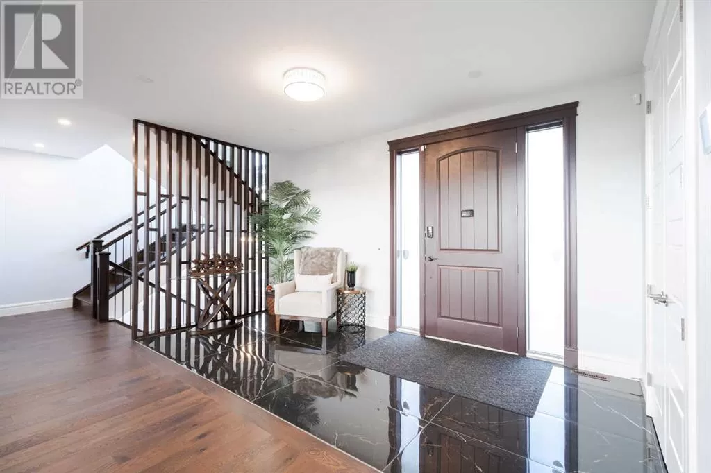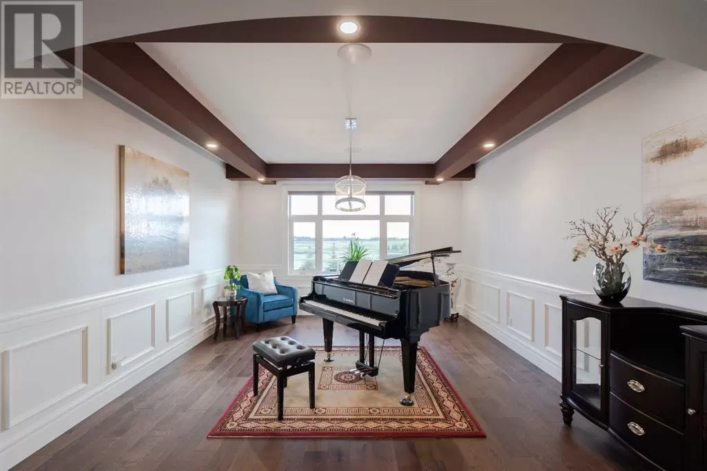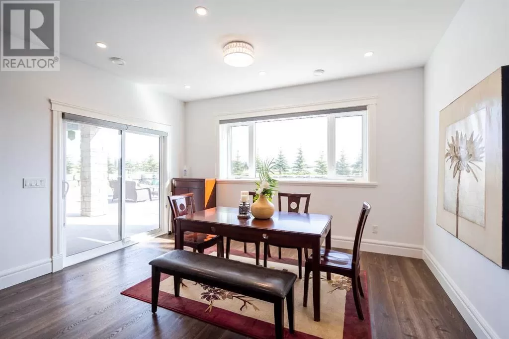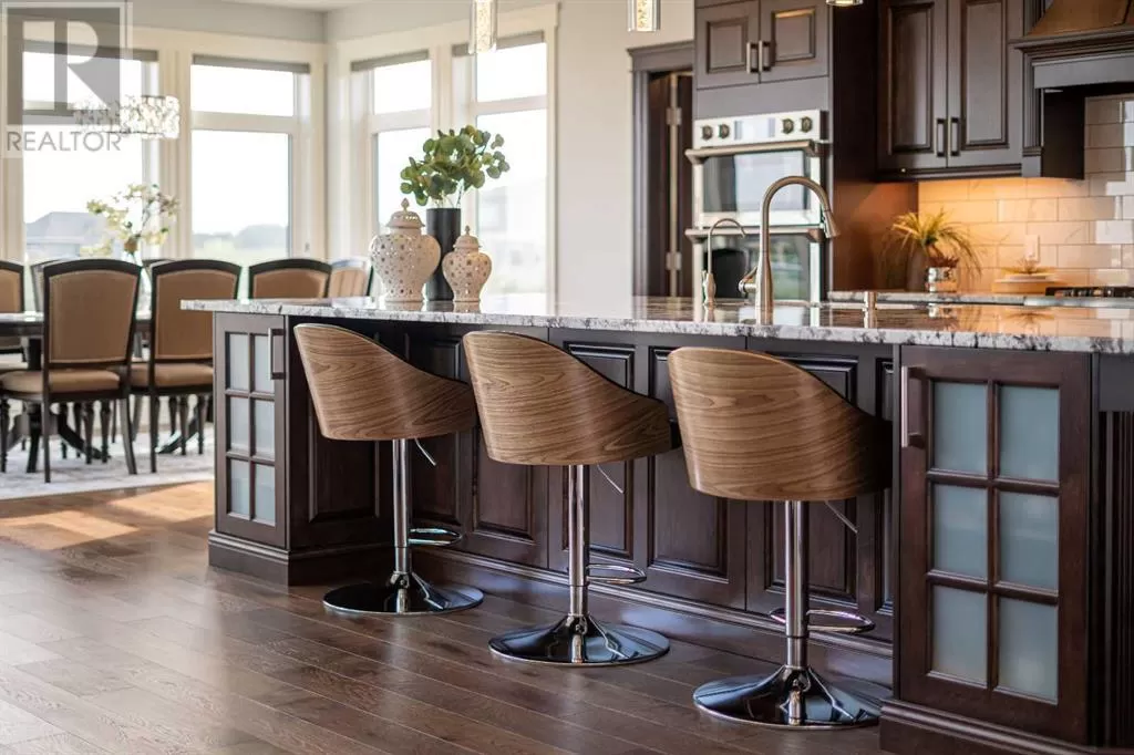 Welcome to Windhorse Manor, where refined luxury meets awe-inspiring mountain views. Built in 2020, this architectural showpiece offers a total of 7,954.4 square feet (including basement) of impeccably crafted living space, including a fully finished basement. With 6 bedrooms and 8 bathrooms, every inch of this home exudes elegance, functionality, and thoughtful design.Step into the grand foyer and be greeted by an open-to-below layout that frames the panoramic Rocky Mountain backdropâan ever-changing masterpiece visible from every angle. Expansive windows bathe the home in natural light, highlighting the exceptional craftsmanship and timeless finishes throughout.At the heart of the home lies a gourmet kitchen designed for culinary excellence, featuring top-tier built-in appliances, an oversized island, and a separate spice kitchen. 9-foot ceilings and engineered hardwood floors create an airy, sophisticated atmosphere ideal for everyday living and entertaining alike.Host with ease on the spacious deck and patio, complete with a BBQ gas lineâperfect for summer gatherings and alfresco dining. Downstairs, discover a full entertainment oasis: a private home theatre, home gym, recreation room, and wet bar, complemented by a stunning wine cellar. Thereâs even space allocated for your very own sauna retreat.Car enthusiasts will appreciate the heated triple car garage plus a dedicated RV garage, offering ample room for all your vehicles and toys. Every detail of this home has been curated to enhance your lifestyle.Nestled in the prestigious, serene community of Windhorse Manor, this estate combines tranquility with convenienceâset against the beauty of Albertaâs natural landscape.Donât miss your chance to own this truly unparalleled residence. Contact us today to book your private showing and step into the luxury of Windhorse Manor. (id:27476)