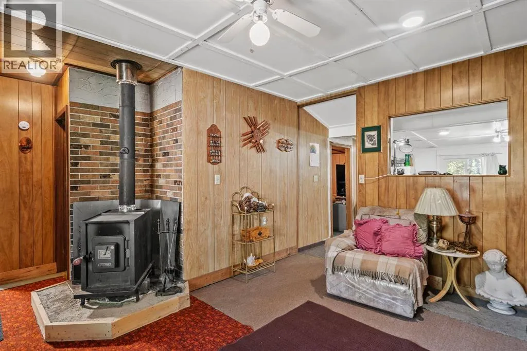 Escape to your own private forest with this charming, rustic cabin nestled among the trees on 19.15 acres in the sought after Grand Valley area, only 18 minutes north of Cochrane. The property has good access with a road directly off the main road which leads to a quaint 2 bedroom cabin in a clearing. Perfectly situated on a lush, wooded lot, this cozy getaway offers a tranquil outdoor living space complete with a picnic area, patio, and ample room to relax under the canopy of mature trees. Whether you're roasting marshmallows by the fire or enjoying your morning coffee on the deck, this property invites you to slow down and soak in the beauty of nature. Inside, youâll find a warm and welcoming atmosphere with vintage wood paneling and a classic wood-burning stove. The spacious eat-in kitchen offers everything you need, including ample countertop space, a double sink, and wood cabinetry, making it a functional hub for cooking and gathering. The 2 bedrooms offer a quiet and cozy retreat, wrapped in warm wood finishes that add to the cabinâs charm. There's plenty of space for your furnishings, with natural light filtering in to create a peaceful atmosphereâideal for unwinding after a day spent in the great outdoors. The bathroom is located conveniently near the common living areas and includes a tub, vanity, and storage space. The property is desirable as it already includes power, an excellent well & propane heat indoors. There are multiple storage sheds in the yard for firewood or your toys. While modest, the cabin adds recreational value or can be used while building your dream home in the already cleared area. Adding to the properties appeal is that it sits at the end of a dead end road & it backs onto crown land. Whether you're searching for a peaceful weekend retreat or a year-round escape to nature, this properties proximity to Cochrane provides the perfect blend of simplicity, and a chance to unwind. The well has a pump and is steps away from the cabin but currently not hooked up to the cabin. With over 19 acres you have plenty of space for the children or pets to roam outside, and your own supply of wood to heat the cabin. PLEASE NOTE: if your getting financing you would need a minimum of 20% down. There is also no septic system on the property. This property is currently not able to further subdivided. Call to book a showing today! (id:27476)