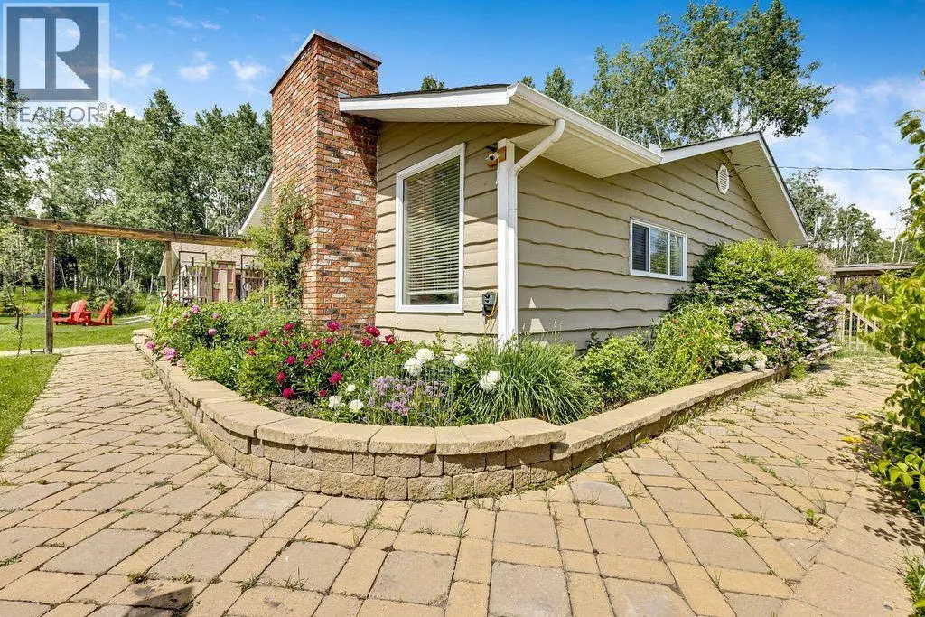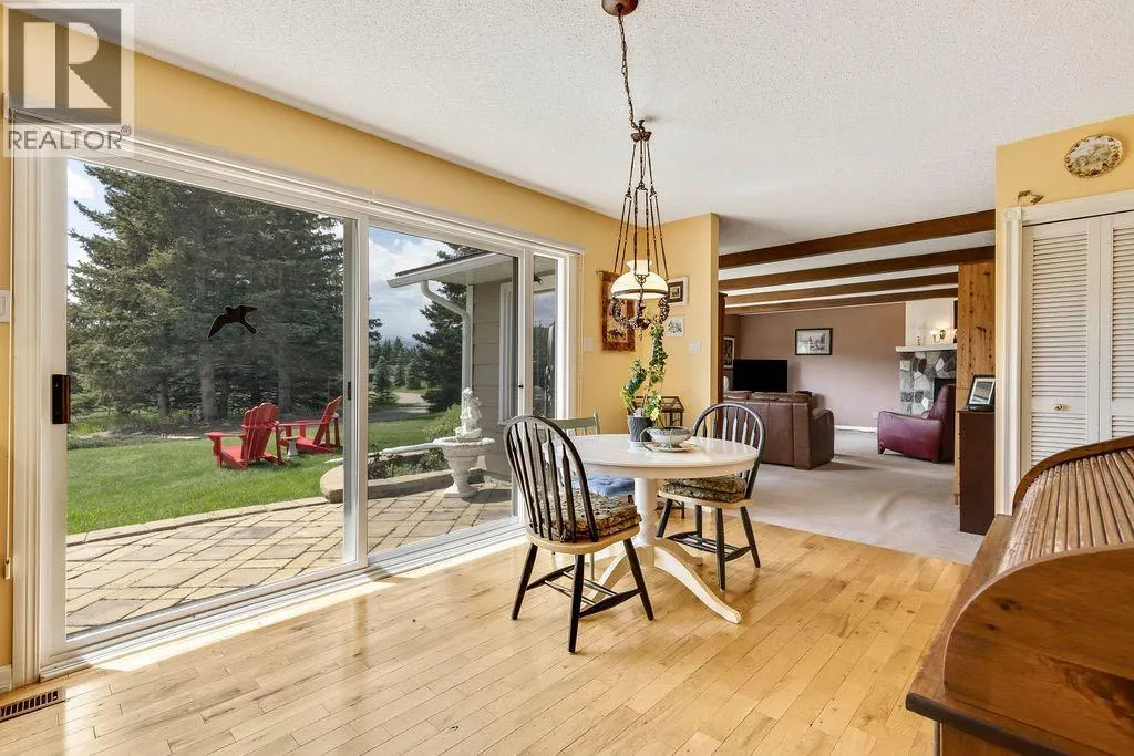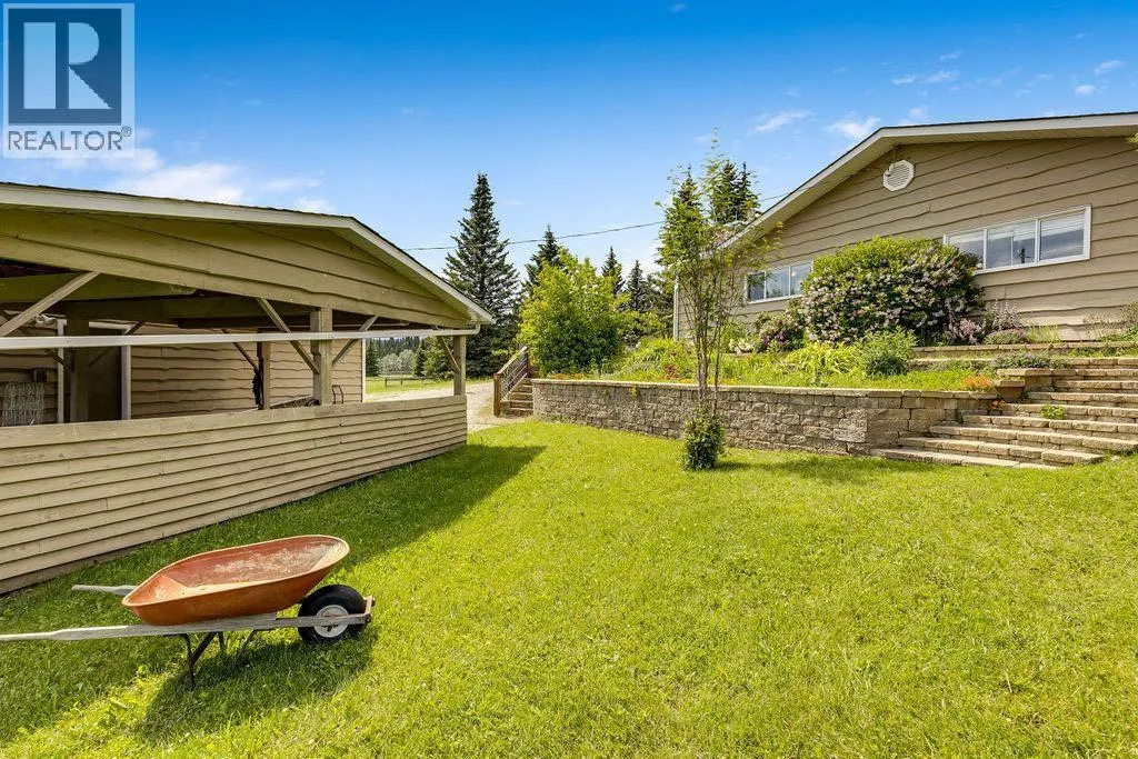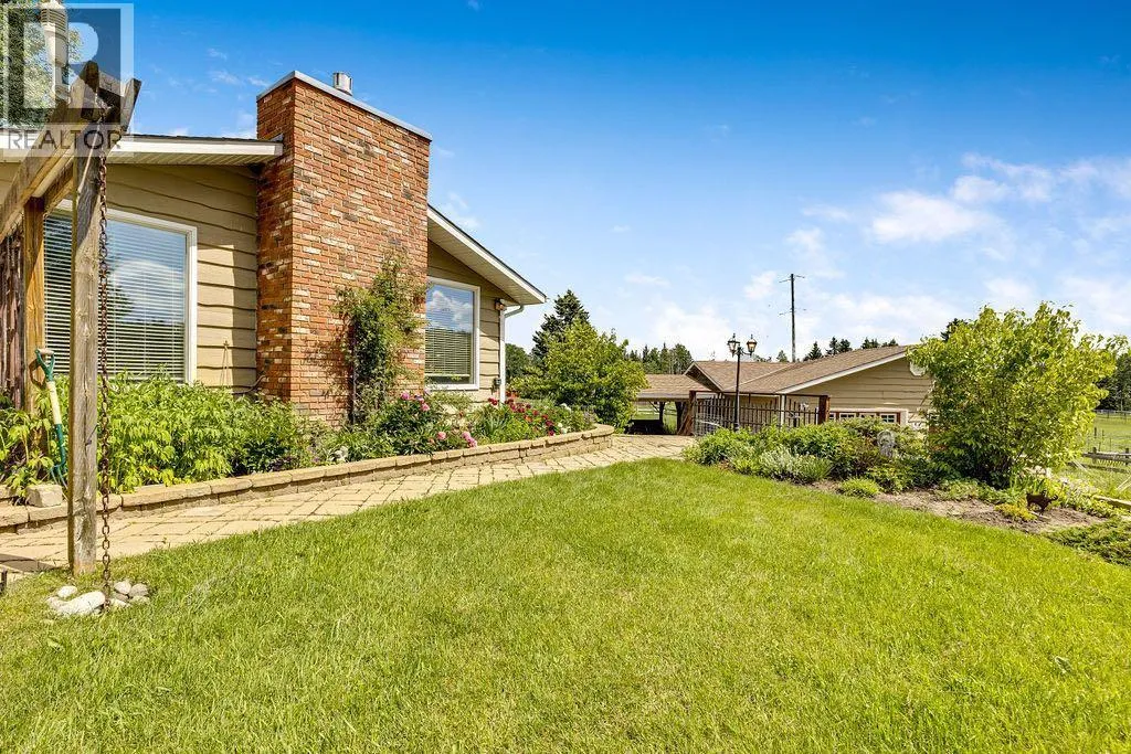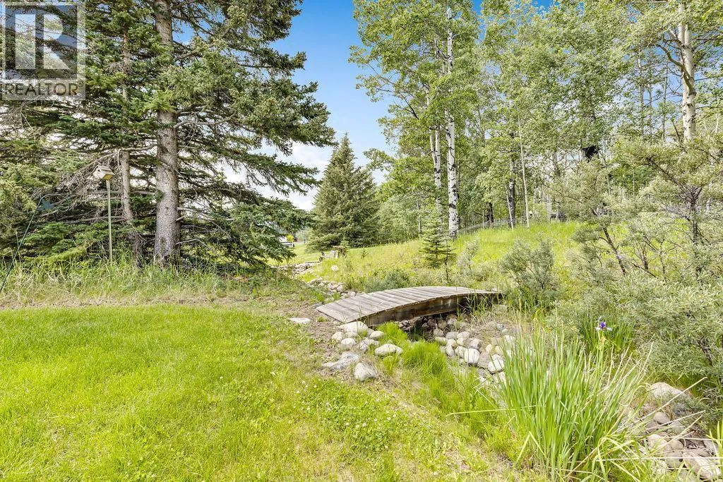 Here is your opportunity to live in one of West Bragg Creek's special communities. Located mid way between the Hamlet of Bragg Creek and the trail heads in K Country yet far from the noise and bustle of the main road it is the perfect place to kick off your boots and live the quiet life. This large bungalow sits on 4.21 acres with a view of Moose Mountain and a share in the 70 acres of common land. Lots of ongoing renovations, hardwood floors, huge primary bedroom with great ensuite and walk in closet, 3 more generous bedrooms on the main floor. Sunny kitchen is the perfect place to start the day watching your horses graze and the sunshine over Moose Mountain. Large living room has brick fireplace with insert, vaulted ceilings .. and of course that view again. Dining room will allow lots of guests for dinner and the patio and deck with the outdoor fireplace, gazebo and greenhouse is made for casual entertaining. Take a walk around the house. The flower gardens are stunning. There is also a little bridge over a dry stream bed leading to a pond and another great place to have a seat .. and yes catch that view! Basement development includes a family room and a rec room as well as a hobby shop. Behind the garage is a horse shelter with an attached feed/tack room. Saddle and Sirloin was developed on the site where the first settlers to the region decided to call home in the early 1900s. Bragg Creek - the actual creek named Bragg Creek- burbles through the lands and in this spot George Livingston built his log cabin. He picked a special place. The development was created in 1958 and 33 lots form the community. The balance of the lands , 70 acres, were transferred to an entity, the Bragg Valley Hunt Club, and owners become members of the BVHC on purchasing property. Special rights come with this including the private road access, the Livingston picnic shelter , a 100 x 200 outdoor riding arena and trails galore to walk the dog. Residents can keep up to 6 horses per lot a nd grazing is allowed on the community land during summer months. Fees to BVHC amount to $770 annually at this time. This is NOT a condo fee as the community was developed before condo was a word! These homes do not come on the market very often. Once a Saddle and Sirloin resident there is really no other place you want to live. Take this opportunity to be a part of this unique lifestyle. George Livingston could have lived anywhere out here but this is where he decided to stay. (id:27476)