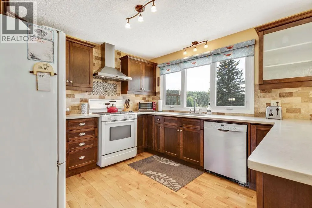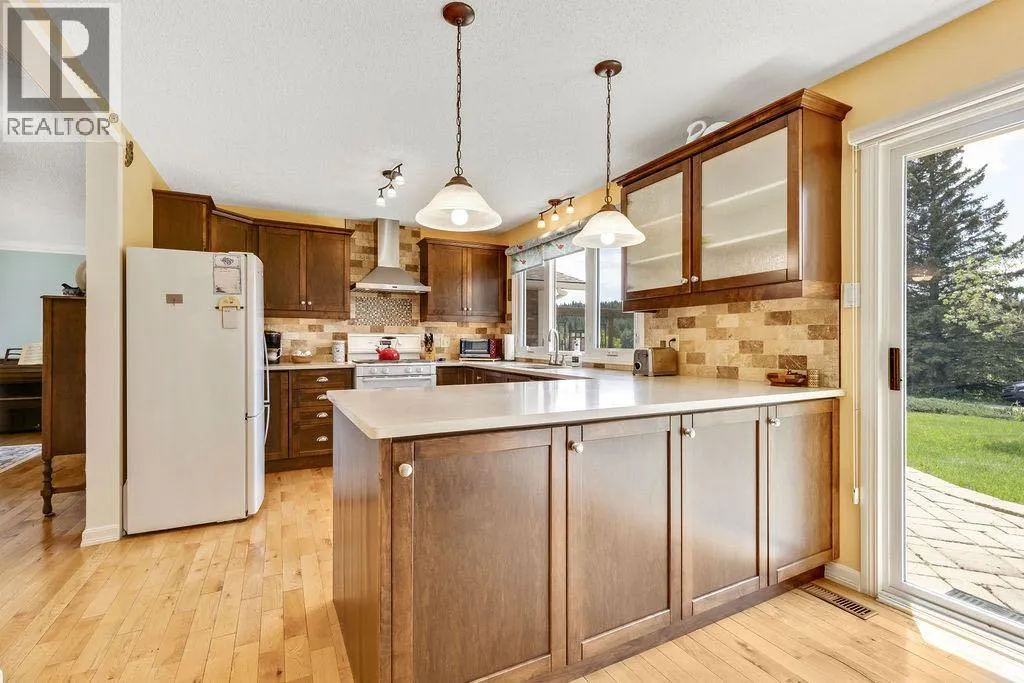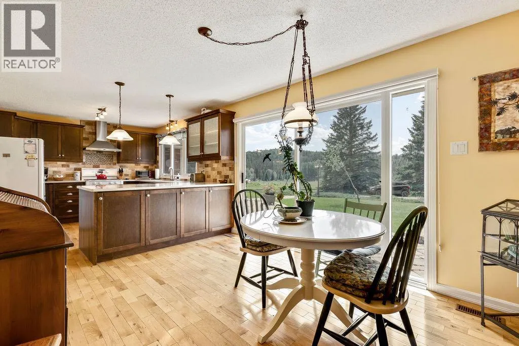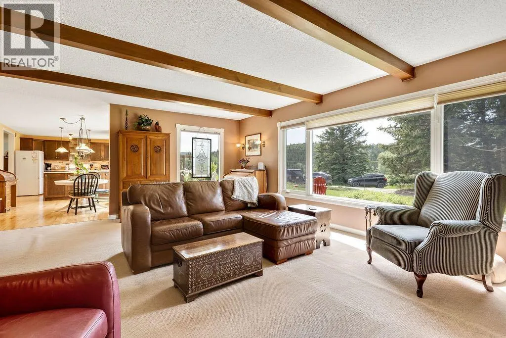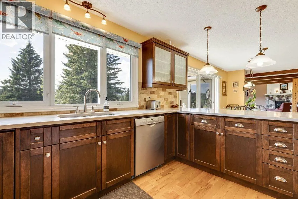 Here is your opportunity to live in one of West Bragg Creek's special communities. Located mid way between the Hamlet of Bragg Creek and the trail heads in K Country yet far from the noise and bustle of the main road it is the perfect place to kick off your boots and live the quiet life. This large bungalow sits on 4.21 acres with a view of Moose Mountain and a share in the 70 acres of common land. Lots of ongoing renovations, hardwood floors, huge primary bedroom with great ensuite and walk in closet, 3 more generous bedrooms on the main floor. Sunny kitchen is the perfect place to start the day watching your horses graze and the sunshine over Moose Mountain. Large living room has brick fireplace with insert, vaulted ceilings .. and of course that view again. Dining room will allow lots of guests for dinner and the patio and deck with the outdoor fireplace, gazebo and greenhouse is made for casual entertaining. Take a walk around the house. The flower gardens are stunning. There is also a little bridge over a dry stream bed leading to a pond and another great place to have a seat .. and yes catch that view! Basement development includes a family room and a rec room as well as a hobby shop. Behind the garage is a horse shelter with an attached feed/tack room. Saddle and Sirloin was developed on the site where the first settlers to the region decided to call home in the early 1900s. Bragg Creek - the actual creek named Bragg Creek- burbles through the lands and in this spot George Livingston built his log cabin. He picked a special place. The development was created in 1958 and 33 lots form the community. The balance of the lands , 70 acres, were transferred to an entity, the Bragg Valley Hunt Club, and owners become members of the BVHC on purchasing property. Special rights come with this including the private road access, the Livingston picnic shelter , a 100 x 200 outdoor riding arena and trails galore to walk the dog. Residents can keep up to 6 horses per lot a nd grazing is allowed on the community land during summer months. Fees to BVHC amount to $770 annually at this time. This is NOT a condo fee as the community was developed before condo was a word! These homes do not come on the market very often. Once a Saddle and Sirloin resident there is really no other place you want to live. Take this opportunity to be a part of this unique lifestyle. George Livingston could have lived anywhere out here but this is where he decided to stay. (id:27476)