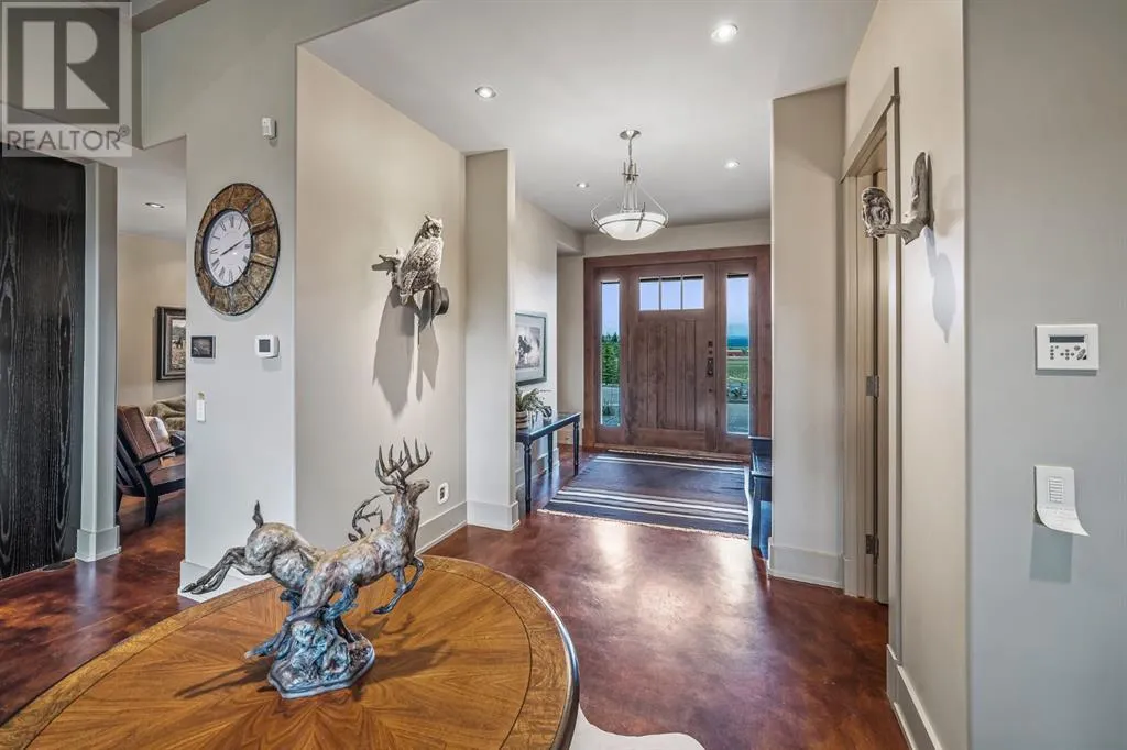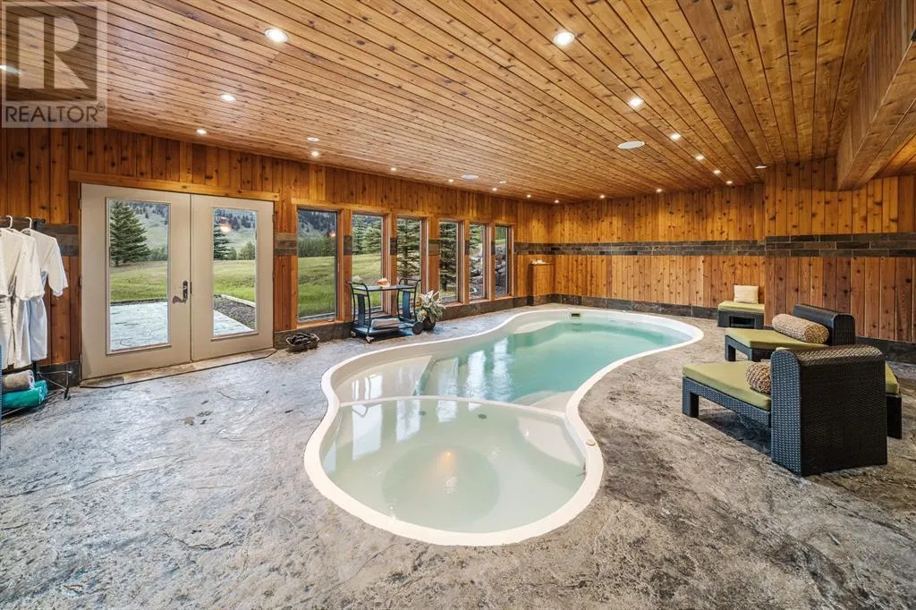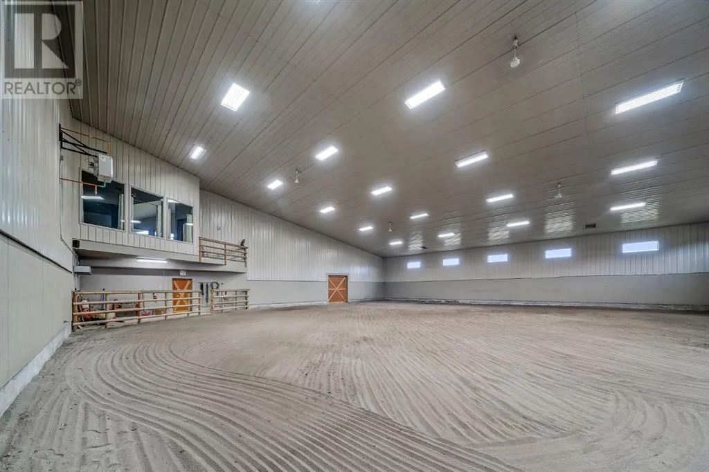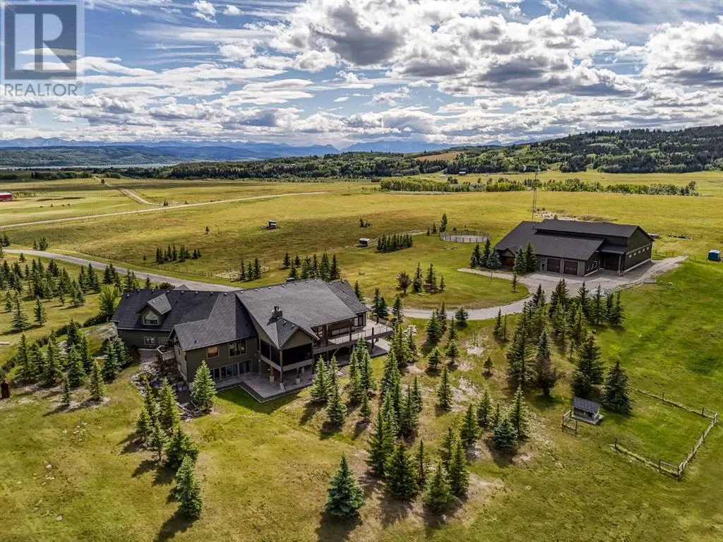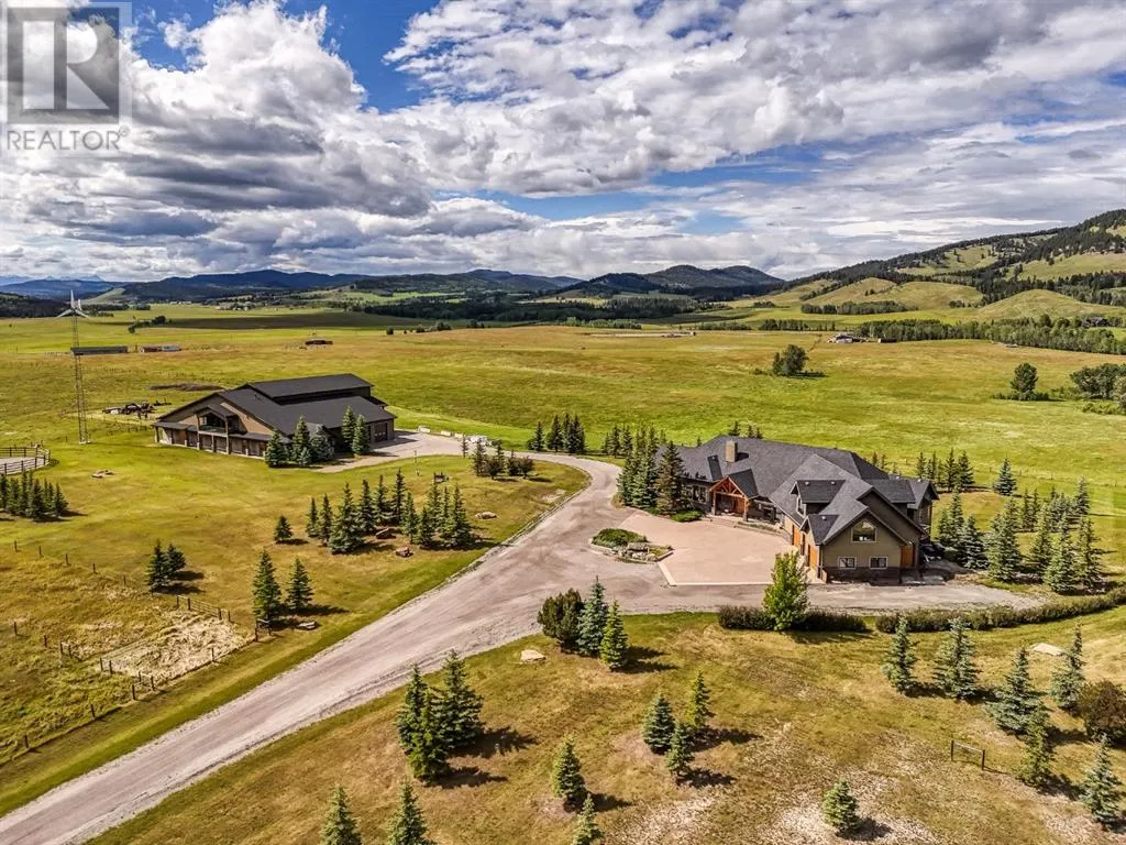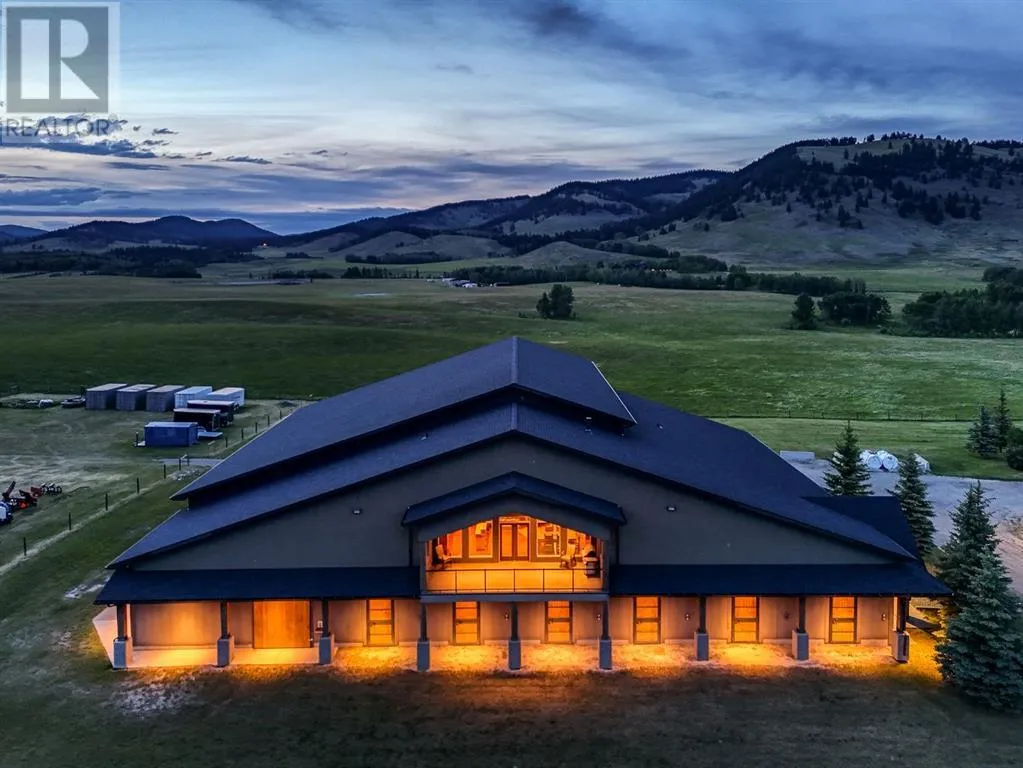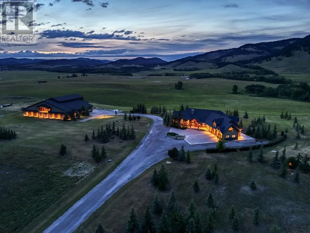 A rare opportunity to own one of Southern Albertaâs most iconic and luxurious rural properties. Set on 63 acres of pristine land against the breathtaking Wildcat Hills, with panoramic, unobstructed views of the Canadian Rockies, Wildcat Views offers an extraordinary lifestyle of serenity, seclusion, and sophisticated country livingâjust minutes from Cochrane and Ghost Lake.This meticulously designed estate showcases 8766 sqft of luxury living quarters that blends elevated western architecture with modern comfort and timeless craftsmanship. From the moment you arrive, the grand circular driveway, covered entry, and dramatic double-sided stone fireplace set the tone for the level of luxury that defines this residence.Inside, polished concrete floors, soaring ceilings, and expansive windows immerse the home in natural light and endless mountain views. The heart of the home is a chefâs kitchen complete with a massive island, premium appliances, and seamless connection to a covered outdoor living room with Phantom screens, a gas fireplace, and overhead heatersâcreating a true indoor-outdoor sanctuary for year-round enjoyment.The primary suite is a secluded retreat, featuring a custom bed, fireplace, spa-inspired ensuite with a steam shower and deep soaker tub, private laundry, and a spacious walk-in closet. At the opposite end of the home, a private guest suite with its own sitting area, bath, and entrance offers comfort and autonomy for extended stays.Thoughtful functionality continues with a tech station, walk-in pantry, oversized mudroom, and laundry zone off the quadruple attached garage. Above the garage, a 1,064 sq. ft. flex spaceâcurrently a gymâboasts cork flooring and unobstructed views of the Rocky Mountains.The fully developed walkout level is designed for elevated entertaining, featuring a full bar, games area, theatre with a starlit ceiling, two guest bedrooms, and a third laundry space. A dedicated dog wash and mudroom add practicality, while the cedar-clad indoor pool room is the ultimate in-home spaâcomplete with swim jets, a recessed hot tub, steam room, shower, and ambient LED lighting.Beyond the main home, the second structure elevates this property into a true luxury compound. It includes a 45â x 39â heated workshop, a custom six-stall barn with Dutch doors, and a 78â x 78â indoor riding arena with a mezzanine viewing deck. Above it, the bespoke Saloon offers the perfect venue for private gatherings with a fireplace, wet bar, wine fridge, full bath, and stunning arena views.Wildcat Views is more than a homeâitâs an irreplaceable estate, designed for those who value privacy, nature, and uncompromising quality. A property of this caliber rarely becomes available.This is your once-in-a-lifetime opportunity to own a generational estate at the doorstep of the Rockies. (id:27476)