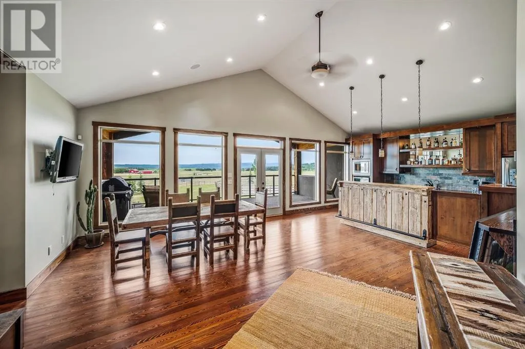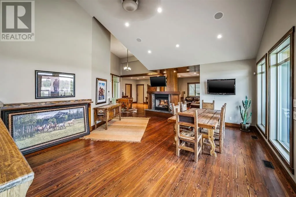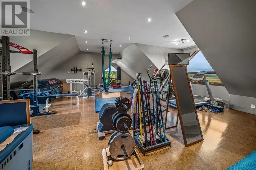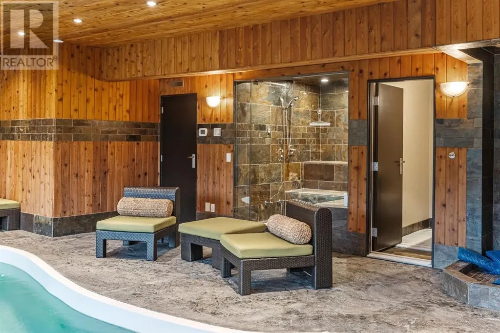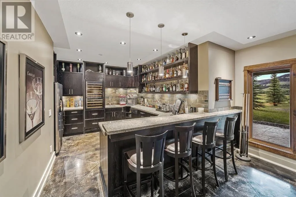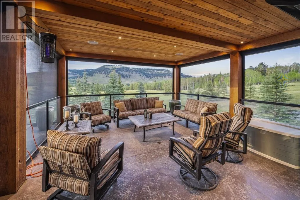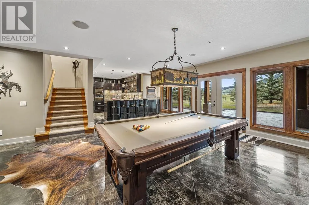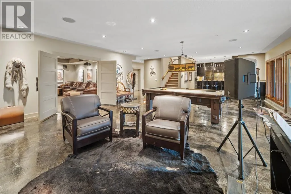 A rare opportunity to own one of Southern Albertaâs most iconic and luxurious rural properties. Set on 63 acres of pristine land against the breathtaking Wildcat Hills, with panoramic, unobstructed views of the Canadian Rockies, Wildcat Views offers an extraordinary lifestyle of serenity, seclusion, and sophisticated country livingâjust minutes from Cochrane and Ghost Lake.This meticulously designed estate showcases 8766 sqft of luxury living quarters that blends elevated western architecture with modern comfort and timeless craftsmanship. From the moment you arrive, the grand circular driveway, covered entry, and dramatic double-sided stone fireplace set the tone for the level of luxury that defines this residence.Inside, polished concrete floors, soaring ceilings, and expansive windows immerse the home in natural light and endless mountain views. The heart of the home is a chefâs kitchen complete with a massive island, premium appliances, and seamless connection to a covered outdoor living room with Phantom screens, a gas fireplace, and overhead heatersâcreating a true indoor-outdoor sanctuary for year-round enjoyment.The primary suite is a secluded retreat, featuring a custom bed, fireplace, spa-inspired ensuite with a steam shower and deep soaker tub, private laundry, and a spacious walk-in closet. At the opposite end of the home, a private guest suite with its own sitting area, bath, and entrance offers comfort and autonomy for extended stays.Thoughtful functionality continues with a tech station, walk-in pantry, oversized mudroom, and laundry zone off the quadruple attached garage. Above the garage, a 1,064 sq. ft. flex spaceâcurrently a gymâboasts cork flooring and unobstructed views of the Rocky Mountains.The fully developed walkout level is designed for elevated entertaining, featuring a full bar, games area, theatre with a starlit ceiling, two guest bedrooms, and a third laundry space. A dedicated dog wash and mudroom add practicality, while the cedar-clad indoor pool room is the ultimate in-home spaâcomplete with swim jets, a recessed hot tub, steam room, shower, and ambient LED lighting.Beyond the main home, the second structure elevates this property into a true luxury compound. It includes a 45â x 39â heated workshop, a custom six-stall barn with Dutch doors, and a 78â x 78â indoor riding arena with a mezzanine viewing deck. Above it, the bespoke Saloon offers the perfect venue for private gatherings with a fireplace, wet bar, wine fridge, full bath, and stunning arena views.Wildcat Views is more than a homeâitâs an irreplaceable estate, designed for those who value privacy, nature, and uncompromising quality. A property of this caliber rarely becomes available.This is your once-in-a-lifetime opportunity to own a generational estate at the doorstep of the Rockies. (id:27476)
