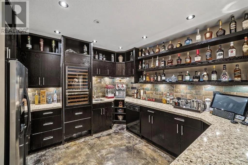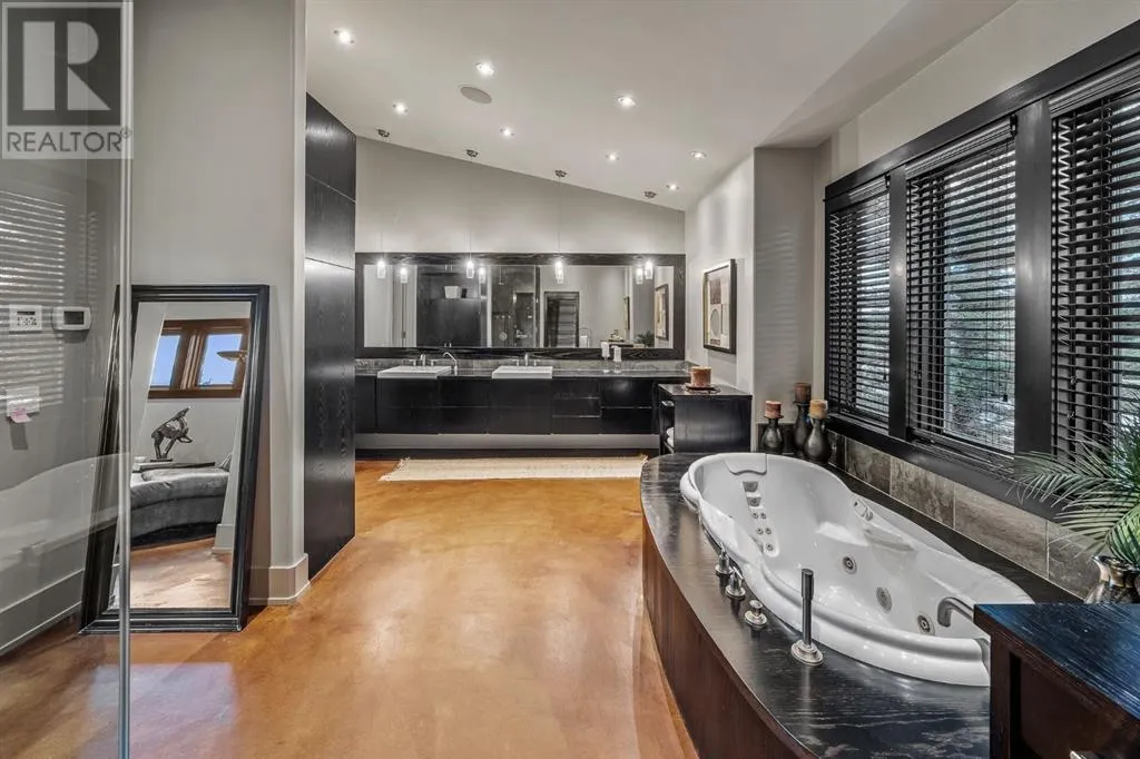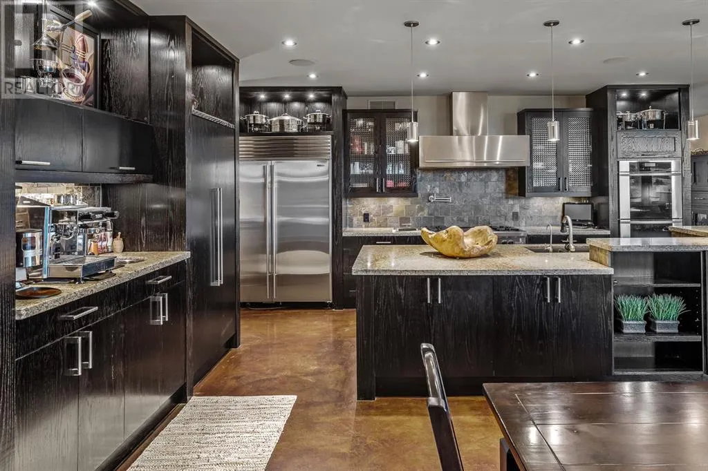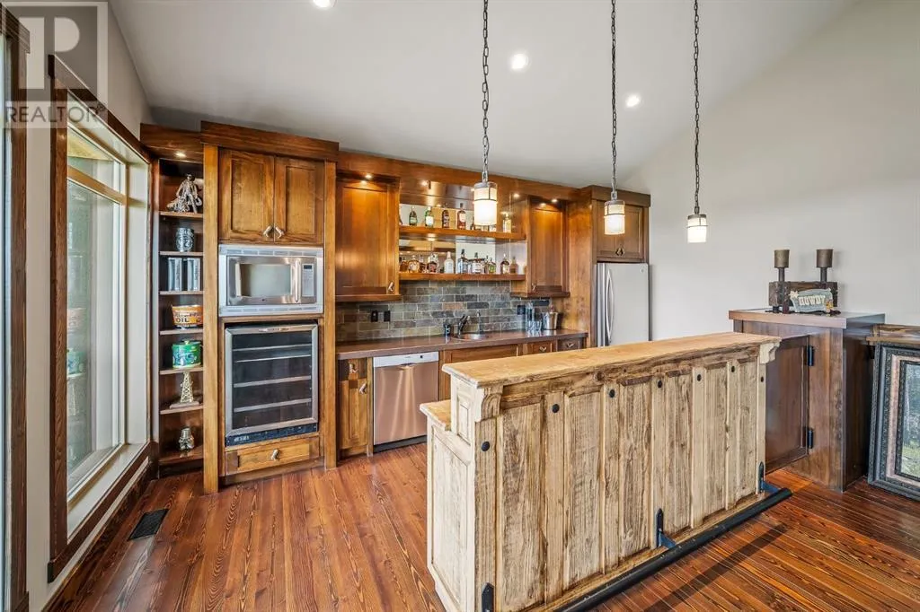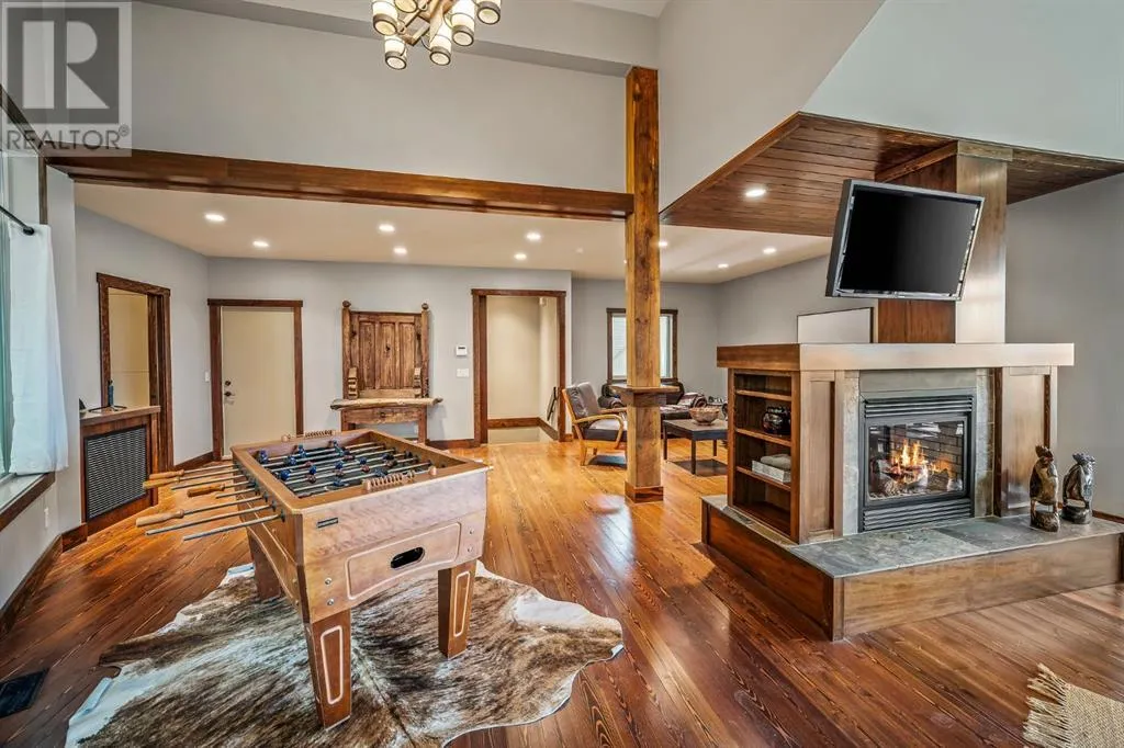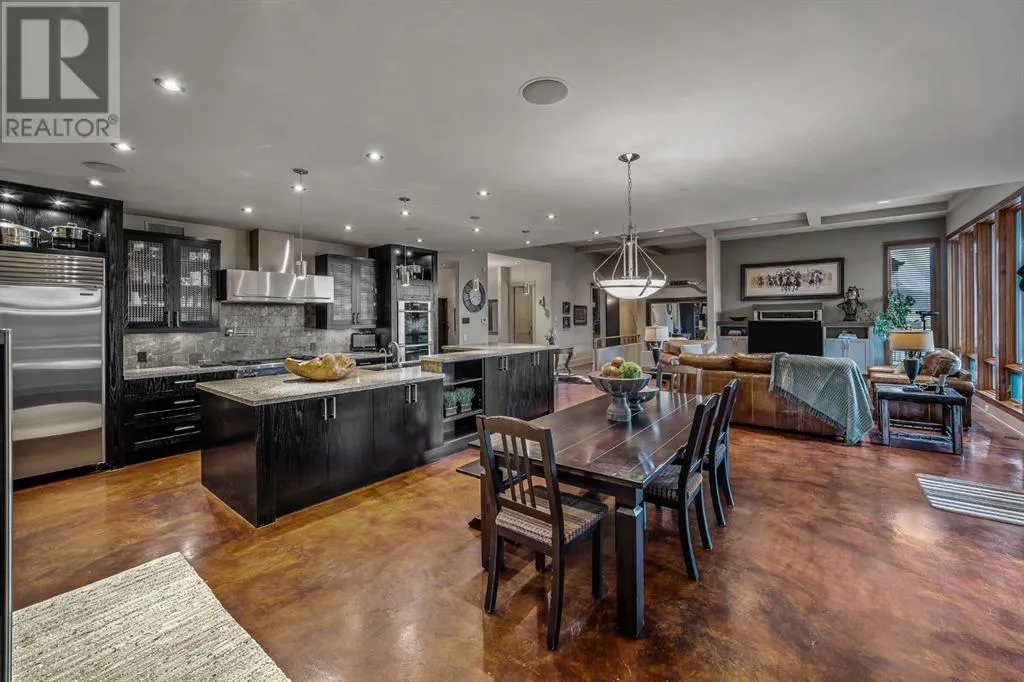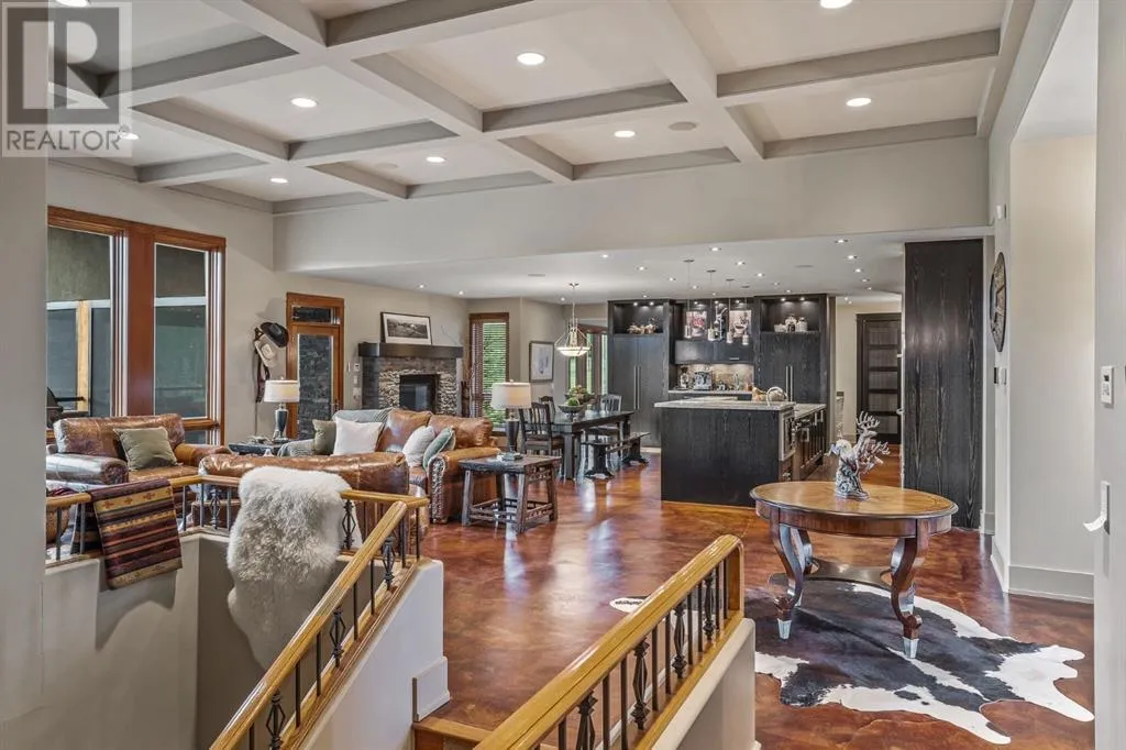A rare opportunity to own one of Southern Albertaâs most iconic and luxurious rural properties. Set on 63 acres of pristine land against the breathtaking Wildcat Hills, with panoramic, unobstructed views of the Canadian Rockies, Wildcat Views offers an extraordinary lifestyle of serenity, seclusion, and sophisticated country livingâjust minutes from Cochrane and Ghost Lake.This meticulously designed estate showcases 8766 sqft of luxury living quarters that blends elevated western architecture with modern comfort and timeless craftsmanship. From the moment you arrive, the grand circular driveway, covered entry, and dramatic double-sided stone fireplace set the tone for the level of luxury that defines this residence.Inside, polished concrete floors, soaring ceilings, and expansive windows immerse the home in natural light and endless mountain views. The heart of the home is a chefâs kitchen complete with a massive island, premium appliances, and seamless connection to a covered outdoor living room with Phantom screens, a gas fireplace, and overhead heatersâcreating a true indoor-outdoor sanctuary for year-round enjoyment.The primary suite is a secluded retreat, featuring a custom bed, fireplace, spa-inspired ensuite with a steam shower and deep soaker tub, private laundry, and a spacious walk-in closet. At the opposite end of the home, a private guest suite with its own sitting area, bath, and entrance offers comfort and autonomy for extended stays.Thoughtful functionality continues with a tech station, walk-in pantry, oversized mudroom, and laundry zone off the quadruple attached garage. Above the garage, a 1,064 sq. ft. flex spaceâcurrently a gymâboasts cork flooring and unobstructed views of the Rocky Mountains.The fully developed walkout level is designed for elevated entertaining, featuring a full bar, games area, theatre with a starlit ceiling, two guest bedrooms, and a third laundry space. A dedicated dog wash and mudroom add practicality, while the cedar-clad indoor pool room is the ultimate in-home spaâcomplete with swim jets, a recessed hot tub, steam room, shower, and ambient LED lighting.Beyond the main home, the second structure elevates this property into a true luxury compound. It includes a 45â x 39â heated workshop, a custom six-stall barn with Dutch doors, and a 78â x 78â indoor riding arena with a mezzanine viewing deck. Above it, the bespoke Saloon offers the perfect venue for private gatherings with a fireplace, wet bar, wine fridge, full bath, and stunning arena views.Wildcat Views is more than a homeâitâs an irreplaceable estate, designed for those who value privacy, nature, and uncompromising quality. A property of this caliber rarely becomes available.This is your once-in-a-lifetime opportunity to own a generational estate at the doorstep of the Rockies. (id:27476)