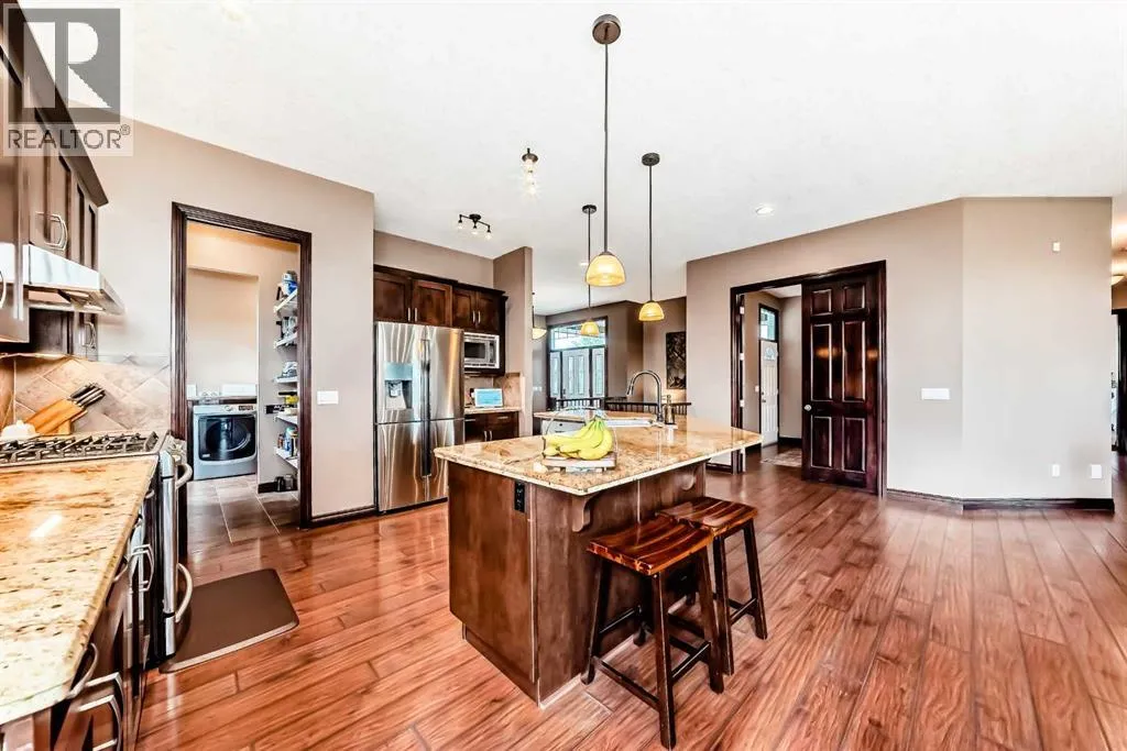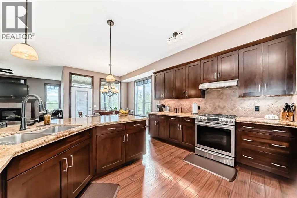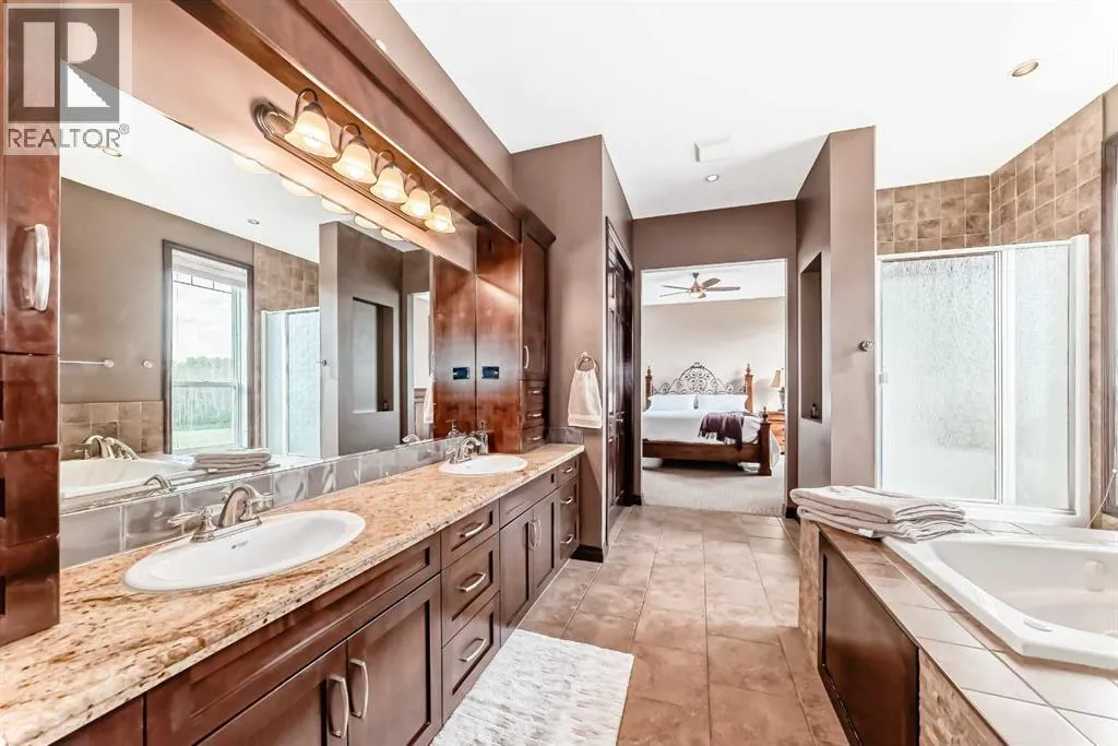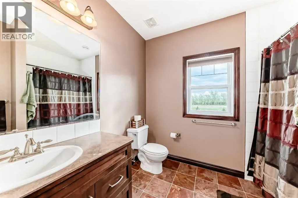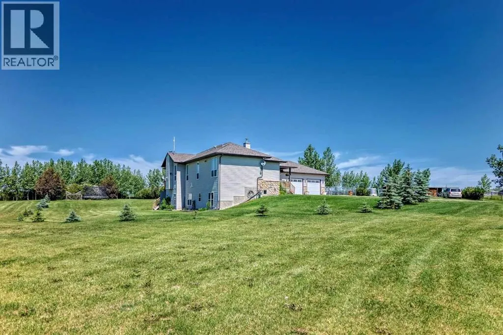 When you DREAM, do you dream of living a "City Close, Country Quiet" existence, on a 18 acre estate, boasting over 2100 sq ft (main level) and over 3650 total developed sq ft , just 1.5 miles from Calgary's border, with MASSIVE upside as Calgary grows over the next few decades? WELCOME home. The heart of the home, the kitchen, opens up to the great room creating a massive open space. The kitchen is a chefâs delight with massive granite countertops, gas oven, upgraded stainless steel appliances, timeless real wood shaker cabinets, with undercabinet lighting and a gargantuan central island. The adjacent great room hosts the cozy gas fireplace and ample sitting area. Both the kitchen and great room have amazing views of the south and west of the yard, and are bathed in sunshine. Down the hall, past the child bedroom and 4 pce bath, we find the master retreat, with it's decadent ensuite, and walk-in closet. Completing the main level is the rear laundry / mud room and is the main floor den / office, with it's own door for work-from-home types that need to have clients stop by. The walkout lower level boasts a MASSIVE room, the width of the house, 2 bedrooms, and another 4 pce bath, all heated with hydronic in-concrete-slab heat (n. gas boiler). Outside you have oodles of outbuildings, hundreds of trees, and a private oasis tucked into the trees to the north. Seldom to you feel so completely private this close to a major city. If you love horses, donkeys, llama, or chickens it's fully setup with large corral with shelter, tack and feed room, and 4 season livestock waterer. Adjacent is a fully insulated chicken coop with treed outdoor space for a happy flock. Fully fenced paddock for livestock, and mixed alfalfa / grass hayfield for cutting/grazing. Land is zoned R-RUR which gives lower taxation and provides for a wide range of potential options for development (accessory buildings, home based businesses, etc). A large part of the value is in the land, wit h 18.68 acres or over 813 000 sq ft; put another way, it would fit over 220 "average" new lots in Calgary. This much space is both a private oasis for you and your family, but also the long term redevelopment gain as HUNDREDS of families could eventually live here, post development. The mind boggles at the potential future returns. Although Calgaryâs city limits are only 1.4 miles away, it's possible Airdrie could annex first. It is a city close, but country quiet. Call your agent today to book a showing. (id:27476)