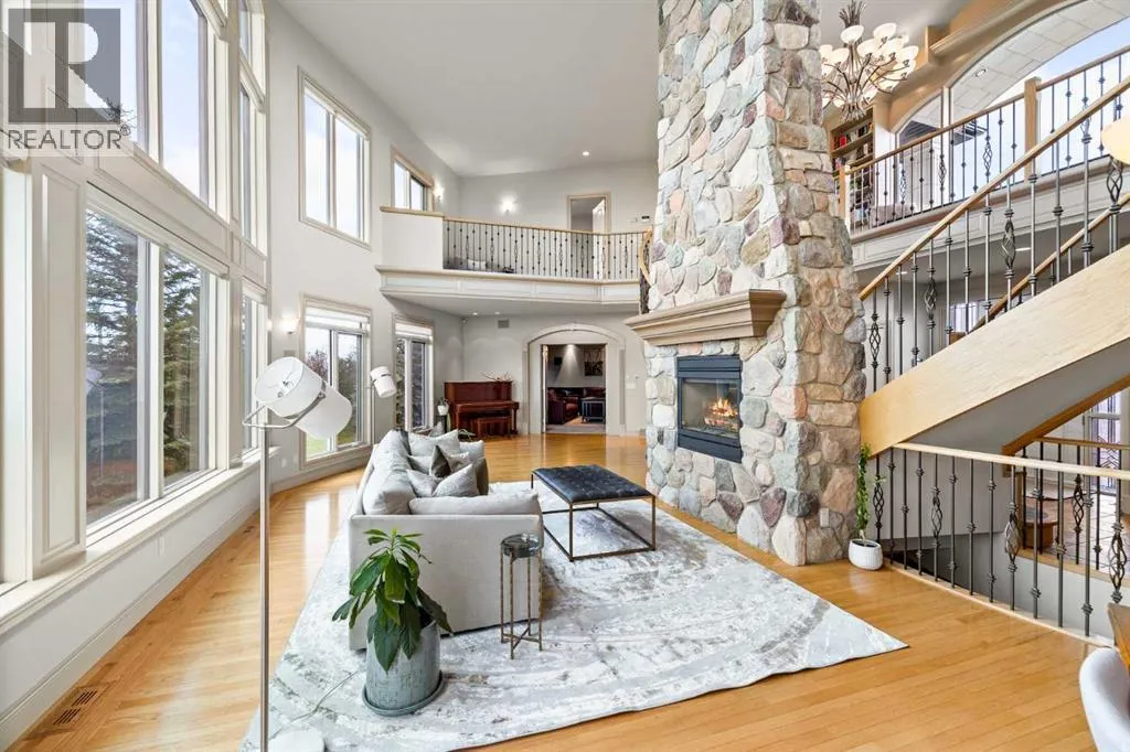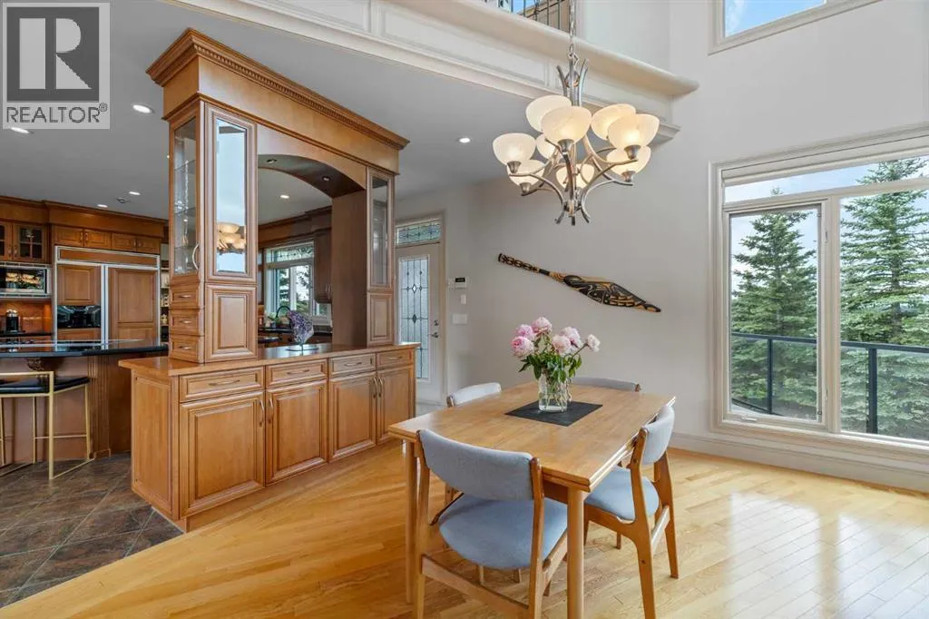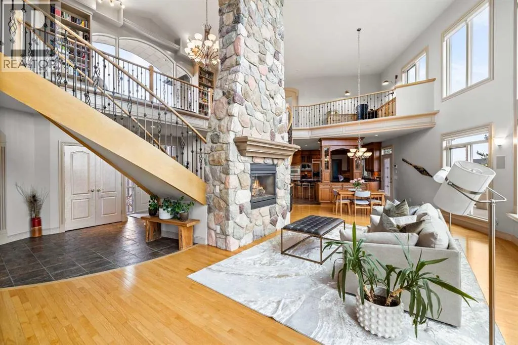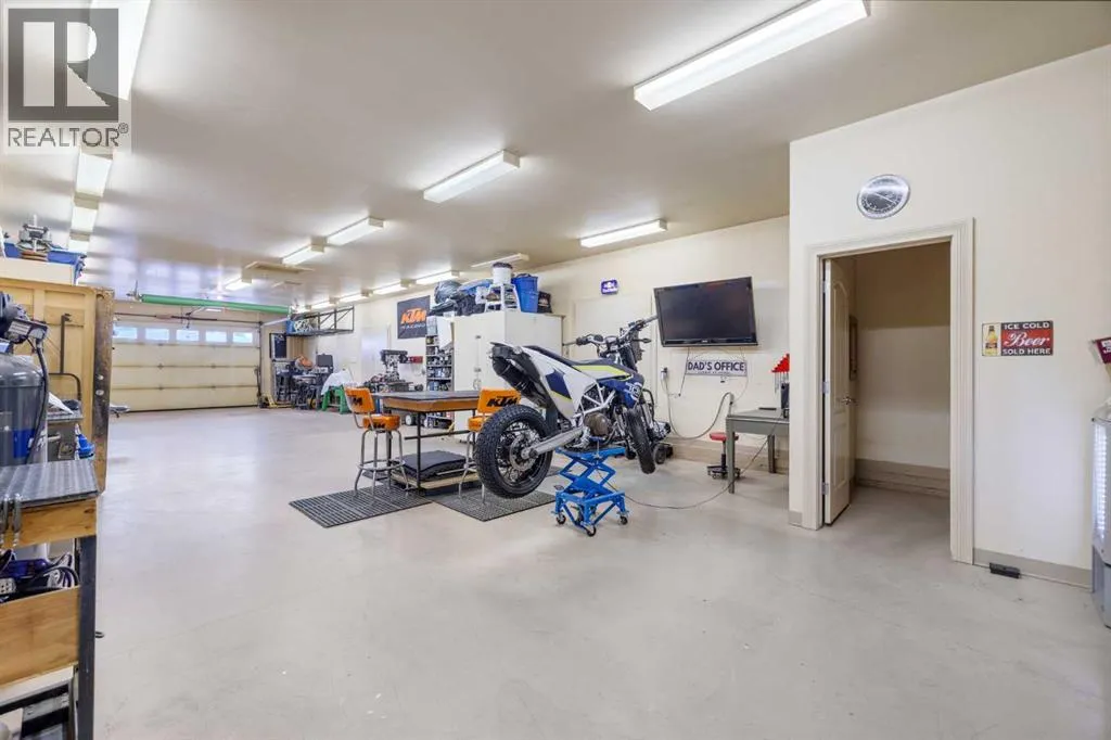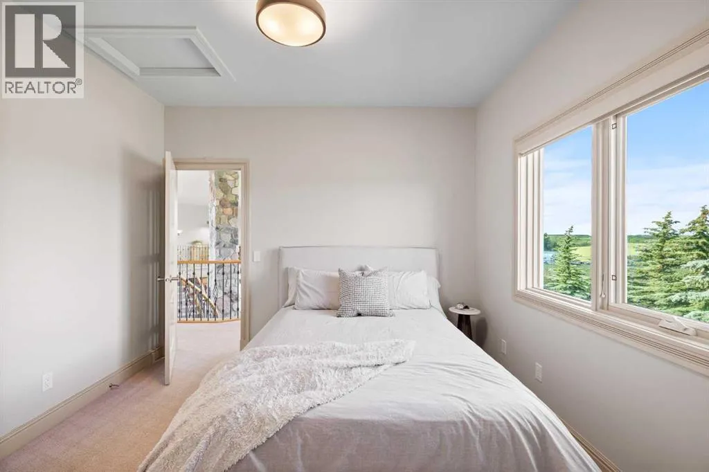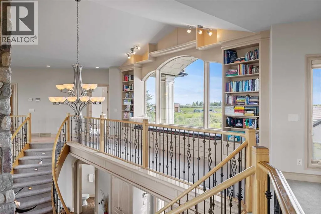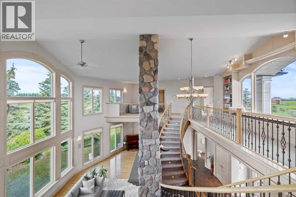 Welcome to this extraordinary 4 acre estate, where luxury, functionality, and breathtaking mountain views converge in perfect harmony! The garage is a standout feature of this abode, offering space for up to nine vehicles! With a fully epoxied finish and in-floor heating, ideal for the automotive enthusiast or easily transformed into a massive shop complete with its own bathroom. The home has been recently refreshed with brand new interior and exterior paint and complemented by a newly paved driveway, this meticulously designed home offers an unparalleled living experience. Stepping inside you are greeted with a spectacular double-sided, floor to ceiling stone fireplace with dual staircases emerging from its base leading to the upper level of the home. From here you are met with the kitchen, a chefâs dream, complete with a large granite island, ceiling-height cabinetry, stainless steel appliances, and a spacious walk-in pantry. It seamlessly flows into the eating nook and living room, creating a welcoming hub for daily life. The adjacent living room offers vaulted ceilings with expansive windows showcasing panoramic views of the mountains and rolling hills, with direct access to the spacious back deck. An exceptional theatre room with custom built-ins, two powder rooms and main floor laundry, with a brand new washer and dryer, complete this fantastic main floor. Upstairs you are met with a cozy window seat, a built-in reading nook and desk space, perfect for leisurely reading or a study area. The primary retreat is truly exceptional, featuring its own private deck to soak in the endless mountain vistas, a luxurious 5-piece ensuite with a jetted soaking tub beneath a skylight, dual vanities, a private steam shower, and a walk-in closet with custom built-ins. A private office or potential fitness area is also accessible from the primary bedroom. Completing this upper level are two additional bedrooms joined by a stylish Jack and Jill 5-piece bathroom. Descending to th e fully finished walkout basement, this space is designed for entertaining with a spacious family room showcasing a double-sided fireplace! The wet bar is complete with raised seating, a beverage fridge, full-sized fridge, and custom wine storage which is seamlessly connected to the custom billiards space with pool table included! Finishing off this level is an additional bedroom and full bathroom. The property is hardwired for a gate, features 400-amp service, complete with full irrigation, and a central vacuum system for ultimate convenience. Furthermore, in-floor heating continues throughout all three levels of the home, providing year-round comfort. This incredible property is set on a private lot with stunning panoramic mountain views, offering tranquility, privacy, and timeless elegance. Pride of ownership is seen throughout this meticulous masterpiece! (id:27476)