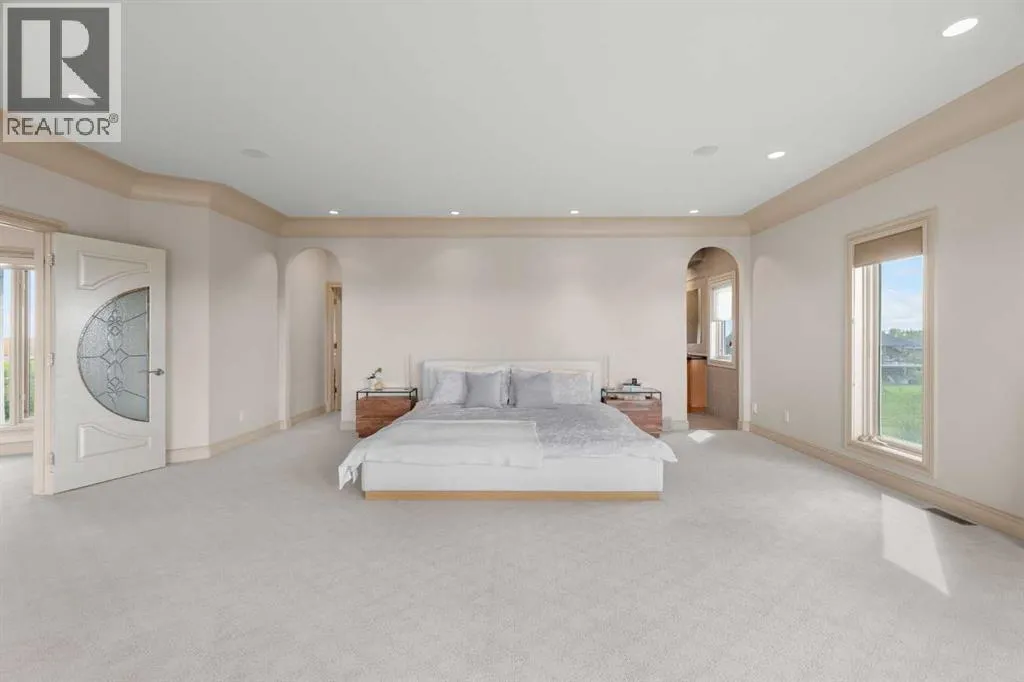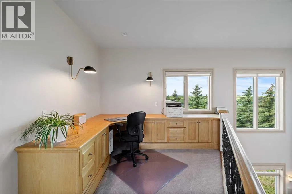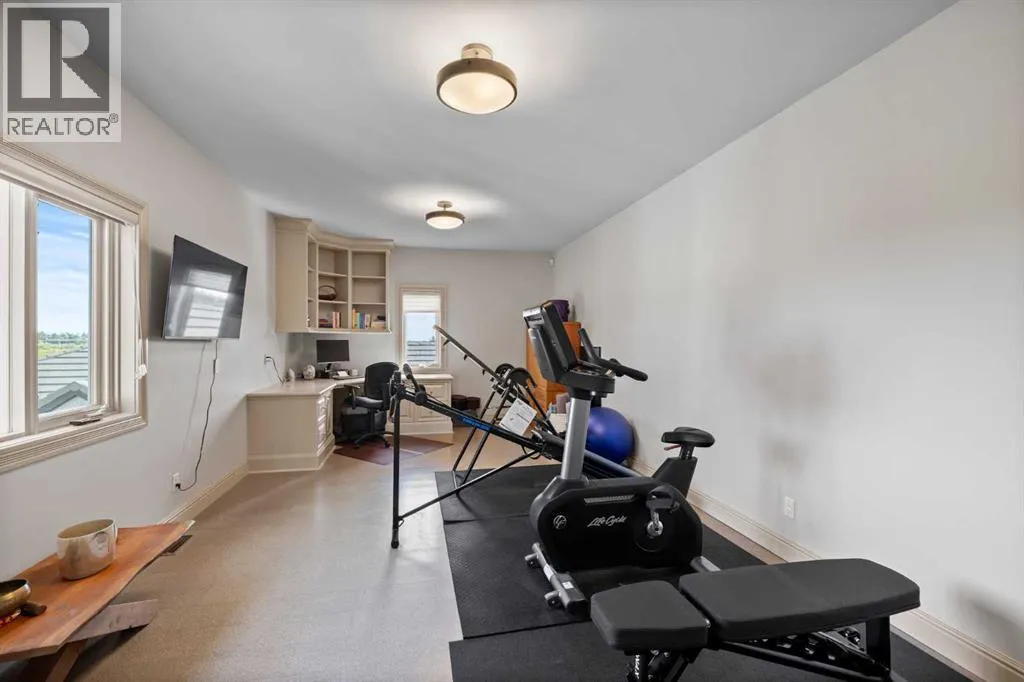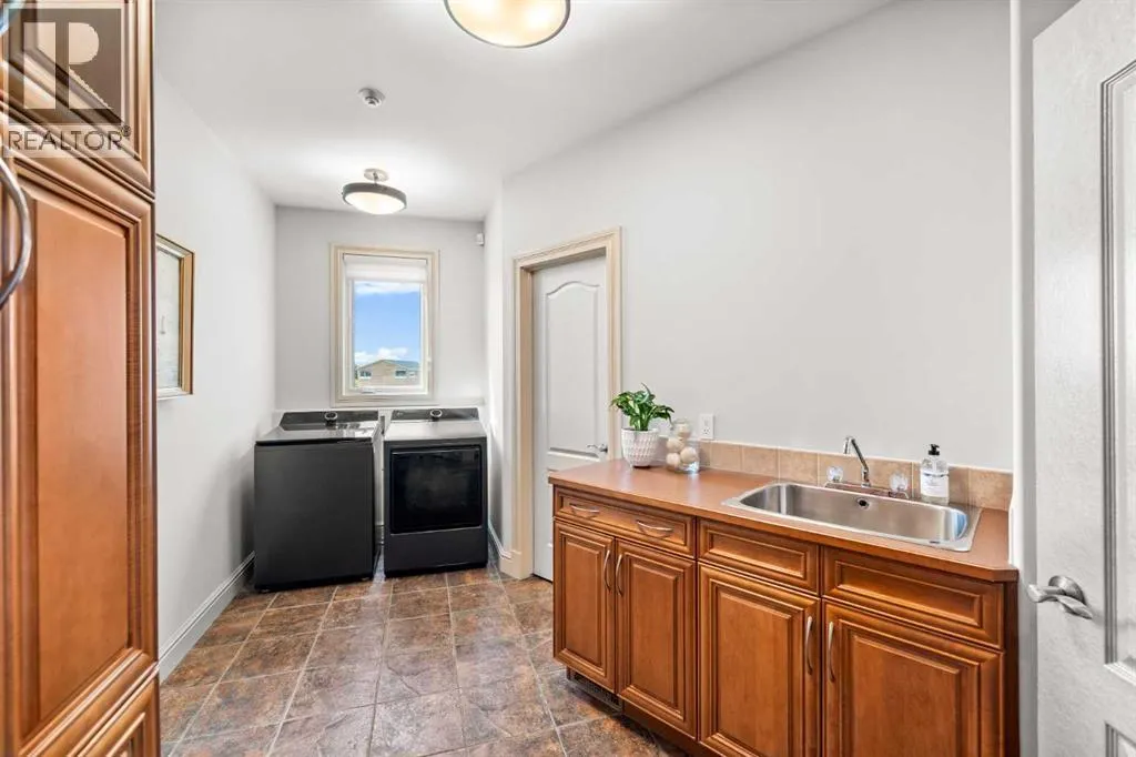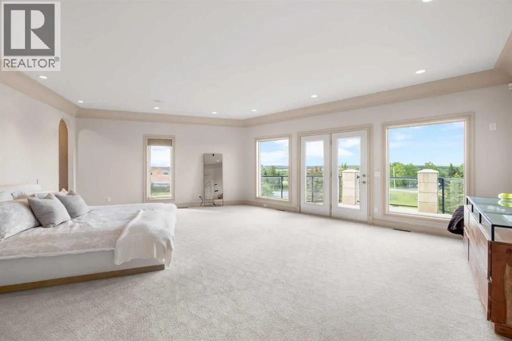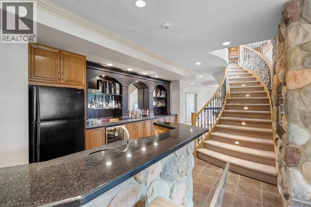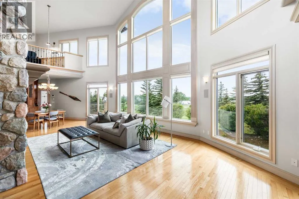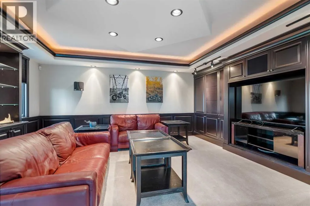 Welcome to this extraordinary 4 acre estate, where luxury, functionality, and breathtaking mountain views converge in perfect harmony! The garage is a standout feature of this abode, offering space for up to nine vehicles! With a fully epoxied finish and in-floor heating, ideal for the automotive enthusiast or easily transformed into a massive shop complete with its own bathroom. The home has been recently refreshed with brand new interior and exterior paint and complemented by a newly paved driveway, this meticulously designed home offers an unparalleled living experience. Stepping inside you are greeted with a spectacular double-sided, floor to ceiling stone fireplace with dual staircases emerging from its base leading to the upper level of the home. From here you are met with the kitchen, a chefâs dream, complete with a large granite island, ceiling-height cabinetry, stainless steel appliances, and a spacious walk-in pantry. It seamlessly flows into the eating nook and living room, creating a welcoming hub for daily life. The adjacent living room offers vaulted ceilings with expansive windows showcasing panoramic views of the mountains and rolling hills, with direct access to the spacious back deck. An exceptional theatre room with custom built-ins, two powder rooms and main floor laundry, with a brand new washer and dryer, complete this fantastic main floor. Upstairs you are met with a cozy window seat, a built-in reading nook and desk space, perfect for leisurely reading or a study area. The primary retreat is truly exceptional, featuring its own private deck to soak in the endless mountain vistas, a luxurious 5-piece ensuite with a jetted soaking tub beneath a skylight, dual vanities, a private steam shower, and a walk-in closet with custom built-ins. A private office or potential fitness area is also accessible from the primary bedroom. Completing this upper level are two additional bedrooms joined by a stylish Jack and Jill 5-piece bathroom. Descending to th e fully finished walkout basement, this space is designed for entertaining with a spacious family room showcasing a double-sided fireplace! The wet bar is complete with raised seating, a beverage fridge, full-sized fridge, and custom wine storage which is seamlessly connected to the custom billiards space with pool table included! Finishing off this level is an additional bedroom and full bathroom. The property is hardwired for a gate, features 400-amp service, complete with full irrigation, and a central vacuum system for ultimate convenience. Furthermore, in-floor heating continues throughout all three levels of the home, providing year-round comfort. This incredible property is set on a private lot with stunning panoramic mountain views, offering tranquility, privacy, and timeless elegance. Pride of ownership is seen throughout this meticulous masterpiece! (id:27476)
