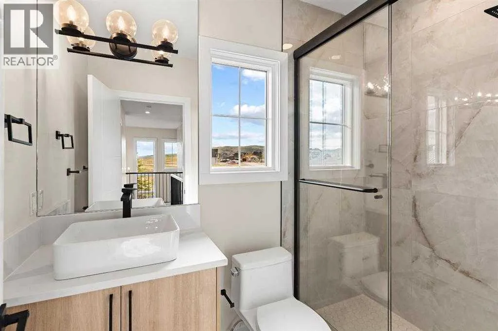 Welcome to Cottage Club at Ghost Lake, a private gated community where you can relax, unwind, and enjoy a lifestyle that feels like a vacation every day. Whether you're looking for a peaceful weekend escape or a year-round retreat, this charming lakefront neighbourhood has everything you need and more.Picture this: your own luxurious cottage, steps from the water, with private beach access, cozy hammocks along the shore, a BBQ area, sand volleyball courts, an observatory, and even a private boat launch with day-use docking for residents. Want more? The communityâs recreation centre features an indoor pool, hot tub, fitness facility, tennis courts, library, and a wood-fired pizza oven thatâs perfect for summer nights with friends and family.Plus, you're just 20 minutes from Kananaskis, with over 4,000 square kilometers of stunning wilderness to exploreâhiking, fishing, skiing at Nakiska, snowshoeing, or simply enjoying the fresh mountain air.This newly built 3-bedroom, 2.5-bathroom cottage by Exquisite Homes offers over 1,400 square feet of beautifully crafted living space. On the main floor, youâll find a bright open-concept living room with a Montigo gas fireplace, a stylish chefâs kitchen with quartz counters, high-end stainless steel appliances, a gas range, and floor-to-ceiling cabinetry. Thereâs also a powder room and stacked laundry for added convenience.Step outside to enjoy your front and back patios, perfect for morning coffee or evening drinks under the stars.Upstairs, tall glass railings and an open-to-below design give the home a modern, airy feel. Youâll find two spacious bedrooms and a full four-piece bathroom up hereâideal for guests or family.Downstairs, the fully finished basement is made for entertaining, with a large rec room perfect for movie nights, a full wet bar with a long quartz island, a third spacious bedroom, another full bathroom, and plenty of storage.Whether you're retiring, investing, or simply craving a lifestyle upgrad e, this home checks all the boxes. It also happens to sit on one of the largest developed lots in the entire community.Just minutes from Cochrane, Canmore, Calgary, and the Rockies, this lake retreat offers the peace and privacy you want with the convenience you didnât expect.Donât just buy a cottage. Create a lifestyle. (id:27476)