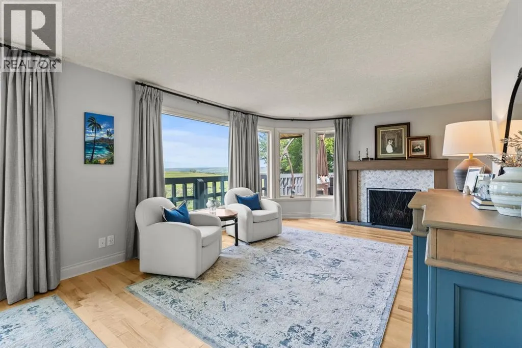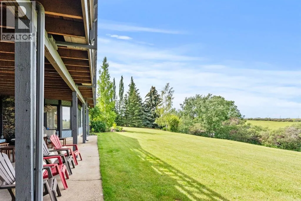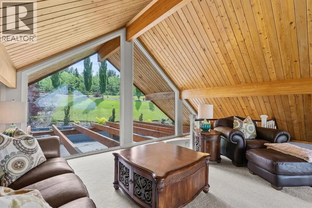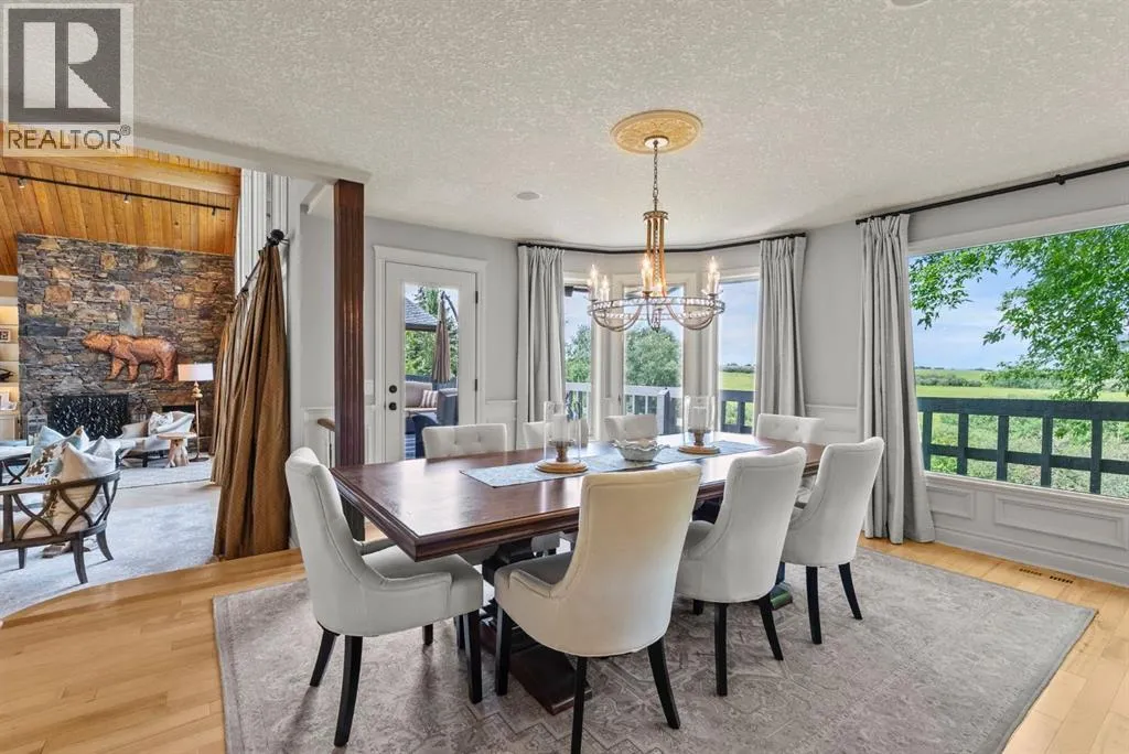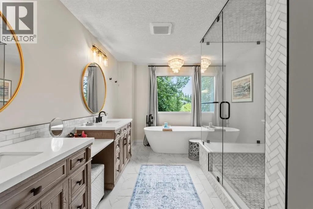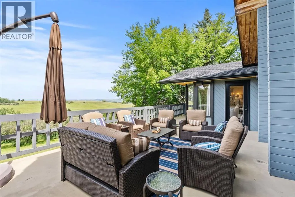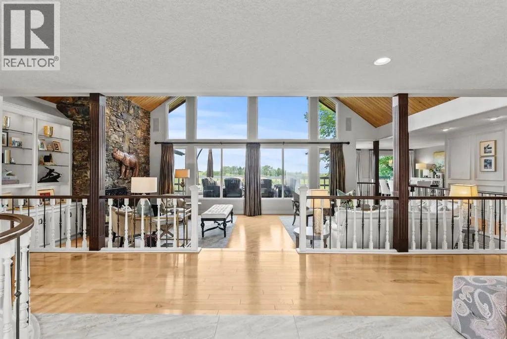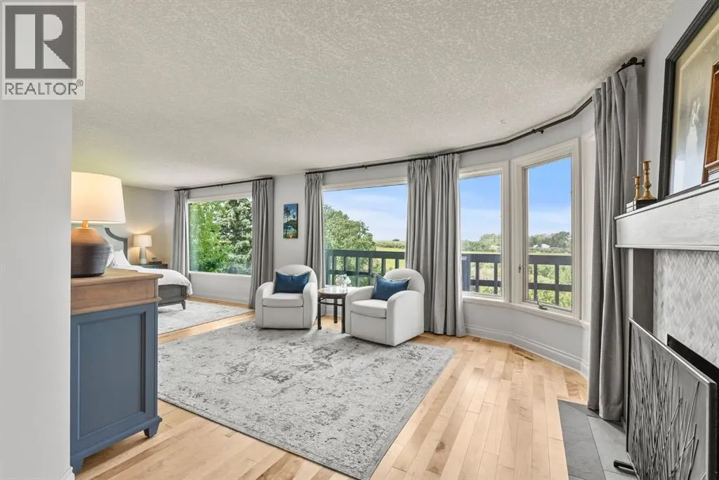 Truly a rare find, this spectacular hillside bungalow in the prestigious community of Artists View blends rustic character with modern luxury.  Homes in this community do not often come up for sale and this recently fully renovated bungalow features a walkout basement, panoramic mountain views, stunning sunsets, two 3-car garages and exceptional privacyâ¦.all while being 5 minutes from the western edge of the city. This established cul de sac is 5 minutes to Hwy 1 or Stoney Trail, 20 minutes to the University, Foothills Hospital, downtown, 45 minutes to Canmore and 1 hour to Banff. The main level offers soaring 22â cedar ceilings and picture windows that flood the space with natural light, a dramatic stone wood-burning fireplace, rich custom woodwork throughout and a bedroom wing with 3 large bedrooms. The chefâs kitchen is equipped with high-end appliances, a custom copper range hood, granite countertops, large island with seating, custom cabinetry, and a cozy breakfast nook with built-in bench and fireplace. Host with ease in the formal dining room, which opens directly to an outdoor patio dinning area overlooking your beautifully landscaped outdoor living space designed to capture the mountain vistas. The bright and spacious master suite features a fireplace, spa-inspired ensuite with in-floor heating, and a massive walk-in closet. Two additional large bedrooms, a sunlit upper loft, private home office with coffered ceilings, and a large laundry/mudroom with custom cabinetry complete the main floor. The fully finished walkout basement includes a Nanny/in-law suite that has the fourth bedroom with a private living area and ensuite.  A large rec/rumpus room, bar/kitchenette, two additional family rooms, another wood burning fireplace, steam shower, and extensive custom storage finishes off the walkout. Two dedicated mechanical rooms house 4 hot water heaters, 3 furnaces, 2 A/C units, and ample storage. Additional upgrades include sound-reducing insulation, Armour sh ake shingles, a paved driveway, fully fenced chain-link yard, mature landscaping, and multiple private outdoor retreats. Other highlights: over 7800+sq ft of finished living space, 4 fireplaces, hardwood and tile flooring throughout, integrated security system, and a beautifully landscaped yard with underground sprinkler/irrigation system. Enjoy peaceful country living with urban convenienceâjust minutes to city amenities, top public and private schools, horse boarding and the mountains.  A truly special propertyâunique in scale, design, and setting. (id:27476)