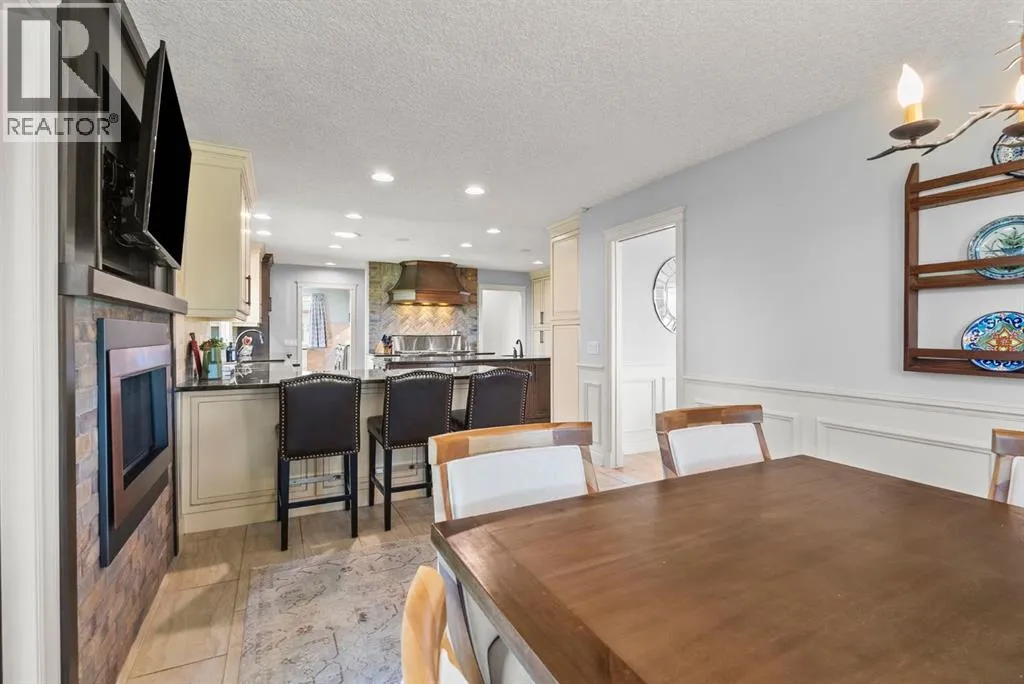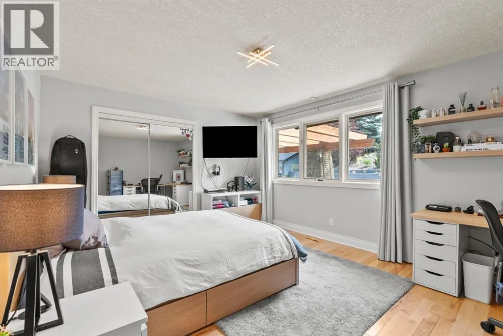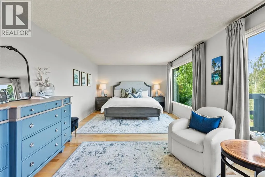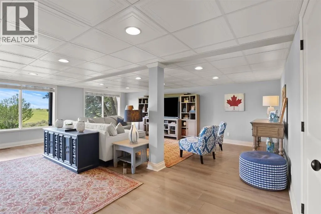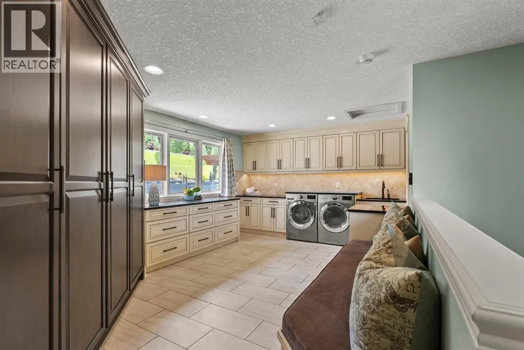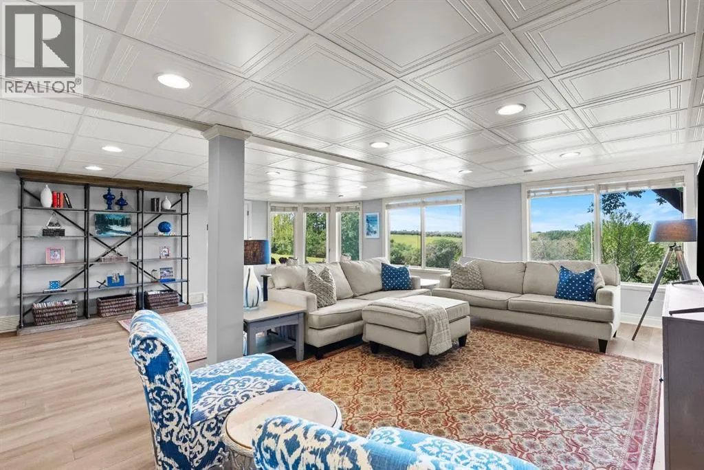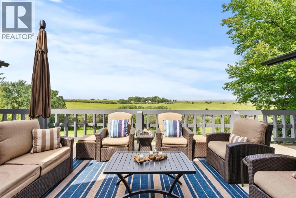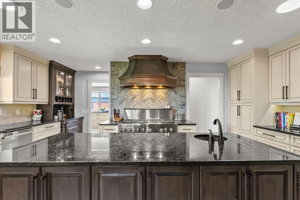 Truly a rare find, this spectacular hillside bungalow in the prestigious community of Artists View blends rustic character with modern luxury.  Homes in this community do not often come up for sale and this recently fully renovated bungalow features a walkout basement, panoramic mountain views, stunning sunsets, two 3-car garages and exceptional privacyâ¦.all while being 5 minutes from the western edge of the city. This established cul de sac is 5 minutes to Hwy 1 or Stoney Trail, 20 minutes to the University, Foothills Hospital, downtown, 45 minutes to Canmore and 1 hour to Banff. The main level offers soaring 22â cedar ceilings and picture windows that flood the space with natural light, a dramatic stone wood-burning fireplace, rich custom woodwork throughout and a bedroom wing with 3 large bedrooms. The chefâs kitchen is equipped with high-end appliances, a custom copper range hood, granite countertops, large island with seating, custom cabinetry, and a cozy breakfast nook with built-in bench and fireplace. Host with ease in the formal dining room, which opens directly to an outdoor patio dinning area overlooking your beautifully landscaped outdoor living space designed to capture the mountain vistas. The bright and spacious master suite features a fireplace, spa-inspired ensuite with in-floor heating, and a massive walk-in closet. Two additional large bedrooms, a sunlit upper loft, private home office with coffered ceilings, and a large laundry/mudroom with custom cabinetry complete the main floor. The fully finished walkout basement includes a Nanny/in-law suite that has the fourth bedroom with a private living area and ensuite.  A large rec/rumpus room, bar/kitchenette, two additional family rooms, another wood burning fireplace, steam shower, and extensive custom storage finishes off the walkout. Two dedicated mechanical rooms house 4 hot water heaters, 3 furnaces, 2 A/C units, and ample storage. Additional upgrades include sound-reducing insulation, Armour sh ake shingles, a paved driveway, fully fenced chain-link yard, mature landscaping, and multiple private outdoor retreats. Other highlights: over 7800+sq ft of finished living space, 4 fireplaces, hardwood and tile flooring throughout, integrated security system, and a beautifully landscaped yard with underground sprinkler/irrigation system. Enjoy peaceful country living with urban convenienceâjust minutes to city amenities, top public and private schools, horse boarding and the mountains.  A truly special propertyâunique in scale, design, and setting. (id:27476)