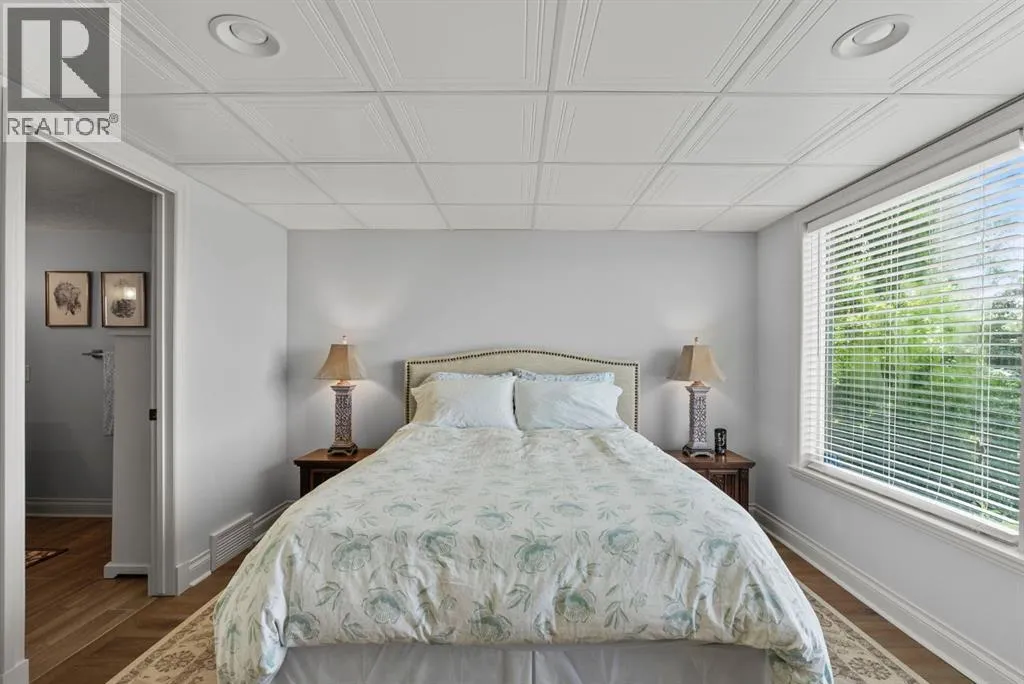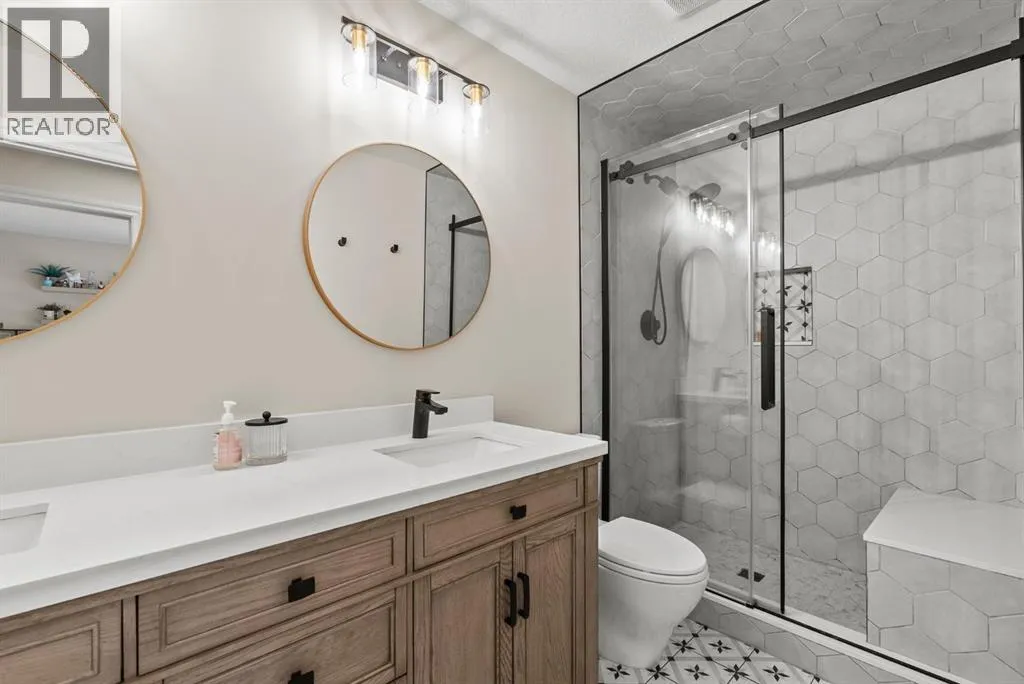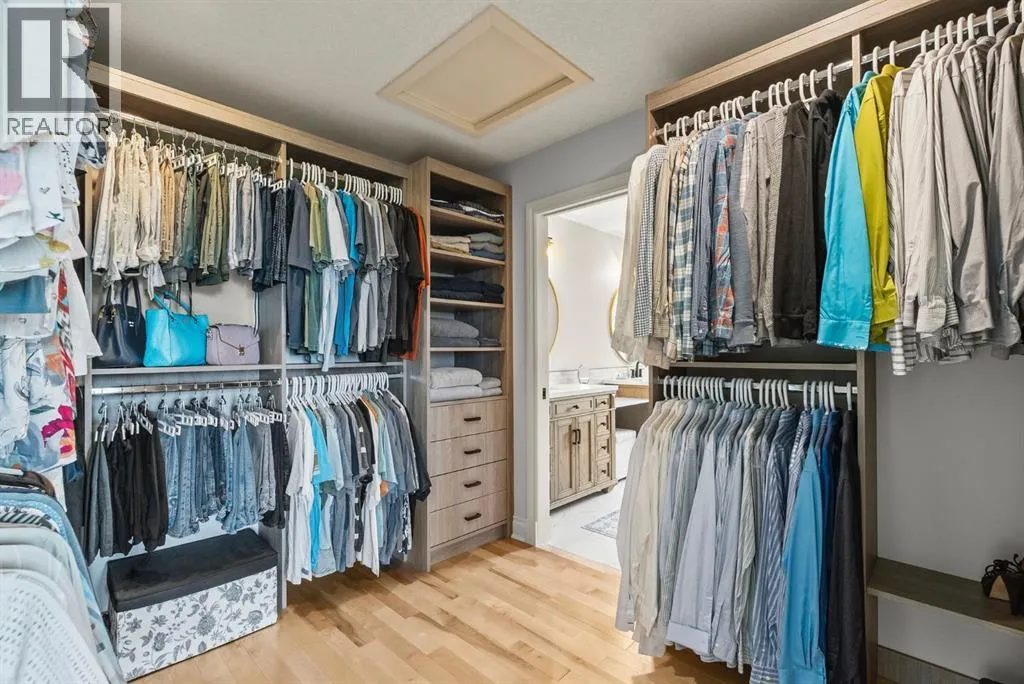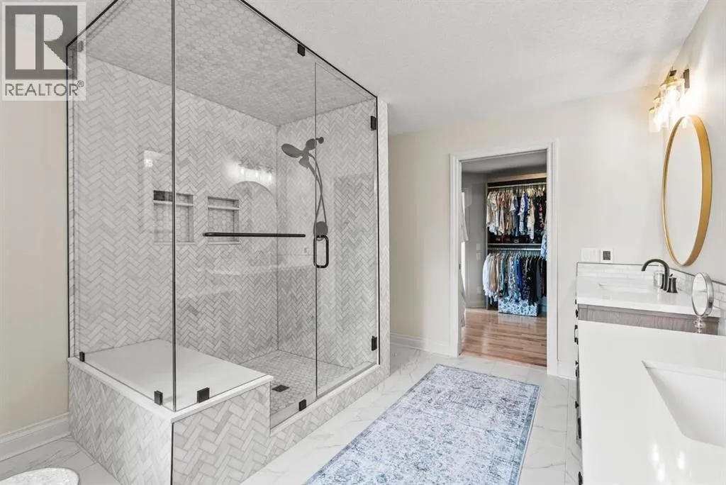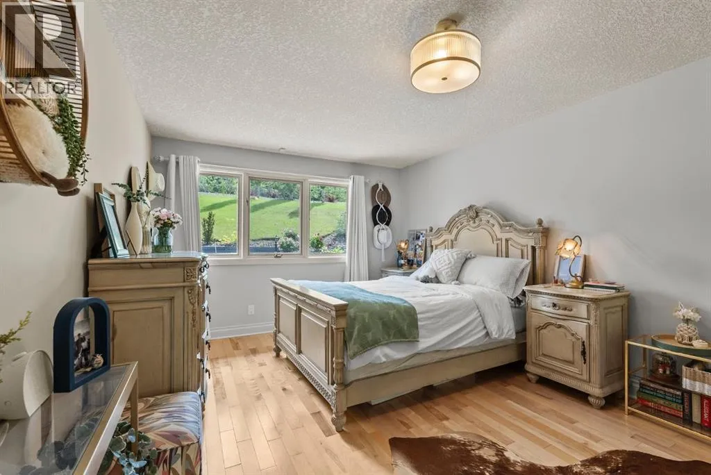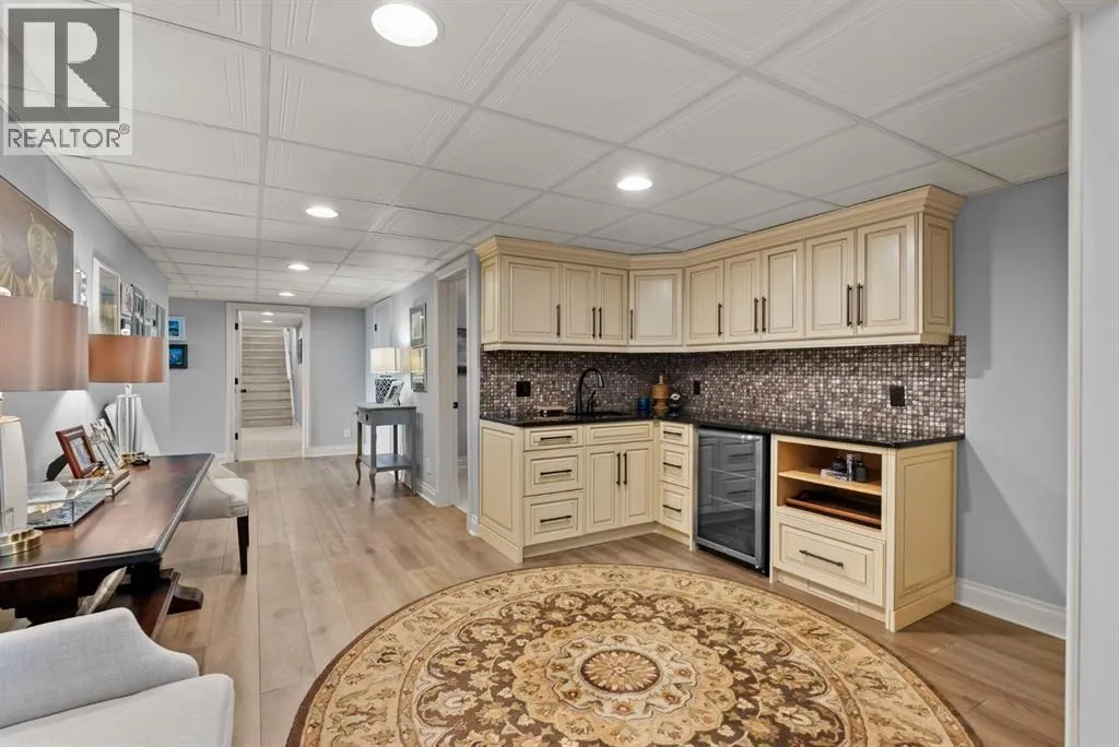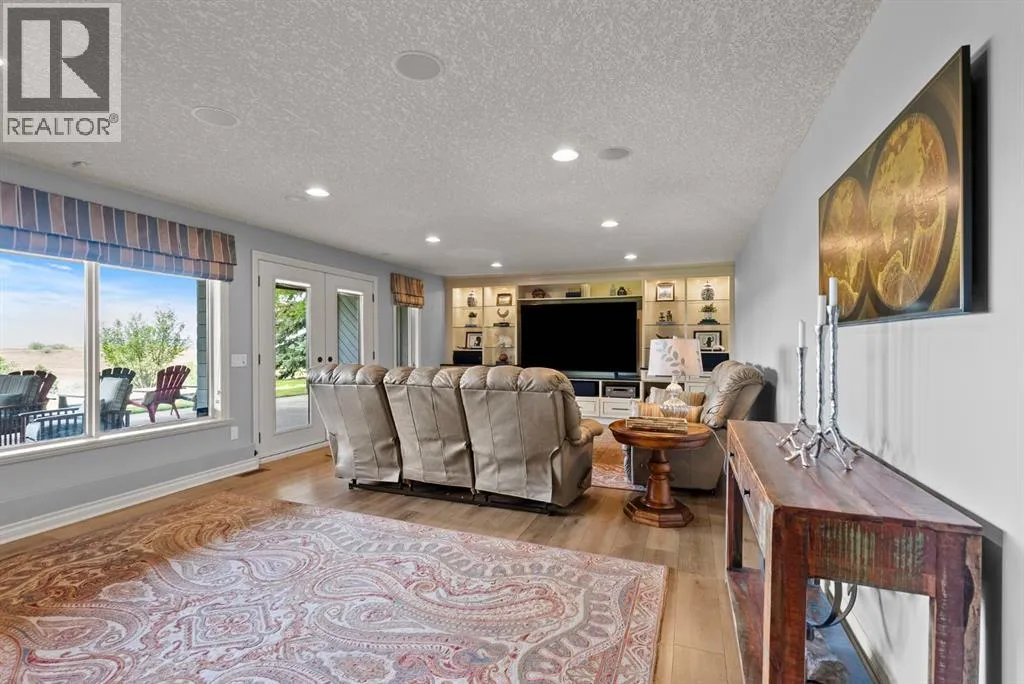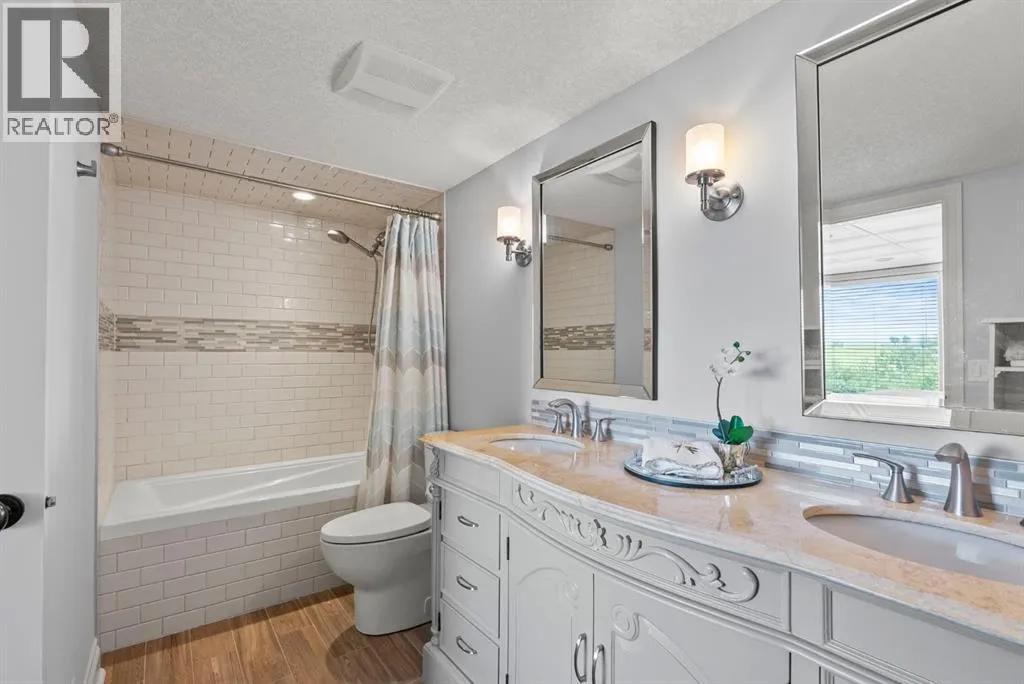 Truly a rare find, this spectacular hillside bungalow in the prestigious community of Artists View blends rustic character with modern luxury.  Homes in this community do not often come up for sale and this recently fully renovated bungalow features a walkout basement, panoramic mountain views, stunning sunsets, two 3-car garages and exceptional privacyâ¦.all while being 5 minutes from the western edge of the city. This established cul de sac is 5 minutes to Hwy 1 or Stoney Trail, 20 minutes to the University, Foothills Hospital, downtown, 45 minutes to Canmore and 1 hour to Banff. The main level offers soaring 22â cedar ceilings and picture windows that flood the space with natural light, a dramatic stone wood-burning fireplace, rich custom woodwork throughout and a bedroom wing with 3 large bedrooms. The chefâs kitchen is equipped with high-end appliances, a custom copper range hood, granite countertops, large island with seating, custom cabinetry, and a cozy breakfast nook with built-in bench and fireplace. Host with ease in the formal dining room, which opens directly to an outdoor patio dinning area overlooking your beautifully landscaped outdoor living space designed to capture the mountain vistas. The bright and spacious master suite features a fireplace, spa-inspired ensuite with in-floor heating, and a massive walk-in closet. Two additional large bedrooms, a sunlit upper loft, private home office with coffered ceilings, and a large laundry/mudroom with custom cabinetry complete the main floor. The fully finished walkout basement includes a Nanny/in-law suite that has the fourth bedroom with a private living area and ensuite.  A large rec/rumpus room, bar/kitchenette, two additional family rooms, another wood burning fireplace, steam shower, and extensive custom storage finishes off the walkout. Two dedicated mechanical rooms house 4 hot water heaters, 3 furnaces, 2 A/C units, and ample storage. Additional upgrades include sound-reducing insulation, Armour sh ake shingles, a paved driveway, fully fenced chain-link yard, mature landscaping, and multiple private outdoor retreats. Other highlights: over 7800+sq ft of finished living space, 4 fireplaces, hardwood and tile flooring throughout, integrated security system, and a beautifully landscaped yard with underground sprinkler/irrigation system. Enjoy peaceful country living with urban convenienceâjust minutes to city amenities, top public and private schools, horse boarding and the mountains.  A truly special propertyâunique in scale, design, and setting. (id:27476)