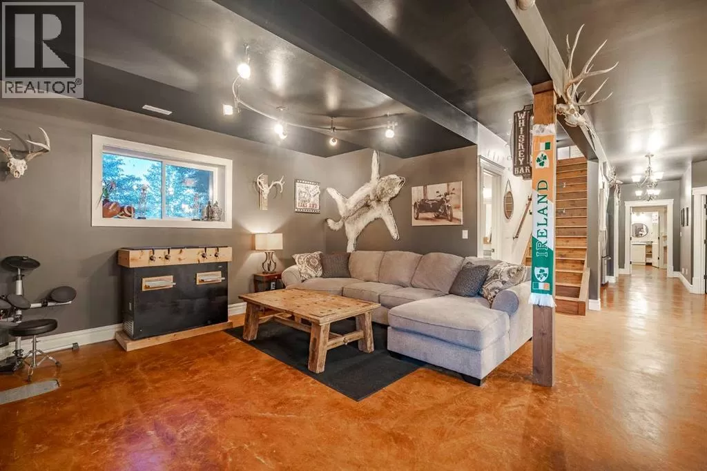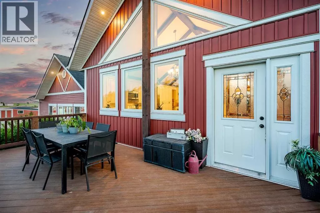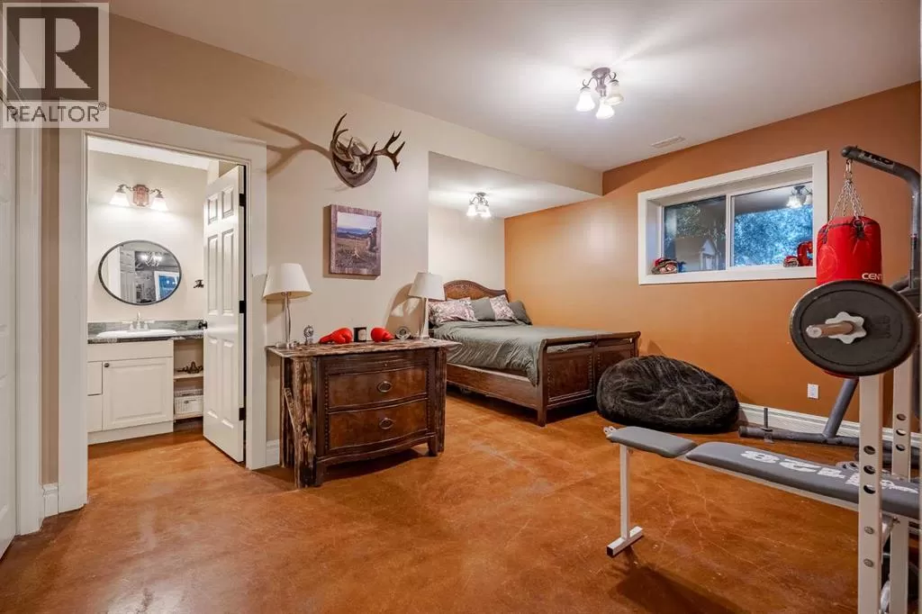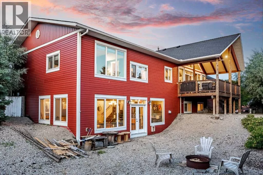 Welcome to this extraordinary walkout bungalow offering over 4,000 sq ft of thoughtfully designed living space with 6 bedrooms, 5 bathrooms, a heated oversized quad garage, a massive 40â x 60â insulated shop, and nearly 20 acres of endless possibility just minutes from Calgary. From the moment you arrive, the striking A-frame architecture stretches from the front elevation all the way to the covered back porch, perfectly framing panoramic mountain views. Step into the grand main level, where soaring vaulted ceilings with exposed beams and expansive west-facing windows fill the space with natural light and unforgettable views. The gourmet kitchen features upgraded cabinetry, a large center island, granite countertops, and premium stainless appliances designed for effortless entertaining. The spacious dining area easily accommodates large gatherings, while the open-concept living room is anchored by a cozy gas fireplace.Just down the hall, the generous primary retreat offers an open 4-piece ensuite and a spacious walk-in closet. Two additional bedrooms provide comfortable spaces for family or guests and share access to a well-appointed main bathroom. A versatile office or den is tucked away near the front entry. Downstairs, the walkout basement extends the living space with a massive recreation room, wet bar, three additional bedrooms, and two full bathrooms, including one ensuite â perfect for multi-generational living or hosting guests.Outside, the property continues to impress with an attached heated oversized quad garage and a 40â x 60â powered shop ready for your next project, hobby, or home-based business. The multiple livestock areas are thoughtfully arranged and include 3 automatic waterers to support a wide range of agricultural uses. Whether you're envisioning a private rural retreat, a hobby farm, or a future development opportunity, this nearly 20-acre parcel offers it all â and with potential for subdivision pending municipal approval, the possibiliti es are truly endless.All this just 10 minutes to Stoney Trail and 15 minutes to shopping, dining, and amenities in Seton and Mahogany. This is more than a home â itâs your gateway to rural luxury, convenience, and future opportunity. Donât miss your chance to experience it. (id:27476)