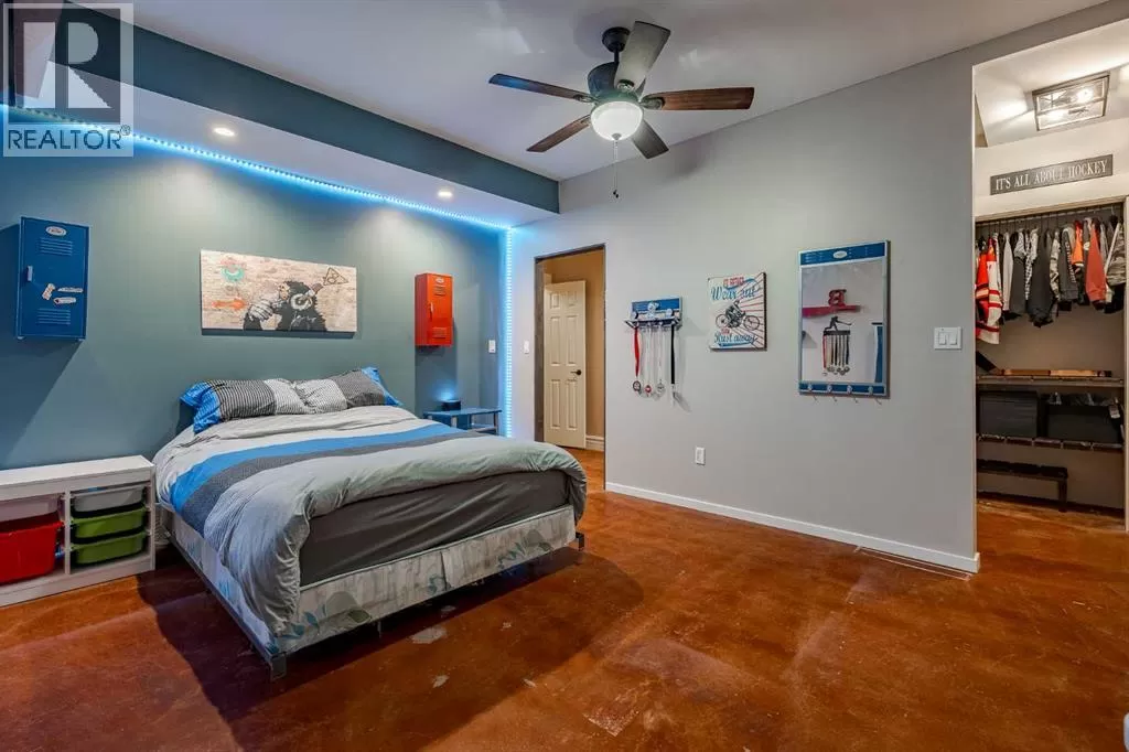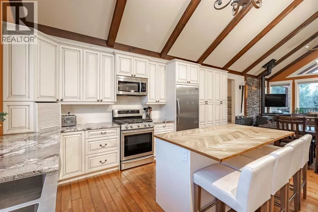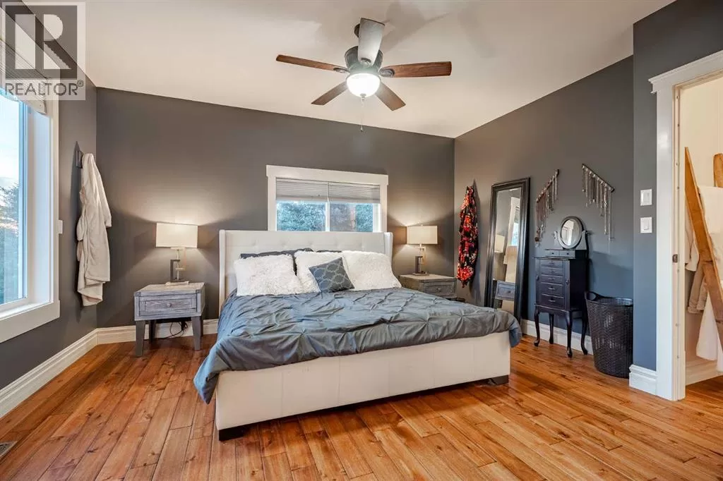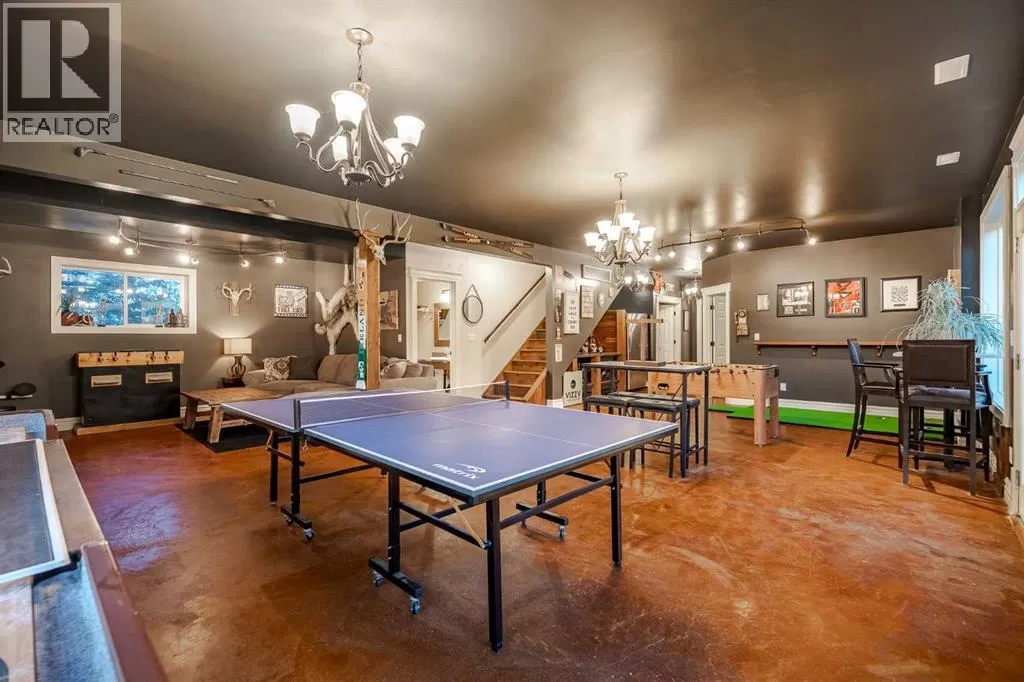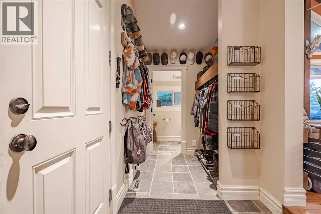 Welcome to this extraordinary walkout bungalow offering over 4,000 sq ft of thoughtfully designed living space with 6 bedrooms, 5 bathrooms, a heated oversized quad garage, a massive 40â x 60â insulated shop, and nearly 20 acres of endless possibility just minutes from Calgary. From the moment you arrive, the striking A-frame architecture stretches from the front elevation all the way to the covered back porch, perfectly framing panoramic mountain views. Step into the grand main level, where soaring vaulted ceilings with exposed beams and expansive west-facing windows fill the space with natural light and unforgettable views. The gourmet kitchen features upgraded cabinetry, a large center island, granite countertops, and premium stainless appliances designed for effortless entertaining. The spacious dining area easily accommodates large gatherings, while the open-concept living room is anchored by a cozy gas fireplace.Just down the hall, the generous primary retreat offers an open 4-piece ensuite and a spacious walk-in closet. Two additional bedrooms provide comfortable spaces for family or guests and share access to a well-appointed main bathroom. A versatile office or den is tucked away near the front entry. Downstairs, the walkout basement extends the living space with a massive recreation room, wet bar, three additional bedrooms, and two full bathrooms, including one ensuite â perfect for multi-generational living or hosting guests.Outside, the property continues to impress with an attached heated oversized quad garage and a 40â x 60â powered shop ready for your next project, hobby, or home-based business. The multiple livestock areas are thoughtfully arranged and include 3 automatic waterers to support a wide range of agricultural uses. Whether you're envisioning a private rural retreat, a hobby farm, or a future development opportunity, this nearly 20-acre parcel offers it all â and with potential for subdivision pending municipal approval, the possibiliti es are truly endless.All this just 10 minutes to Stoney Trail and 15 minutes to shopping, dining, and amenities in Seton and Mahogany. This is more than a home â itâs your gateway to rural luxury, convenience, and future opportunity. Donât miss your chance to experience it. (id:27476)