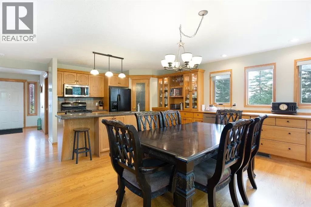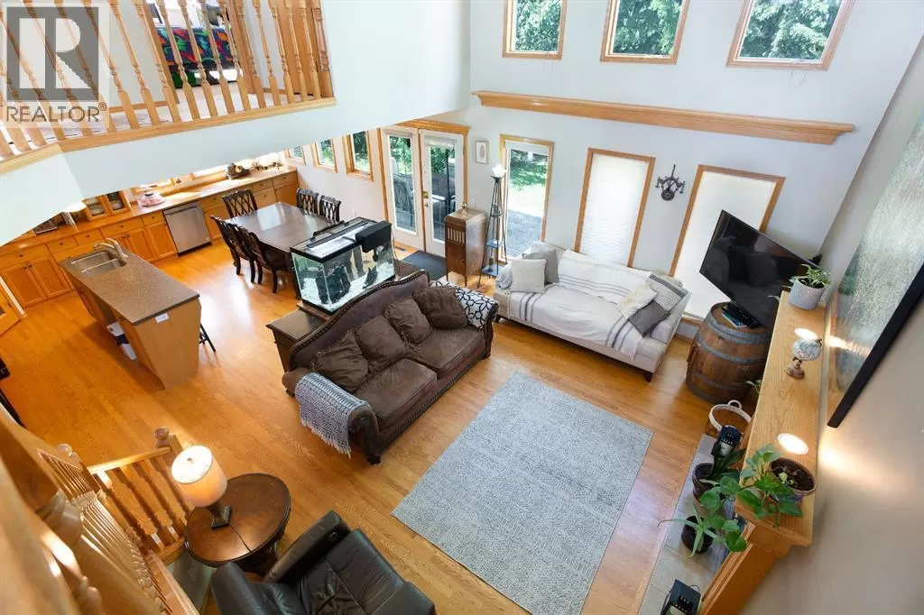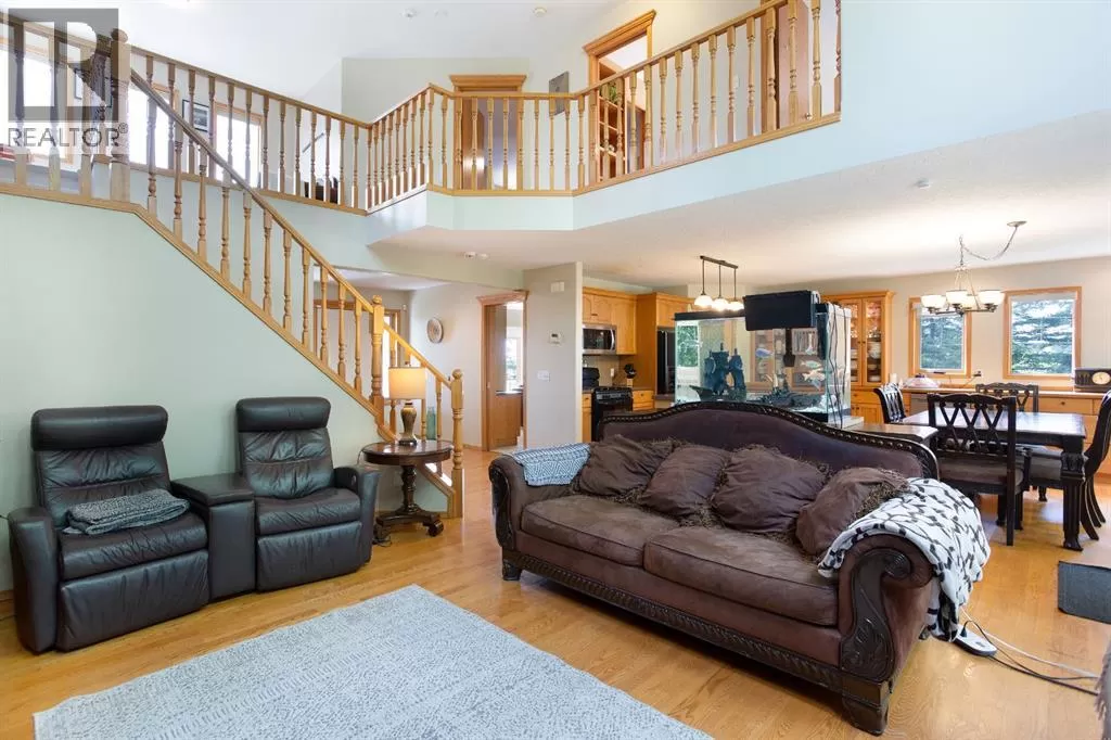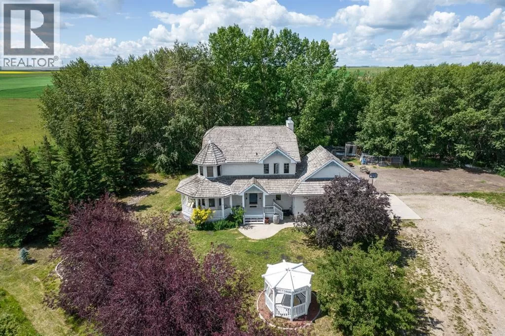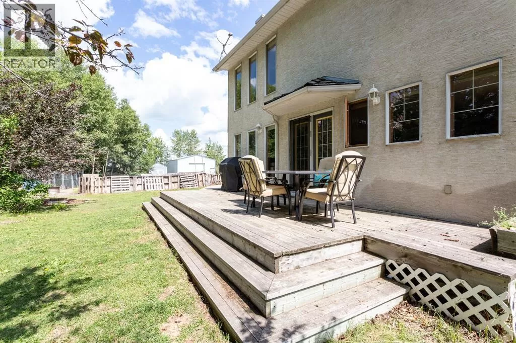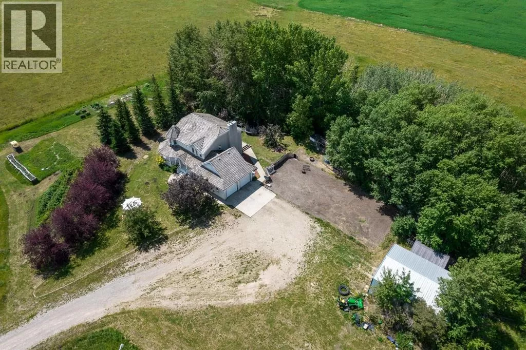 Welcome to this beautifully maintained farmstead acreage offering the perfect blend of country charm and modern comfort. Nestled on a sprawling 6.72-acre lot, this 1,885.67 sq ft residential home provides peaceful, private living just minutes from city conveniences.Step inside to discover a spacious main floor featuring a cozy living room, dining area, and a well-appointed kitchenâperfect for family gatherings. A main floor bedroom and 3-piece bathroom add convenience and flexibility for guests or single-level living.Upstairs, you'll find a 4-piece bathroom and two well-sized bedrooms, including a primary suite with a walk-in closet. A smaller bonus room upstairs offers a great space for a kidsâ study area, reading nook, or games room.The fully developed basement features a 3-piece bathroom, a large recreation room, and two generous rooms ideal for home offices, flex rooms, or personal hobbiesâone of which is currently set up as a gym.Outside, enjoy the peaceful setting from your private deck, surrounded by mature trees. The landscaped yard includes a large grassed area, ample RV and vehicle parking, and a garage to store your equipment or vehicles wth a large shop with a cement pad and overhead heating. This property is perfect for those seeking space, privacy, and the beauty of rural living. Donât miss this rare opportunity to own a slice of country paradise! (id:27476)