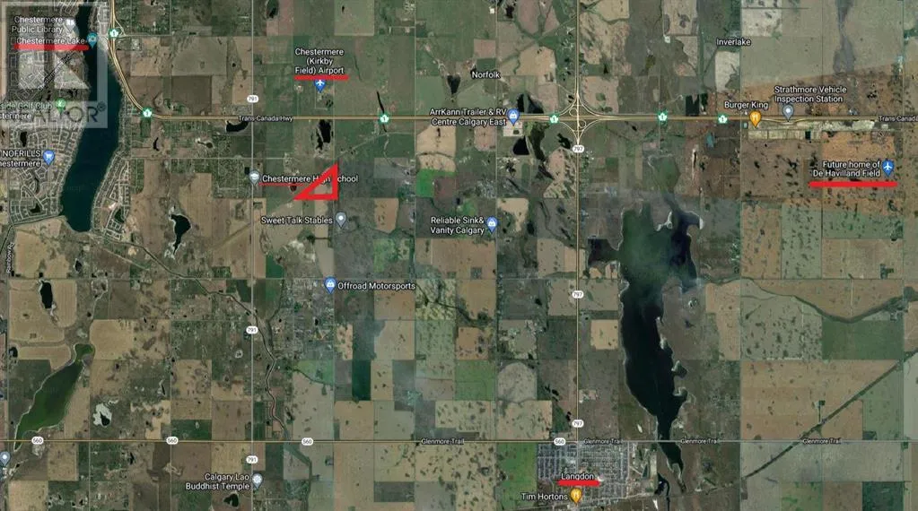 Exceptional PROPERTY FOR FUTURE DEVELOPMENT (subject to approvals) with a view of the mountains. There is IDEAL ACCESS to this property: 1 kilometer south of the TransCanada Highway, 2km from Chestermere Airport, and adjacent to a CN railway. 1 km to the west is Chestermere High School, the City of Chestermere is 3km, and Calgary is 11 km away. UTILITIES ARE CLOSE by this property. This slow-rolling land is cleared and being farmed. There are current and past subdivision plans for the properties to the north and south. The Dehavilland Field airport property is just 11km east. (id:27476)