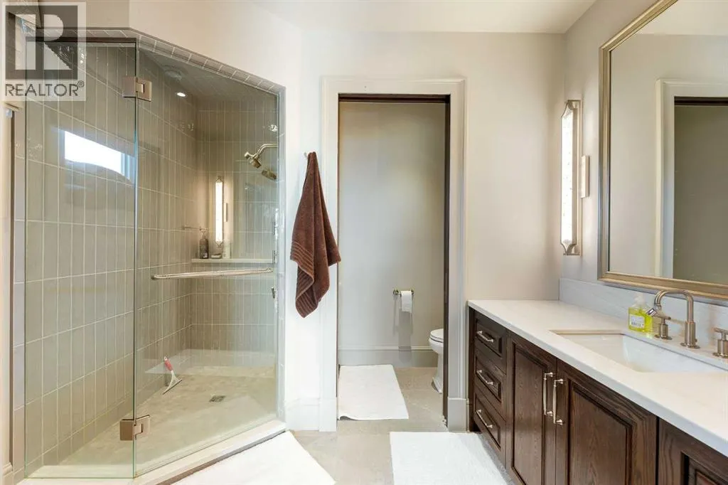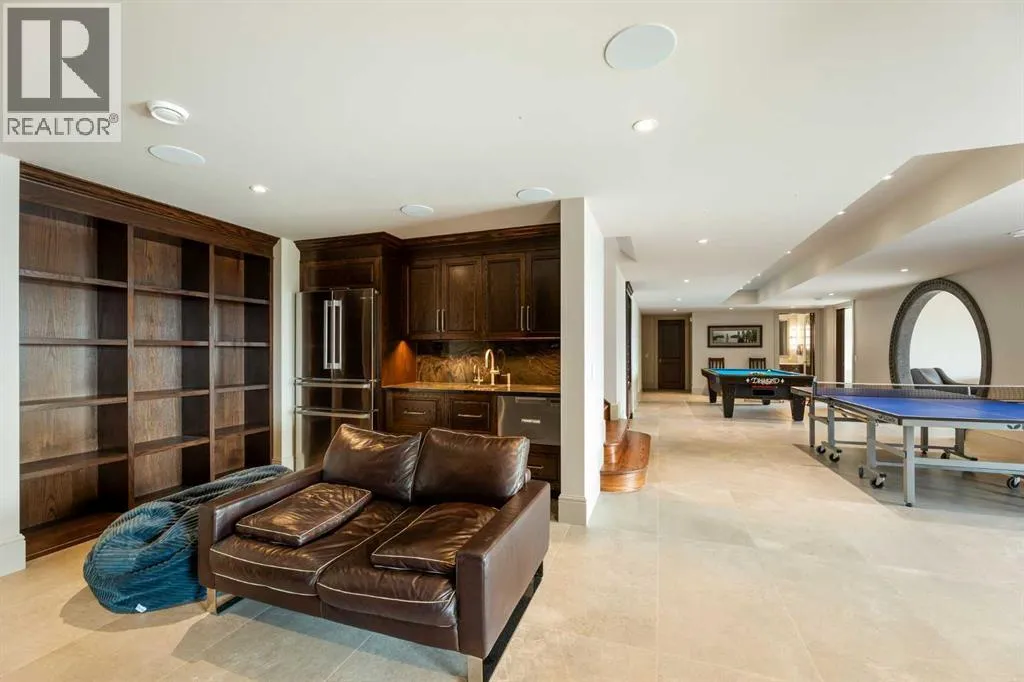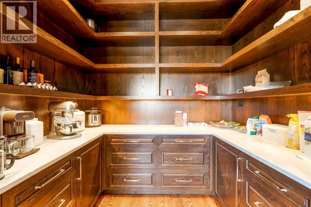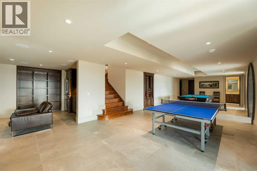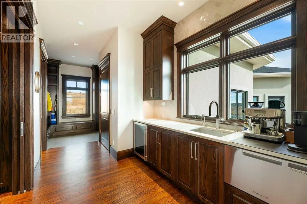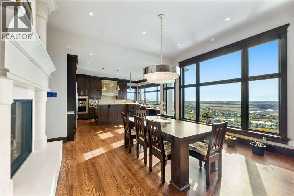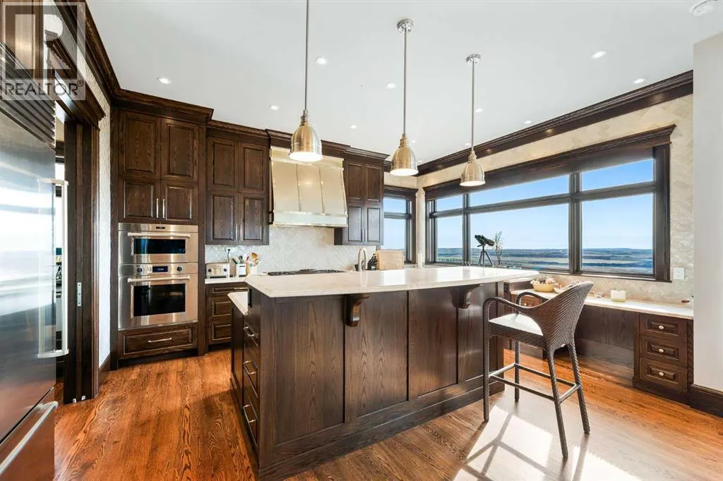 Nestled on 11.76 acres of pristine land, this magnificent 4500 SF walk-out bungalow offers breathtaking panoramic views of the mountains, valley, and Town of Cochrane. Meticulously crafted by McKinley Masters, this home seamlessly blends luxury, comfort, and functionality. The entry features a water wall and expansive windows that highlight the stunning views. The open living area includes a sitting room, dining area, and a chef's kitchen with a timeless scullery and walk-in pantry. The primary bedroom offers spectacular views, a 4-piece ensuite with a dry sauna and laundry facilities, plus a large walk-in closet. The main level also includes a 2-piece bath, elevator, and large mudroom leading to a 4-car (66 x 30) garage with epoxy flooring, dog wash, side attached single garage and elevator access. The lower level has 2 bedrooms, a 4-piece bath, a 3-piece ensuite, a media room, a private office, and a studio opening onto a covered and screened patio with a fire pit. Outdoor features include a front gate with a paved drive, fully fenced property, and stunning landscaping. Additional amenities are a powered C-Can for extra storage, and utilities serviced to the west side of the home. Call today to view. (id:27476)