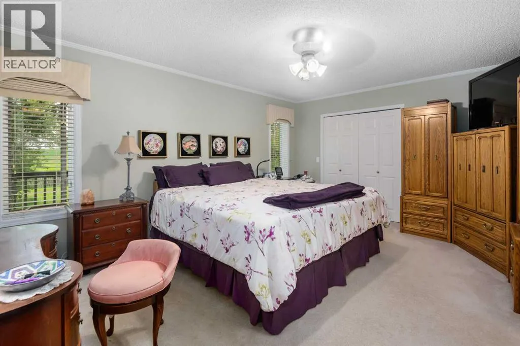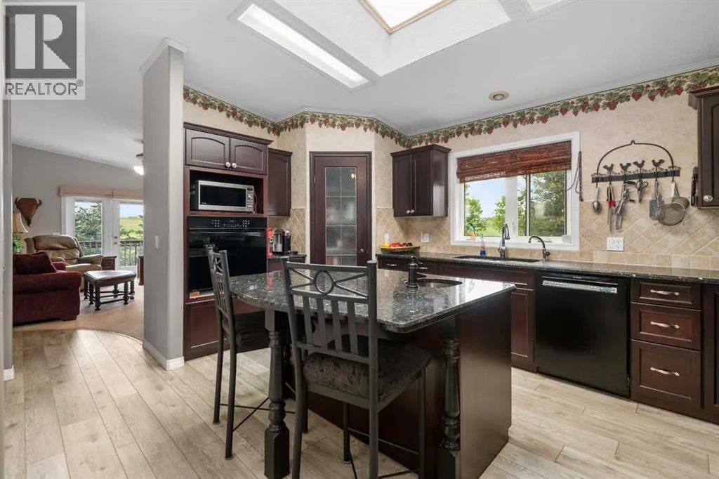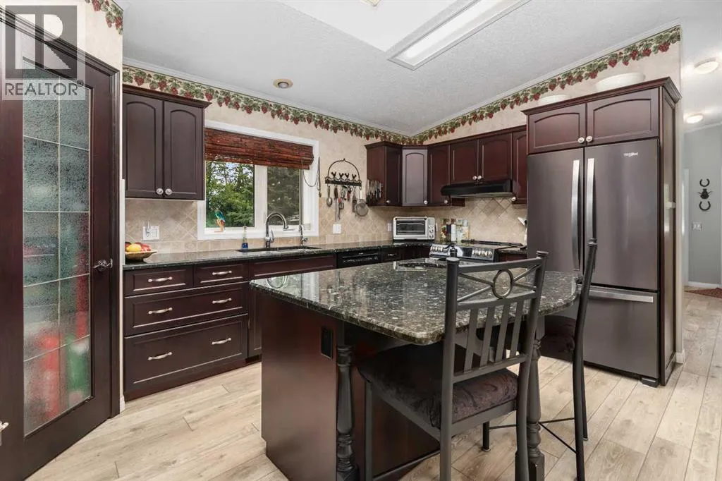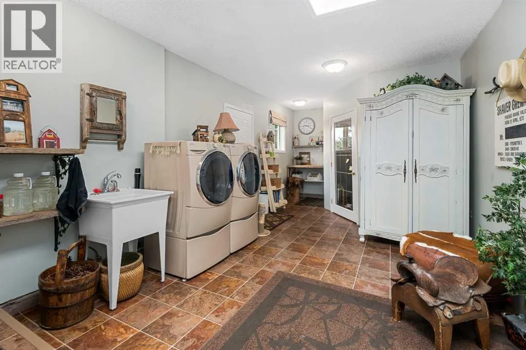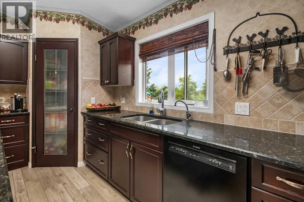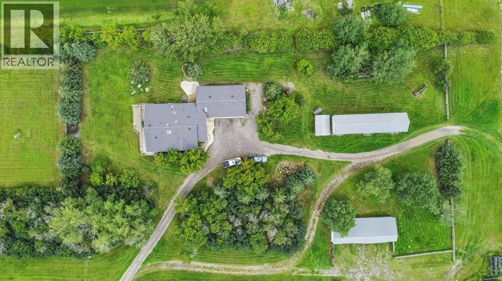 43 acres in the Madden area! A very easy commute to the city or escape to the mountains! This 1997 model modular-prefab home is in mint shape and includes a finished walk-out basement to large patio. The main floor is nice setup for families or couples, great kitchen with a large island and breakfast nook. A formal dining room is great for family functions with French doors to a covered deck (perfect for morning coffee)! The sunroom can double as a quiet sitting room/office, leading to the Primary bedroom w/ 4pcEnsuite. Two more bedrooms w/ separate 4 pce bath is convenient exit off the living room. (there is a RI door way from the master to the hallway to these bedrms but was never installed, future if you have toddler's). The large living room a gorgeous stone faced gas fireplace for those cooler mornings in the spring and fall, and you'll love the view out to the west from the 50 ft balcony! The basement is fully finished with large family room, 1 huge bedroom and a second that doubles as an office. Just off the family room is a 3 pce bath w/ shower, the mechanical room with HE F/A furnace with A/C, boiler for the slab heated floor and main floor laundry/Mudroom, the water pressure tank and water conditioner/softner & distiller. In the storage room off the lower laundry room is a transfer switch if you ever need to connect your generator. If your hobby is wine making this might be the right for you. The triple garage is finished and heated. There is a shed for all your garden needs, plus a big shed for wood working or ?/storage. There's also a shedrow for storing boats trailers, lawn equipment etc. If you have horse's, or other stock the pasture offers a seasonal creek, dug-out that used to was used to stock fish for the grand kids. The balance of the land is in crop and is rented out for 2025. Reasonably priced for those looking for something more then a house on a postage stamp! (id:27476)