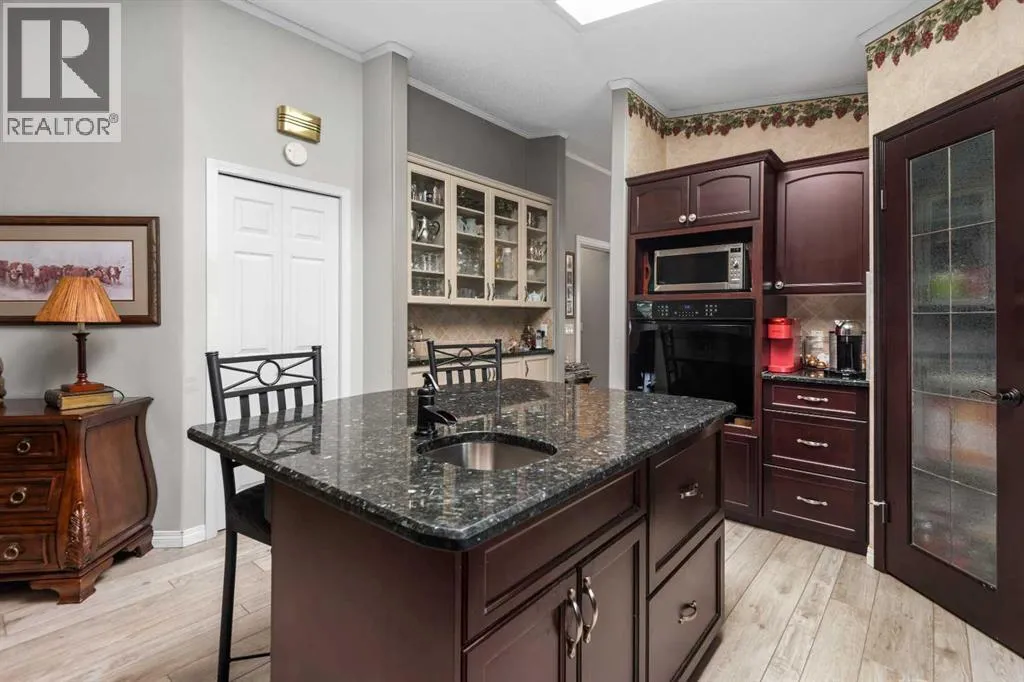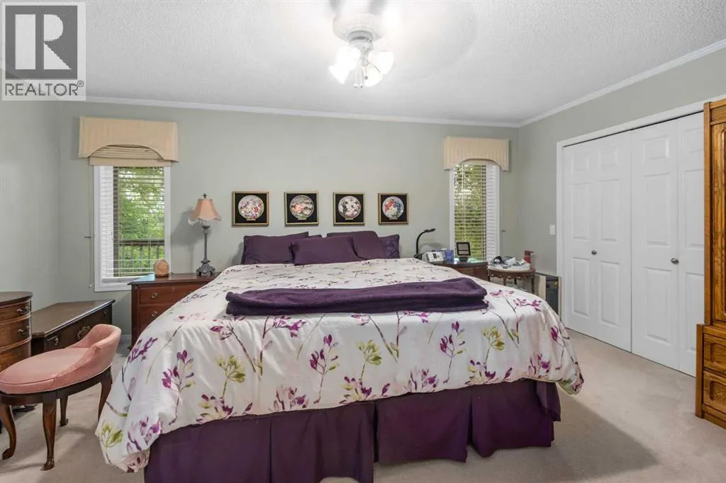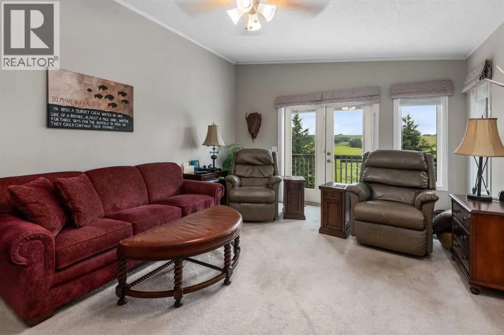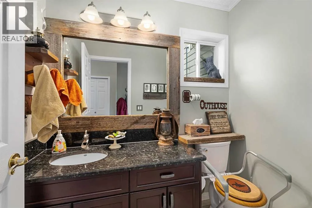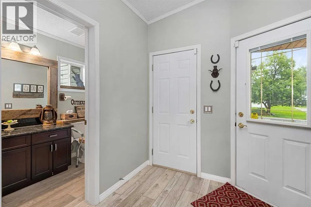 43 acres in the Madden area! A very easy commute to the city or escape to the mountains! This 1997 model modular-prefab home is in mint shape and includes a finished walk-out basement to large patio. The main floor is nice setup for families or couples, great kitchen with a large island and breakfast nook. A formal dining room is great for family functions with French doors to a covered deck (perfect for morning coffee)! The sunroom can double as a quiet sitting room/office, leading to the Primary bedroom w/ 4pcEnsuite. Two more bedrooms w/ separate 4 pce bath is convenient exit off the living room. (there is a RI door way from the master to the hallway to these bedrms but was never installed, future if you have toddler's). The large living room a gorgeous stone faced gas fireplace for those cooler mornings in the spring and fall, and you'll love the view out to the west from the 50 ft balcony! The basement is fully finished with large family room, 1 huge bedroom and a second that doubles as an office. Just off the family room is a 3 pce bath w/ shower, the mechanical room with HE F/A furnace with A/C, boiler for the slab heated floor and main floor laundry/Mudroom, the water pressure tank and water conditioner/softner & distiller. In the storage room off the lower laundry room is a transfer switch if you ever need to connect your generator. If your hobby is wine making this might be the right for you. The triple garage is finished and heated. There is a shed for all your garden needs, plus a big shed for wood working or ?/storage. There's also a shedrow for storing boats trailers, lawn equipment etc. If you have horse's, or other stock the pasture offers a seasonal creek, dug-out that used to was used to stock fish for the grand kids. The balance of the land is in crop and is rented out for 2025. Reasonably priced for those looking for something more then a house on a postage stamp! (id:27476)