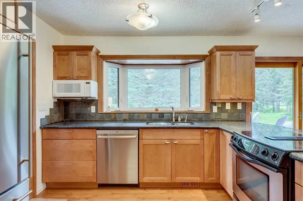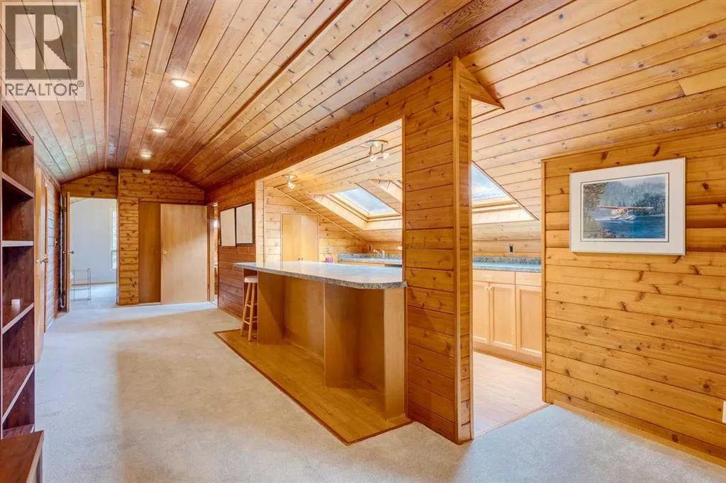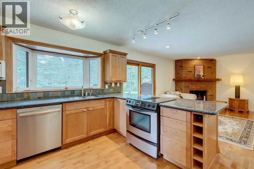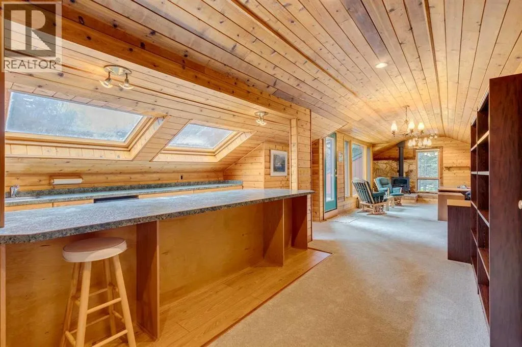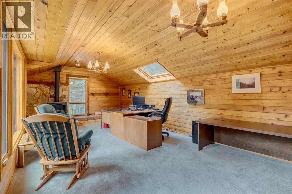 28 Wolf Drive is unmistakably Redwood Meadowsâtowering evergreens, wide skies, and the whisper of the Elbow River nearby. Yet here, in this unique leasehold community, you'll find both a home and a lifestyle: connected, grounded, and entirely your own. The home itself is surrounded by mature trees and natural pathways. Inside, vaulted wood ceilings, picture windows, and a central stone fireplace speak to a life lived close to the landâyet without sacrifice. The kitchen is bright and open, looking out into the trees, and designed for both everyday use and quiet gatherings. Hardwood floors ground the main level, which includes 3 cozy bedrooms and thoughtful nooksâideal for readers, makers, or remote work. Upstairs, the loft is a true bonus, with additional living space that invites guests, recreation, or creativity. A guest area, sunny workshop, media area, or studio space could easily evolve here, 2 additional bedrooms are tucked in, along with a full bathroom, inviting free stanidng gas fire place and large sunny balcony. This space is connected to the outdoors and infused with light. Extensive updates were completed between 2021â2023. The kitchen was renovated with new counters, appliances, sink, faucet, and lighting. Flooring was replaced with luxury vinyl plank, and the main bathroom was updated with new tile, cabinetry, and fixtures. The exterior was professionally painted, several windows were replaced, and the deck was reinforced with new aluminum railings.Key systems were upgraded with new plumbing lines, a hot water tank, partial electrical rewiring, and a new insulated garage door with opener. The basement was refreshed with new flooring, paint, and lighting. Eavestroughs and drainage were improved, and the fireplace chimney was repaired. Additional comfort features include furnace and duct servicing, and a water filtration system. Step outside to an expansive back deck overlooking the forest and Golf course. Wildlife moves freely and the silence is calmi ng Thereâs space for food growing, fireside evenings, or morning stillness with coffee and the hum of the wind in the trees. What makes Redwood Meadows so rare is not just the landâbut the people. A tight-knit community with tennis courts, ice rinks, trails, a fire department, and a community center, Redwood is known for its independence and soul. It sits just minutes from Bragg Creekâs amenities, Kananaskis trails, and under 40 minutes to downtown Calgary via the newly completed Stoney Trail. Redwood Meadows is leasehold land with a monthly community fee currently $216.00 per month (id:27476)