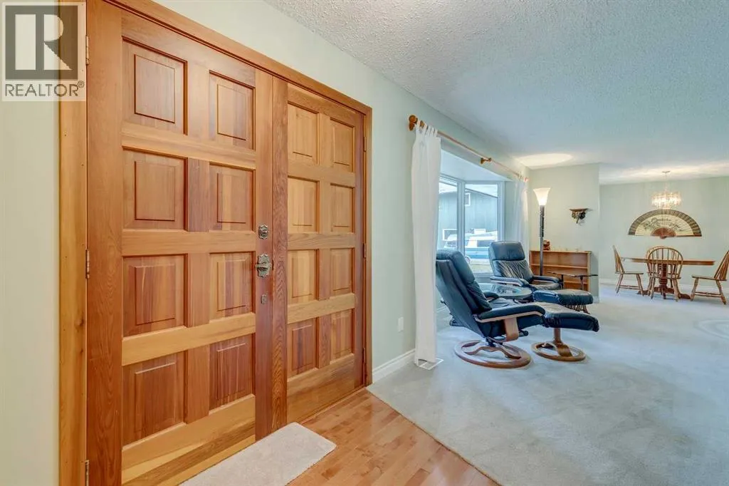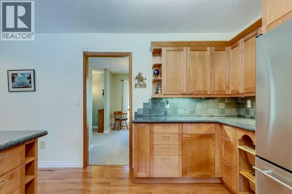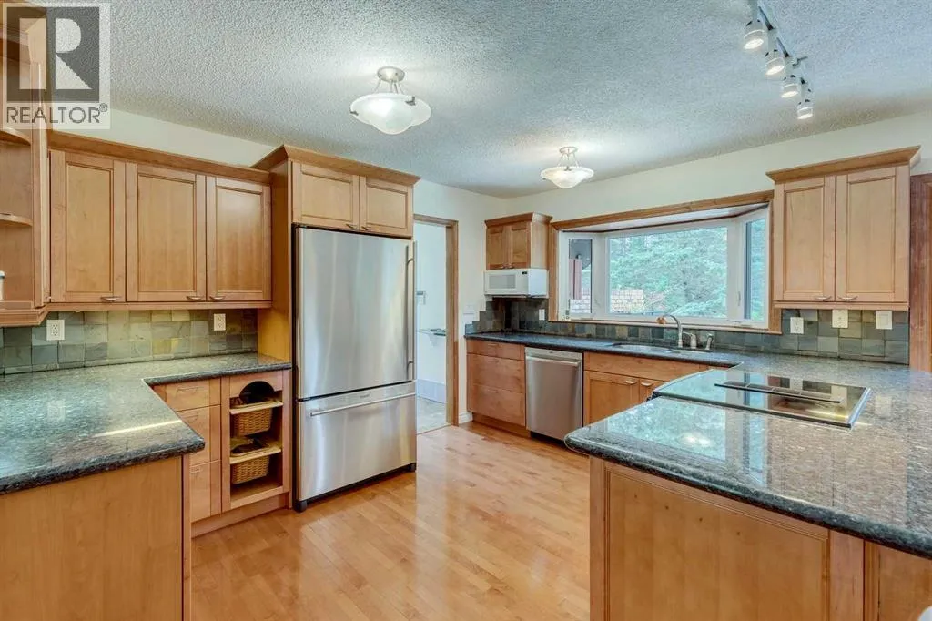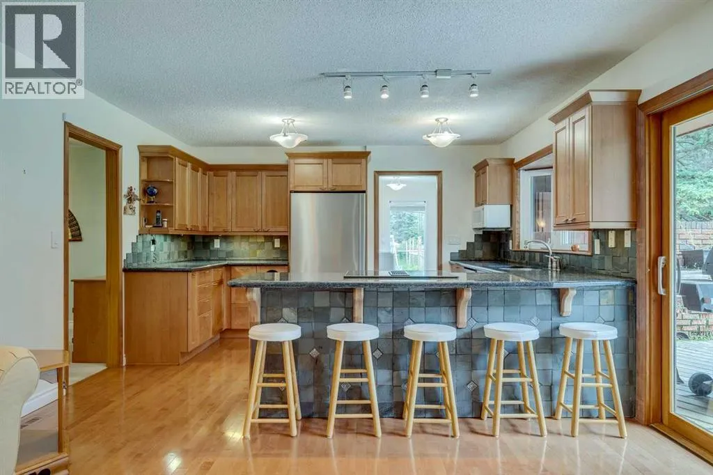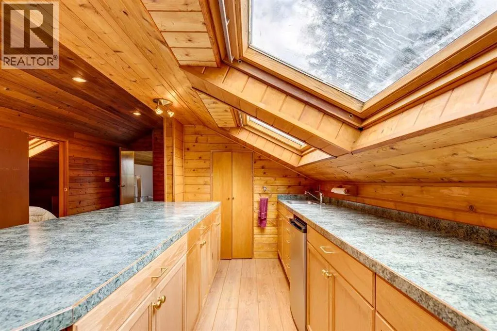 28 Wolf Drive is unmistakably Redwood Meadowsâtowering evergreens, wide skies, and the whisper of the Elbow River nearby. Yet here, in this unique leasehold community, you'll find both a home and a lifestyle: connected, grounded, and entirely your own. The home itself is surrounded by mature trees and natural pathways. Inside, vaulted wood ceilings, picture windows, and a central stone fireplace speak to a life lived close to the landâyet without sacrifice. The kitchen is bright and open, looking out into the trees, and designed for both everyday use and quiet gatherings. Hardwood floors ground the main level, which includes 3 cozy bedrooms and thoughtful nooksâideal for readers, makers, or remote work. Upstairs, the loft is a true bonus, with additional living space that invites guests, recreation, or creativity. A guest area, sunny workshop, media area, or studio space could easily evolve here, 2 additional bedrooms are tucked in, along with a full bathroom, inviting free stanidng gas fire place and large sunny balcony. This space is connected to the outdoors and infused with light. Extensive updates were completed between 2021â2023. The kitchen was renovated with new counters, appliances, sink, faucet, and lighting. Flooring was replaced with luxury vinyl plank, and the main bathroom was updated with new tile, cabinetry, and fixtures. The exterior was professionally painted, several windows were replaced, and the deck was reinforced with new aluminum railings.Key systems were upgraded with new plumbing lines, a hot water tank, partial electrical rewiring, and a new insulated garage door with opener. The basement was refreshed with new flooring, paint, and lighting. Eavestroughs and drainage were improved, and the fireplace chimney was repaired. Additional comfort features include furnace and duct servicing, and a water filtration system. Step outside to an expansive back deck overlooking the forest and Golf course. Wildlife moves freely and the silence is calmi ng Thereâs space for food growing, fireside evenings, or morning stillness with coffee and the hum of the wind in the trees. What makes Redwood Meadows so rare is not just the landâbut the people. A tight-knit community with tennis courts, ice rinks, trails, a fire department, and a community center, Redwood is known for its independence and soul. It sits just minutes from Bragg Creekâs amenities, Kananaskis trails, and under 40 minutes to downtown Calgary via the newly completed Stoney Trail. Redwood Meadows is leasehold land with a monthly community fee currently $216.00 per month (id:27476)