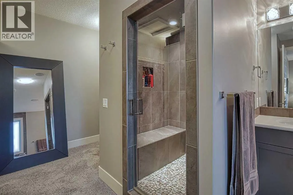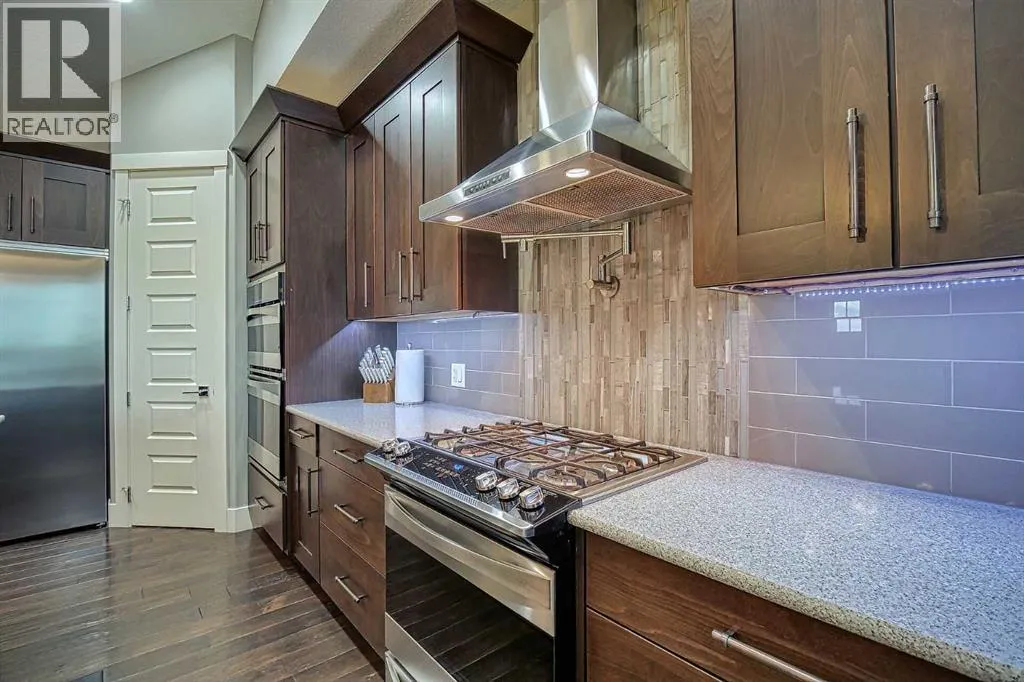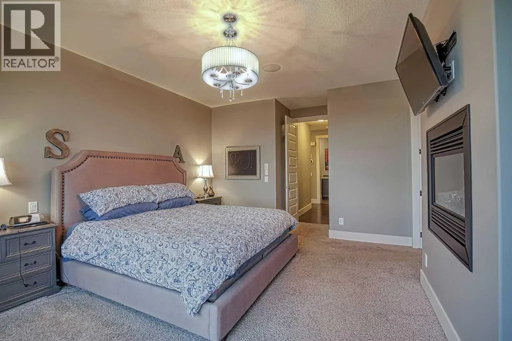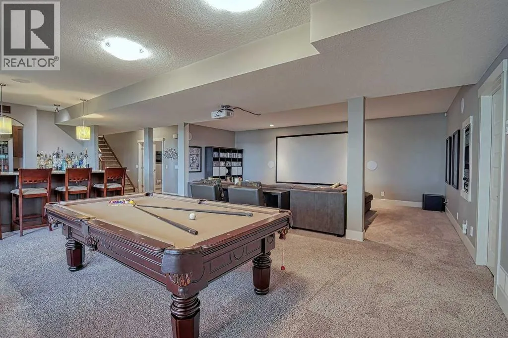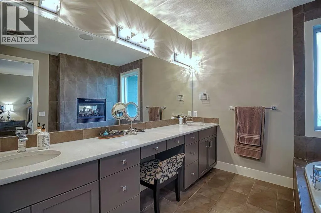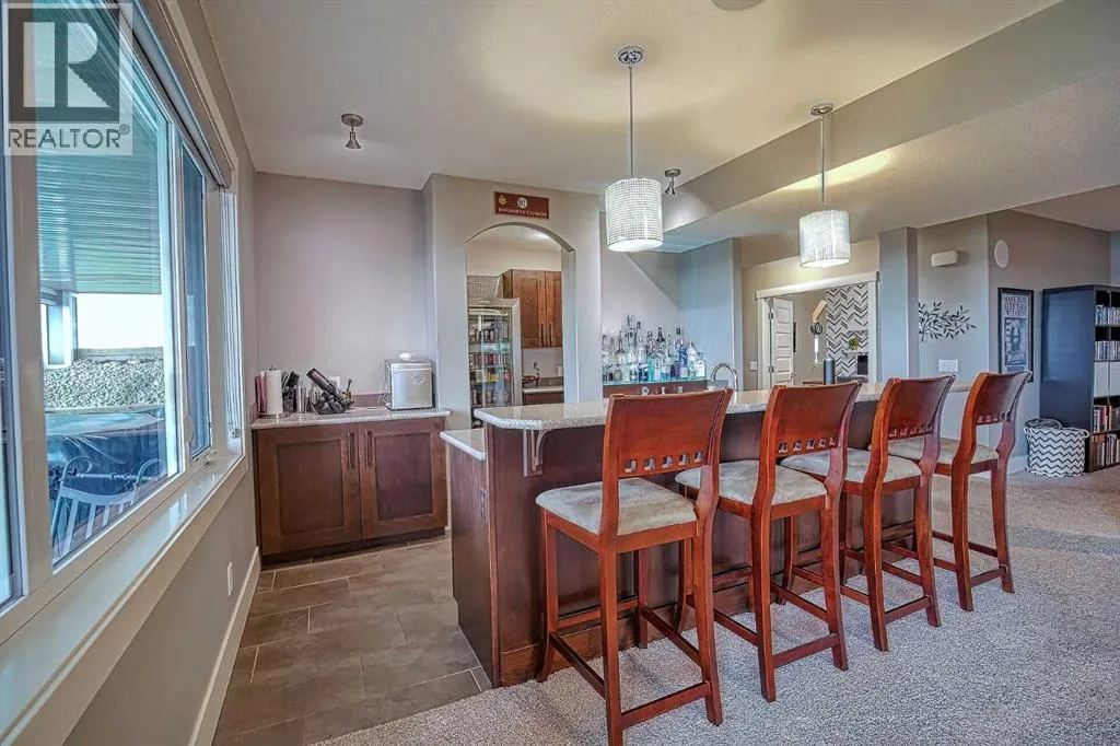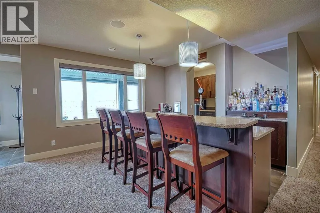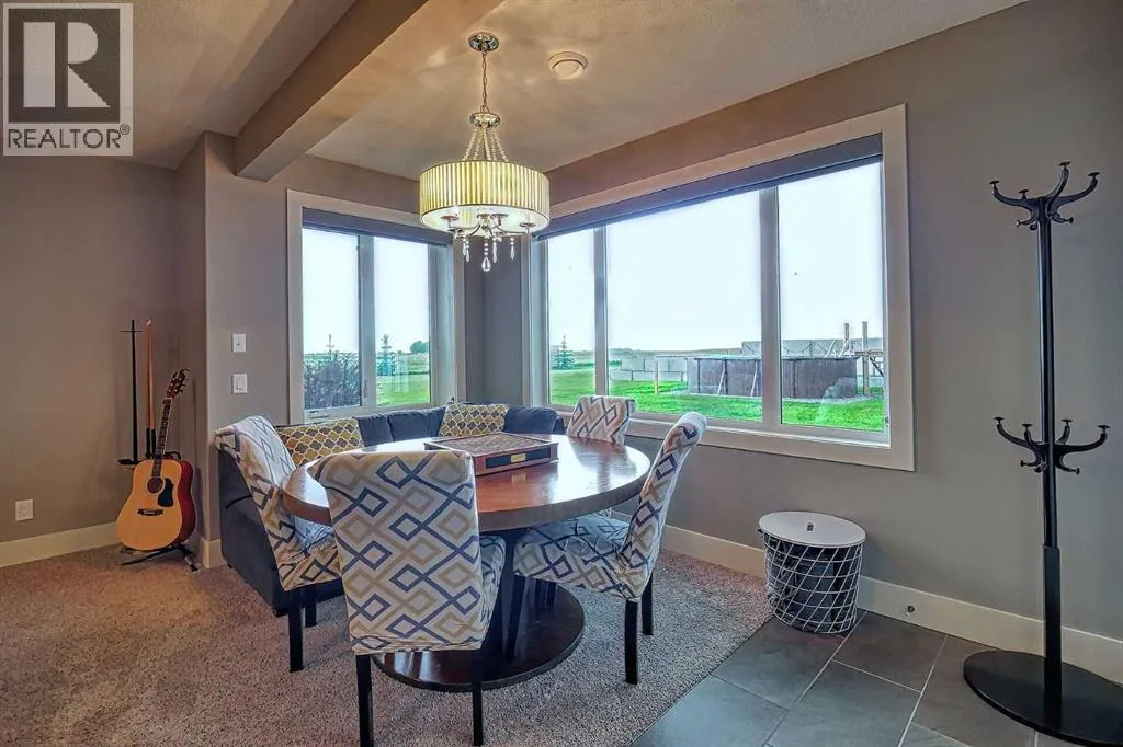 This stunning CUSTOM home was designed with no expense spared. From the moment you enter through the automated gates and follow the paved driveway, the quality is undeniable. Hardy Board siding, a triple garage, Gemstone lighting, and a warm, inviting front porch set the tone. Step into the spacious foyer, complete with its own walk-in closet, and prepare for a WOW moment as the home opens up with light, expansive windows, and breathtaking views. The kitchen, breakfast bar, dining area, and living room share an open-concept design, so no matter where you are, youâre part of the conversation. A floor-to-ceiling brick fireplace with built-ins on both sides anchors the living room beneath soaring 10â ceilings. The dining area easily accommodates a large table, while the breakfast bar and all countertops gleam with high-quality quartz. The built-in fridge and freezer combo is a generous in size, complemented by two ovens including a built-in microwave, a gourmet gas range with another oven, and a convenient pasta faucet. Hand-scraped hardwood floors add sophistication while maintaining a cozy, farm-inspired feel.This thoughtfully designed kitchen offers expansive quartz counters, abundant cabinetry, and a hidden gem â a walk-through butlerâs pantry, providing even more space for your culinary essentials. Double doors open to a spacious deck, perfect for lively gatherings or quiet evenings soaking in the peaceful farm views. In the primary suite, expansive windows frame the rolling landscape, making the view a part of the room itself. A gas fireplace flickers warmly on cooler nights, while a French door leads you directly to the patio for a breath of fresh country air. The luxurious 5-piece ensuite offers a spa-like retreat â a deep soaker tub set beside the fireplace invites indulgent baths, while double sinks, a generous walk-in shower with built-in seating, and a private water closet provide both comfort and function. The grand walk-in closet offers ample space to kee p everything perfectly organized. The Main floor features a second bedroom that provides guests or family with their own retreat, complete with a walk-in closet and an elegant 4-piece ensuite. The hall area includes a 2-piece bath, organized laundry room, and mudroom. Downstairs, a media room with a 135â screen and 4K projector is perfect for movie nights. Thereâs also space for a pool table (negotiable), poker table area and a full wet bar with quartz counters, sink, dishwasher, beer keg with tap, wine storage, and a commercial beverage fridge. This level has two bedrooms with walk-in closets, a 4-piece bath, and a walkout to a covered patio with hot tub, heated above-ground pool, and fire pit. A massive retaining wall ensures privacy, and a shed provides garden storage. There are underground sprinklers. Included are 22 built-in speakers with Control 4 automation, five TVs with mounts, projector and screen & cameras. Come experience Executive Country Living. (id:27476)