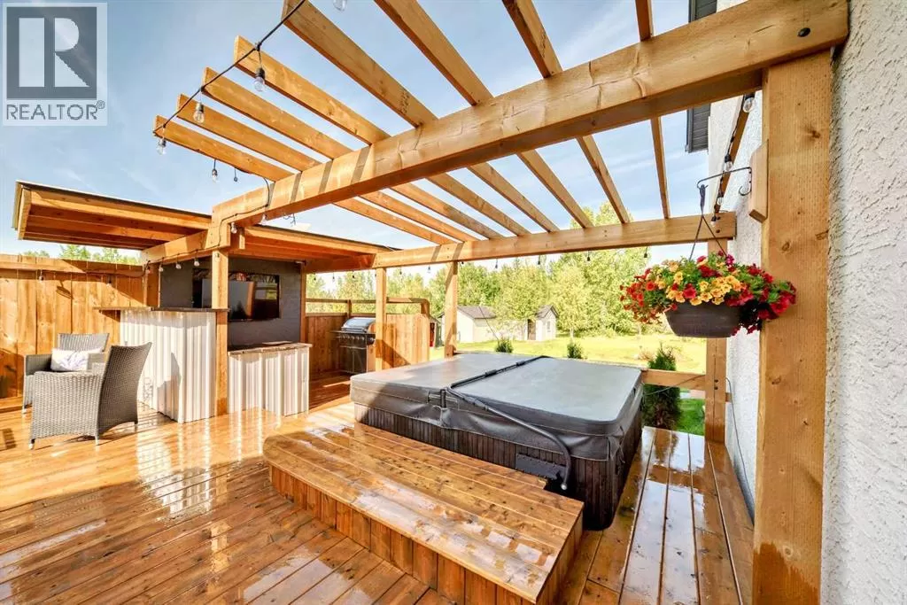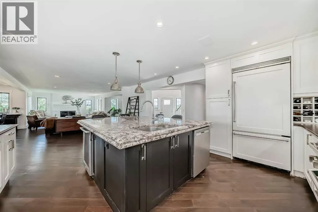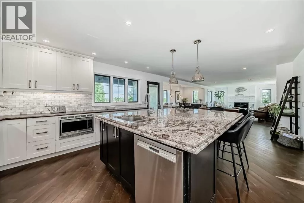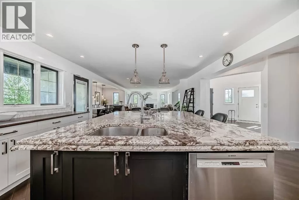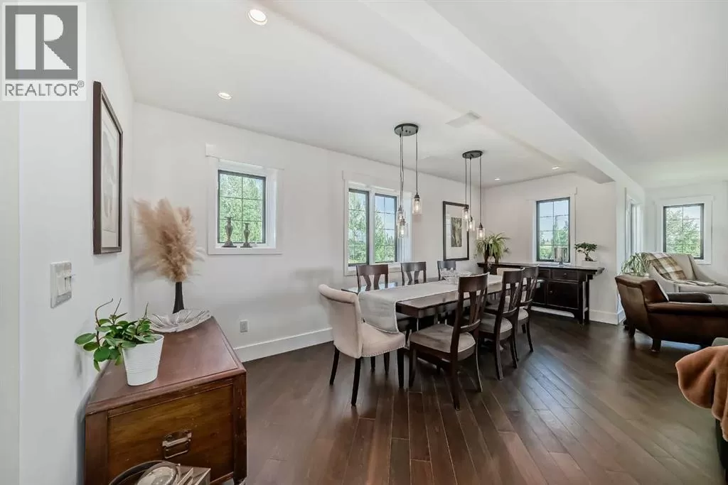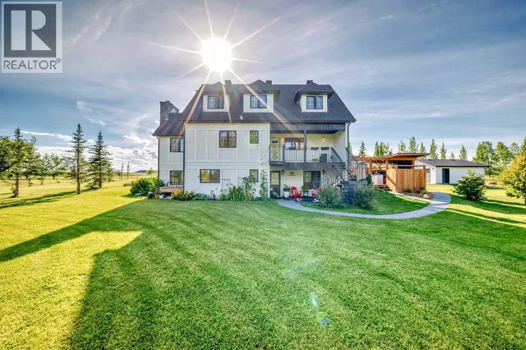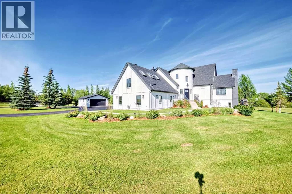 Price Reduced - 4782 Sq Ft of total living space on a stunning 4-acre property. Make this home your CASTLE! This impeccably maintained 2-storey walkout residence blends timeless European charm with luxurious finishes, featuring rich oil-stained hardwood, elegant brick wood-burning fireplaces, and a grand tower foyer with a curved staircase. The main level offers a spacious living room, formal dining area, and an open gourmet kitchen with modern shaker cabinetry, granite countertops, and an eating barâideal for entertaining. Upstairs, youâll find three generous bedrooms, including a stunning primary suite with a spa-like ensuite. The fully developed walkout levelâcurrently set up as a full illegal in-law suiteâincludes an additional bedroom, den, large family room, kitchen, and separate access. The home showcases tile, hardwood, and carpet flooring, and is complemented by a detached 2-car garage, paved circular driveway with RV parking potential, expansive fenced garden, firepit, storage area with a unique wood-burning sauna and games room, plus a garden shed, mature trees, and landscaped grounds. Zoned for horses and close to both private and public schools, this property offers the tranquility of country living with the convenience of being just minutes from the new Costco. (id:27476)