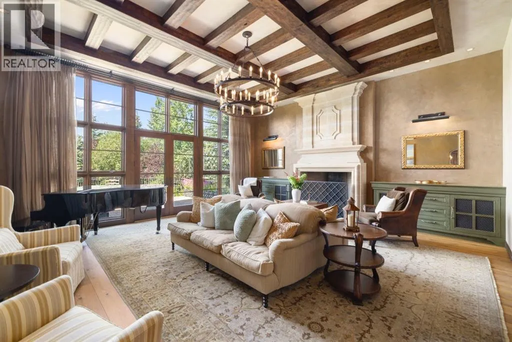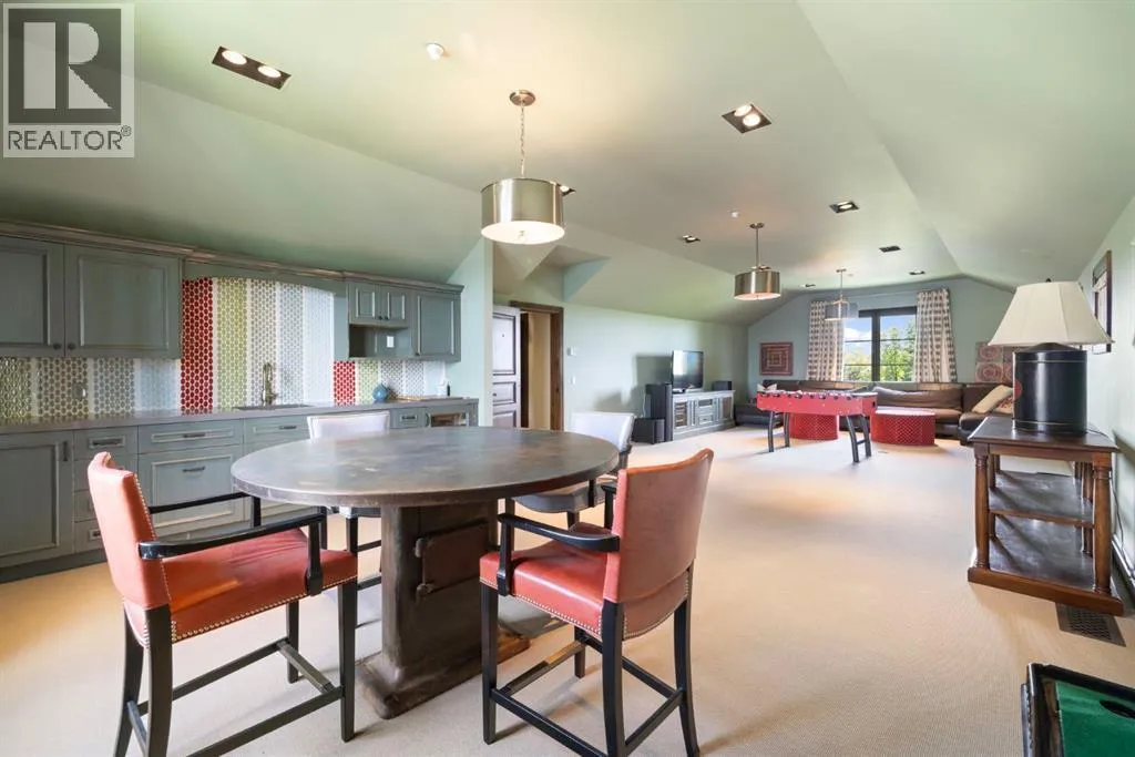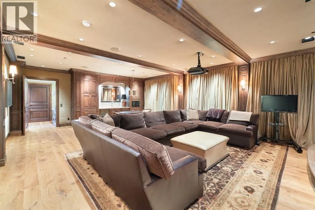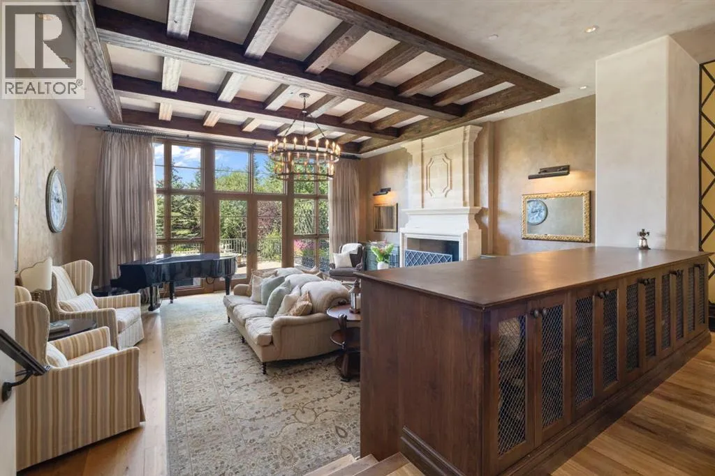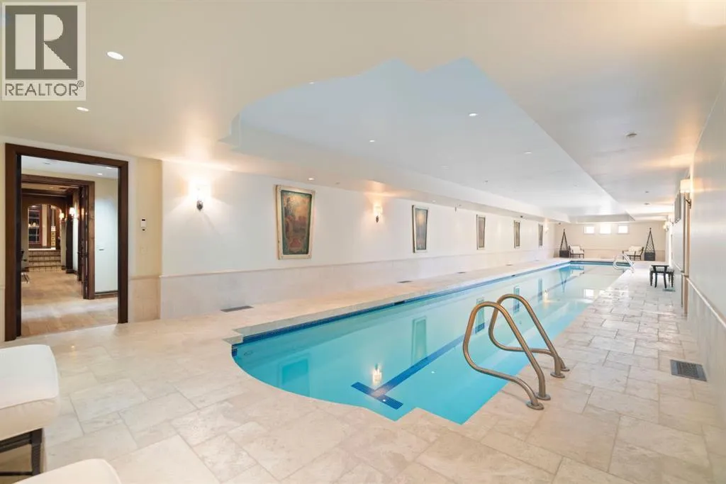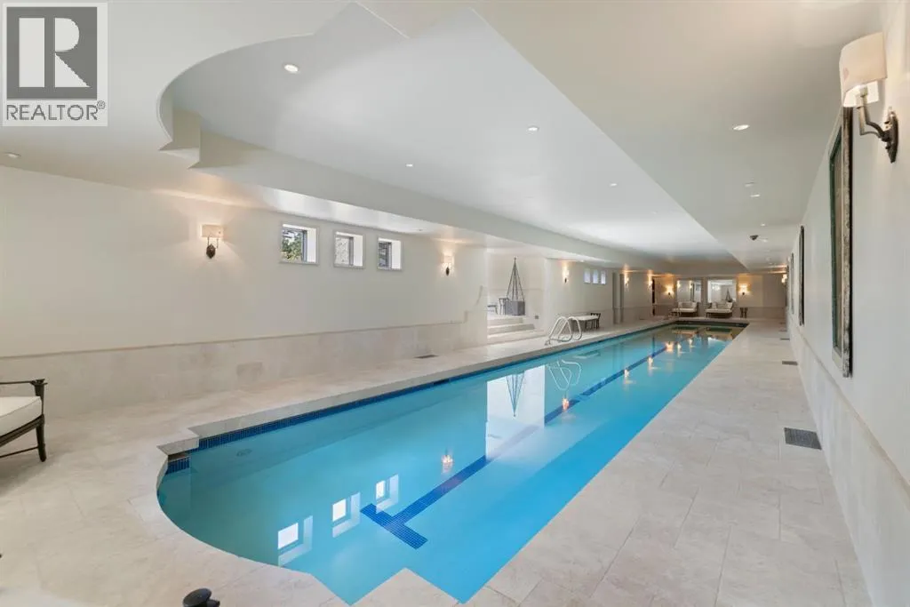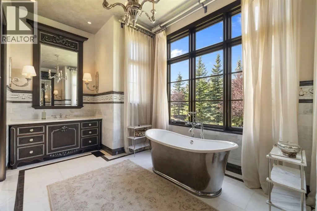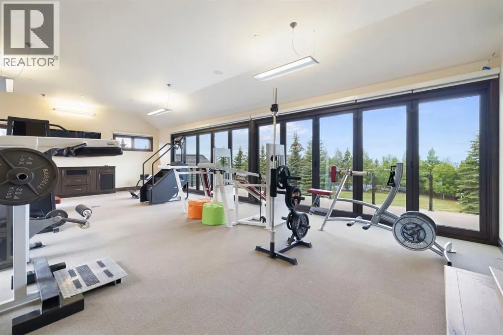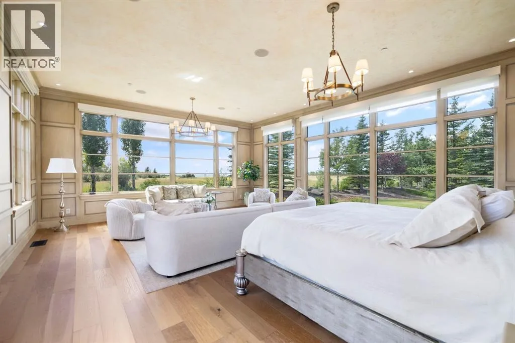 Welcome to 209 Pinnacle Ridge, an exceptional Tuscan inspired estate set on two acres in the foothills with sweeping views of the Rocky Mountains and just minutes from Calgaryâs finest amenities. With more than 16,000 square feet of living space, this villa combines timeless European charm with modern luxury in every detail.The exterior showcases stonework, hand sawn timber beams, industrial steel brackets, and an oversized custom entry door. Inside, arched doorways, barrel vaulted ceilings, and perfectly aligned sightlines frame picturesque views throughout.The grand foyer with its soaring ceiling and bridge walkway leads to a formal lounge with paneled walls, coffered ceilings, and a wood burning fireplace. At the heart of the home, a gourmet kitchen with slab marble islands and a full suite of commercial grade appliances opens to the central courtyard, a private gathering space with built in BBQ, wall fountain, and pergola topped brick patio. Just beyond, the family room features a travertine mantled fireplace and French doors to the west lawn.The lower level is designed for both leisure and entertainment, offering a 25-meter lap pool, spa inspired hot tub alcove, walkout patio framed by sandstone boulders, a private theatre with professional grade audio visual, a games room with fabric lined walls, and a brick barrel vaulted wine cellar.The private primary wing showcases sweeping 180 degree mountain views and a luxurious ensuite. The upper level, accessed by dual staircases or elevator, offers five childrenâs bedrooms, a gym, and recreation spaces. Completing the home is a six car garage, extensive storage, a sport court, and professionally landscaped grounds.This estate has been featured in the National Post and Best Home Alberta, showcased in the award-winning series Fargo, and even served as Leonardo DiCaprioâs residence during the filming of The Revenant. It is a rare combination of artisanal craftsmanship, imported and local materials, and timeless arc hitectural design. All within 10 minutes of Springbank Airport, 15 minutes of downtown Calgary, 40 minutes to Banff, and close to Calgaryâs top private schools. (id:27476)