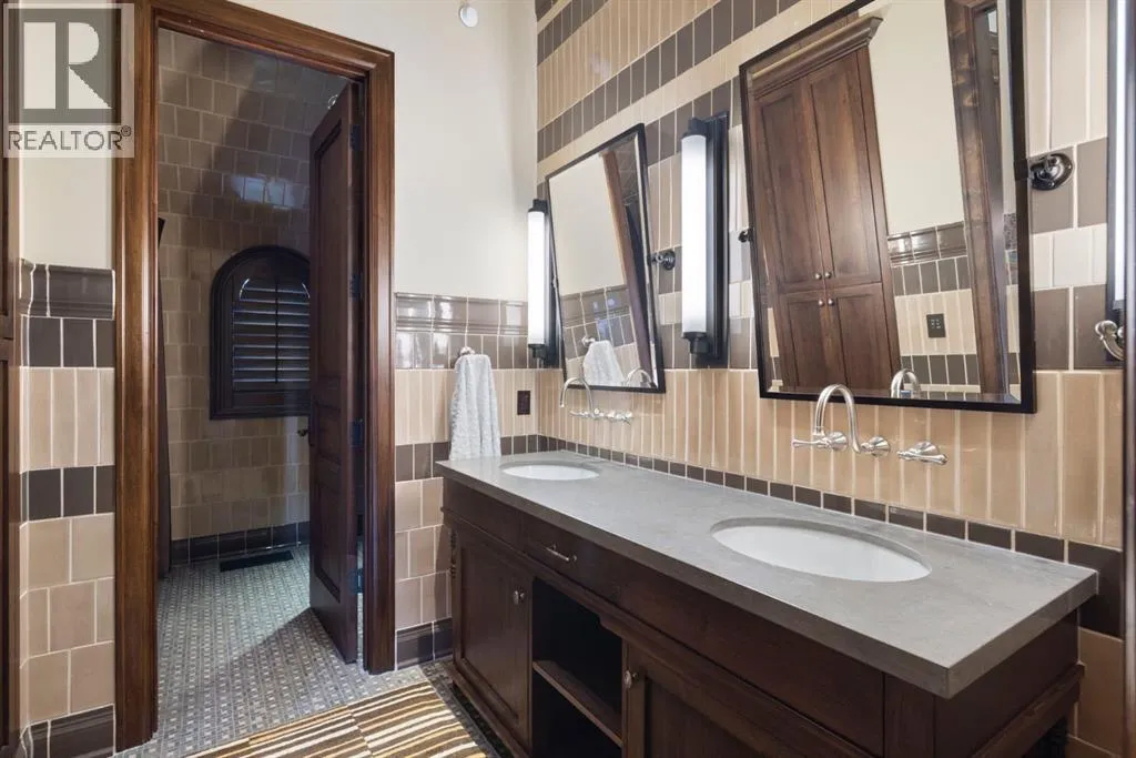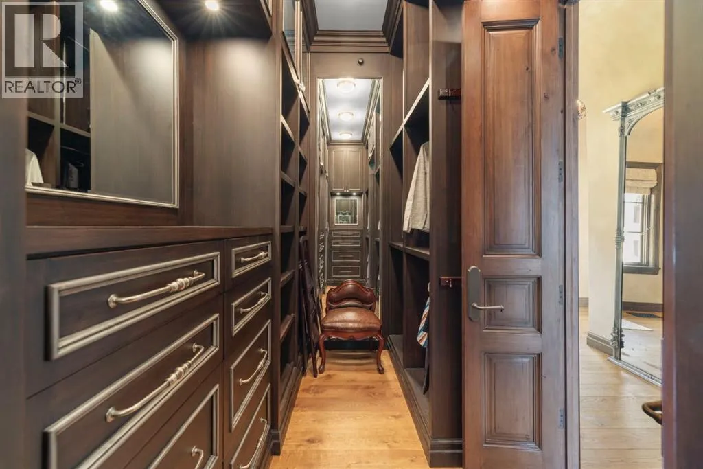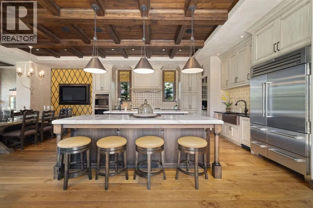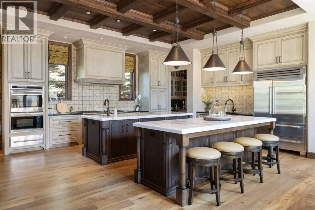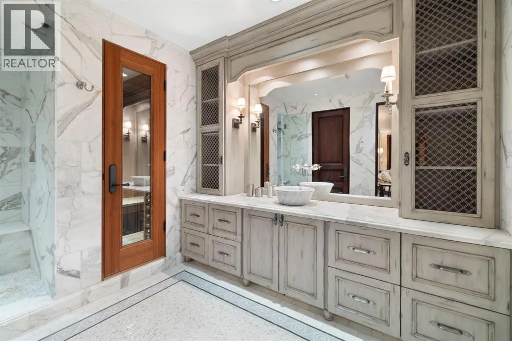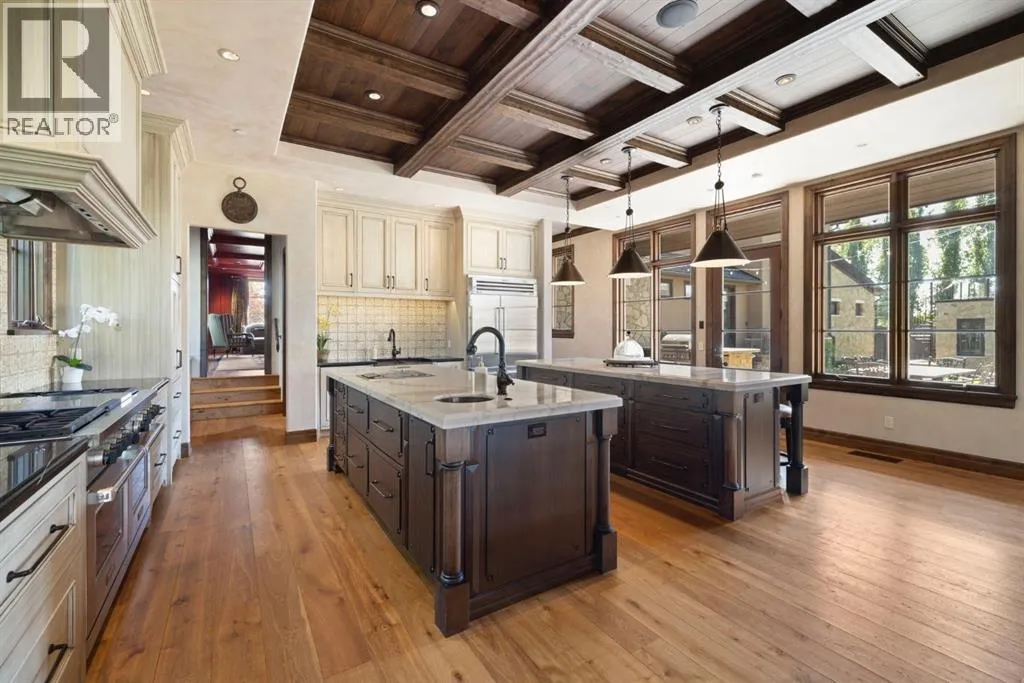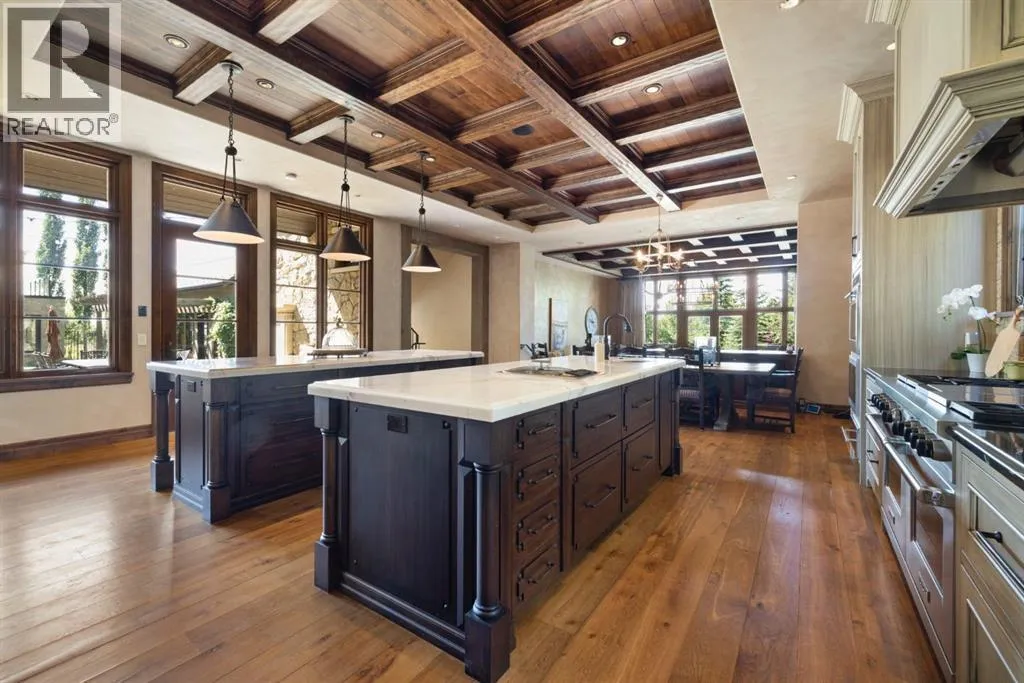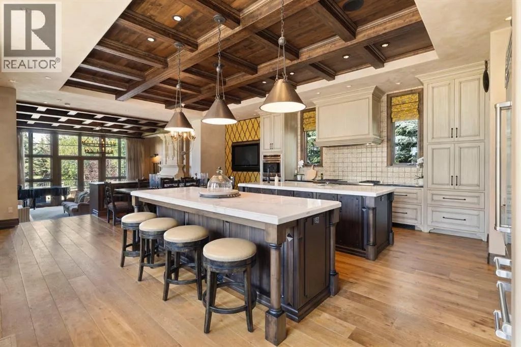 Welcome to 209 Pinnacle Ridge, an exceptional Tuscan inspired estate set on two acres in the foothills with sweeping views of the Rocky Mountains and just minutes from Calgaryâs finest amenities. With more than 16,000 square feet of living space, this villa combines timeless European charm with modern luxury in every detail.The exterior showcases stonework, hand sawn timber beams, industrial steel brackets, and an oversized custom entry door. Inside, arched doorways, barrel vaulted ceilings, and perfectly aligned sightlines frame picturesque views throughout.The grand foyer with its soaring ceiling and bridge walkway leads to a formal lounge with paneled walls, coffered ceilings, and a wood burning fireplace. At the heart of the home, a gourmet kitchen with slab marble islands and a full suite of commercial grade appliances opens to the central courtyard, a private gathering space with built in BBQ, wall fountain, and pergola topped brick patio. Just beyond, the family room features a travertine mantled fireplace and French doors to the west lawn.The lower level is designed for both leisure and entertainment, offering a 25-meter lap pool, spa inspired hot tub alcove, walkout patio framed by sandstone boulders, a private theatre with professional grade audio visual, a games room with fabric lined walls, and a brick barrel vaulted wine cellar.The private primary wing showcases sweeping 180 degree mountain views and a luxurious ensuite. The upper level, accessed by dual staircases or elevator, offers five childrenâs bedrooms, a gym, and recreation spaces. Completing the home is a six car garage, extensive storage, a sport court, and professionally landscaped grounds.This estate has been featured in the National Post and Best Home Alberta, showcased in the award-winning series Fargo, and even served as Leonardo DiCaprioâs residence during the filming of The Revenant. It is a rare combination of artisanal craftsmanship, imported and local materials, and timeless arc hitectural design. All within 10 minutes of Springbank Airport, 15 minutes of downtown Calgary, 40 minutes to Banff, and close to Calgaryâs top private schools. (id:27476)
