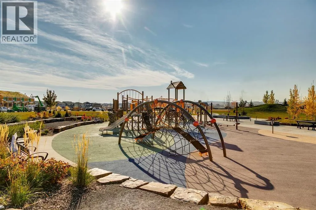 This brand-new luxury townhome by Streetside Developments is coming soon to the award-winning community of Harmony, with completion early December 2025. Designed with both elegance and functionality in mind, this home offers a fresh new layout that includes a front-attached double garage, an expansive 33' driveway with plenty of room for your vehicles and a spacious backyard that backs onto greenspace near the lake, a rare find in townhome living. Built with concrete along one common wall, these homes provide exceptional soundproofing and peace of mind. Inside, the open-concept design flows beautifully from the upgraded gourmet kitchen into the dining and living areas, making it ideal for both everyday living and entertaining. The kitchen is appointed with top of the line Bosch appliances, quartz counters and backsplash, waterfall countertops, a silgranite sink, full-height cabinetry, a breakfast bar and convenient pantry. The living room centres around a gas fireplace, while the entry and powder room showcase stylish hexagon tile. Upstairs, luxury continues with upgraded LVP flooring carried right up the stairs and throughout the upper level and a stunning primary suite, in-floor heating in the ensuite with a spa-inspired design. Comfort is built in with air conditioning rough-in, while the private deck includes a BBQ gas line on your covered rear porch. Step outside to enjoy a 16âx8â covered deck and a large, fully sodded backyard, enclosed by a privacy fence that transitions seamlessly into developer-installed wrought iron fencing along the greenspace. The basement remains undeveloped, allowing you to create the space that best suits your lifestyle. With no condo fees, National Home Warranty coverage and finishings that impress at every turn, this property sets a new bar for low maintenance townhome living. Life in Harmony offers more than just a home, itâs a lifestyle rooted in connection, recreation and natural beauty. Residents enjoy private lake access, a bea ch club, the Mickelson National Golf Club, an adventure park and the future Nordic Spa and Village Centre, all while being only minutes from Calgary and close to the mountains and Canmoreâs endless outdoor adventures. Families benefit from a strong school system in the area, including the prestigious Edge School for Athletes just minutes away. Photos are representative of the floorplan and not the actual color palette. Additional photos show the exact selections for this unit. Please inquire today regarding all available promotions from the builder or if you would like to book a site tour. Visit the new showhome at 1176 Sailfin Heath to learn more about other opportunities in this gorgeous development. (id:27476)