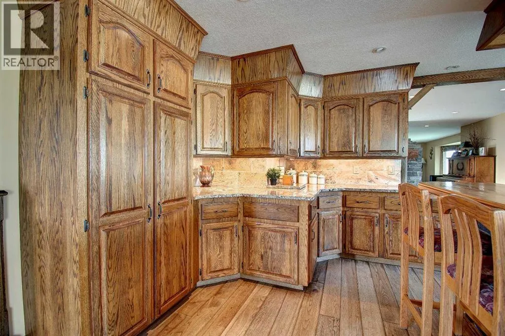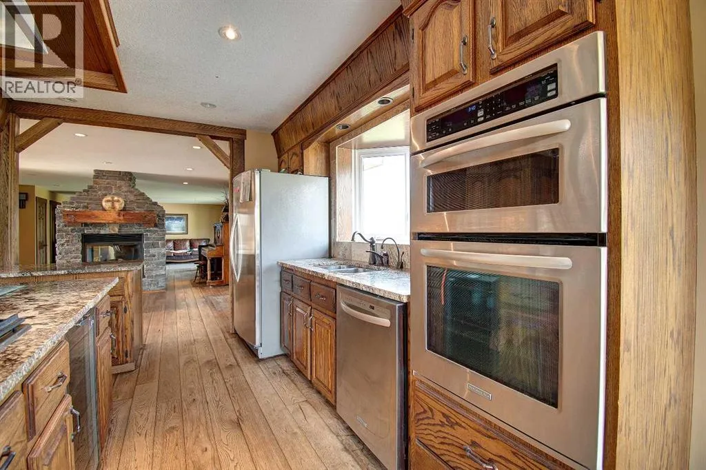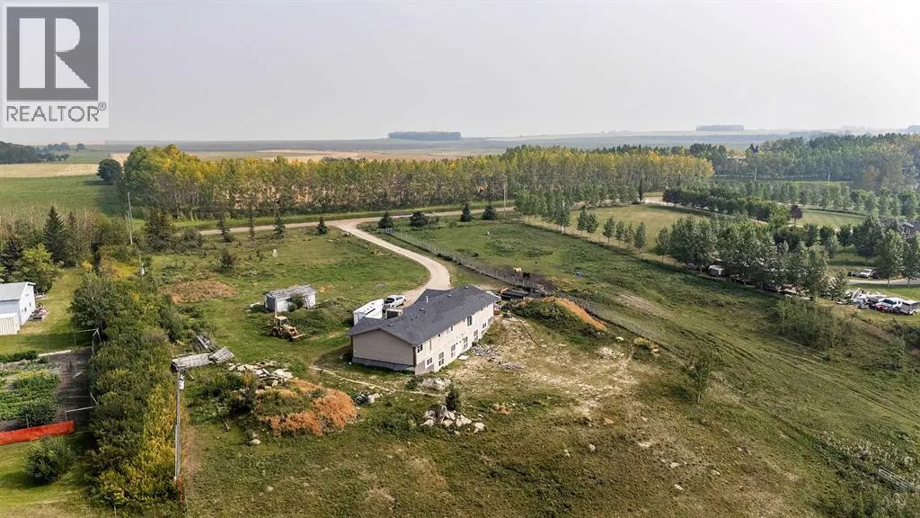 Opportunity knocks! DO NOT MISS OUT on this home on 20 acres backing onto COULEE. The home was moved onto a new foundation and substantially renovated in 2009. The foyer leads to the stunning kitchen with TONS of stained oak cabinets, granite counters, stainless steel appliances and large eat-in area. The formal dining room is very spacious allowing for a big dining table set and has a 2-way stone covered fireplace as a focal point. The formal living offers big windows allowing for plenty of natural light. There are two HUGE bedrooms on main floor one of which is the primary retreat that features a STUNNING 5 pce ensuite bathroom with a separate walk-in closet shower, soaker tub and walk-in closet. Finishing the main floor is another four piece bathroom, powder room and laundry room. The lower level is almost fully finished with in-floor heat, wet bar, wood fireplace and an almost complete bathroom (fixtures in place), and 2 great sized bedrooms! Outside there is SO MUCH POTENTIAL to create an oasis type of space with amazing views to the West. This will not last - call you favorite agent to book a viewing! (id:27476)