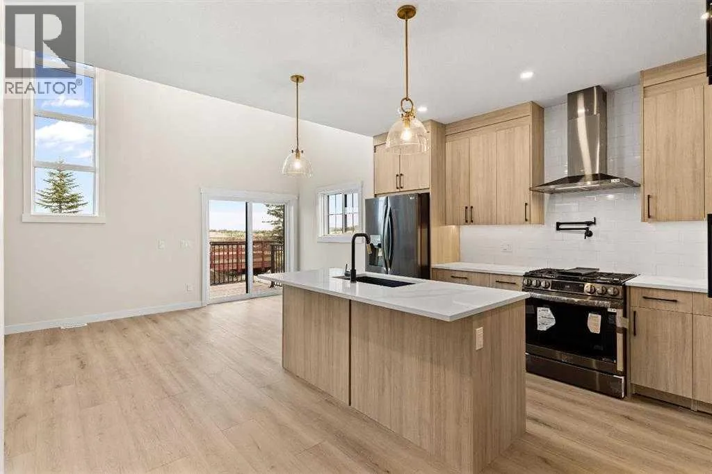 Whether youâre looking for a family retreat, year-round vacation getaway, or peaceful retirement home, this property delivers unmatched comfort, breathtaking mountain views, and a vibrant community lifestyle all minutes from Cochrane, Calgary, Kananaskis, and Canmore. This brand-new Exquisite Homes luxury cottage offers over 1,400 sq. ft. of thoughtfully designed living space with 3 bedrooms and 2.5 bathrooms. Highlights include an open-concept living room with a Montigo gas fireplace, a chefâs kitchen with quartz countertops, gas range, and floor-to-ceiling cabinetry, plus both front and back patios for relaxation. Upstairs, tall glass railings frame the open-to-below design, while the fully finished basement adds a spacious rec room with wet bar, an extra bedroom, and another full bath. Just 20 minutes from Kananaskis, youâll have endless opportunities for hiking, fishing, camping, and skiing at Nakiska Resort. At Cottage Club on Ghost Lake, youâll enjoy the security of a gated community paired with incredible amenities, private beach access, hammock lounges, BBQ areas, sand volleyball courts, a private boat launch, and day-use docks. Families will especially appreciate the indoor pool, hot tub, fitness center, tennis courts, library, and even a wood-fired pizza oven, making every day feel like a getaway. (id:27476)