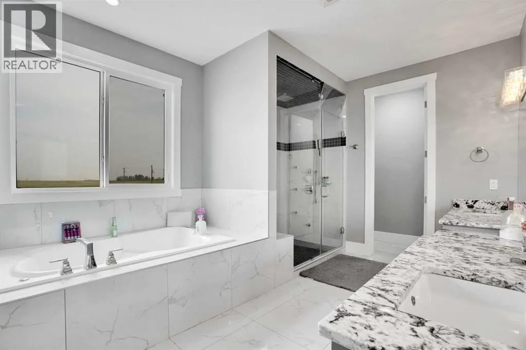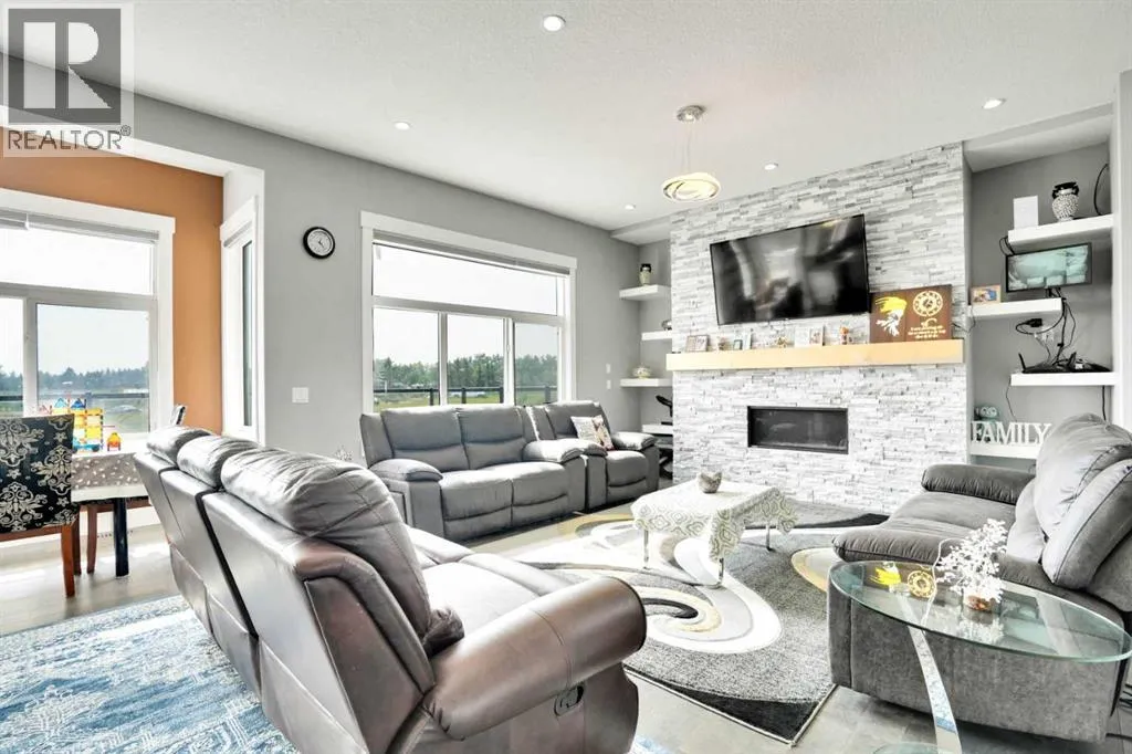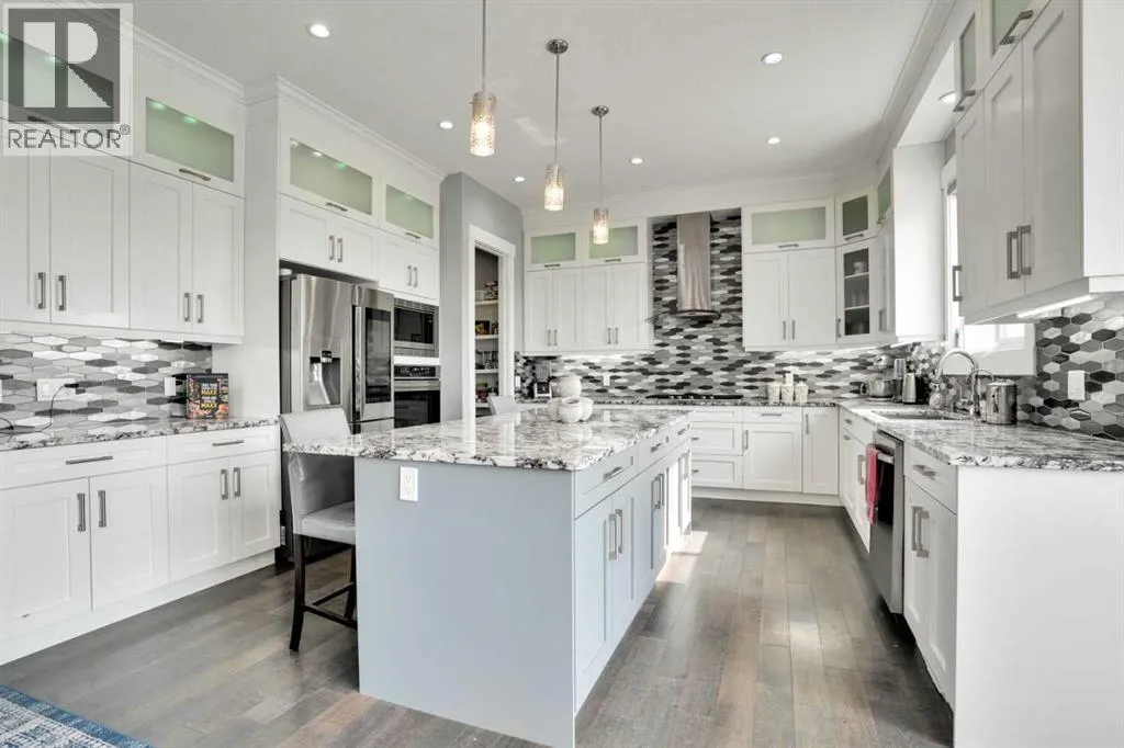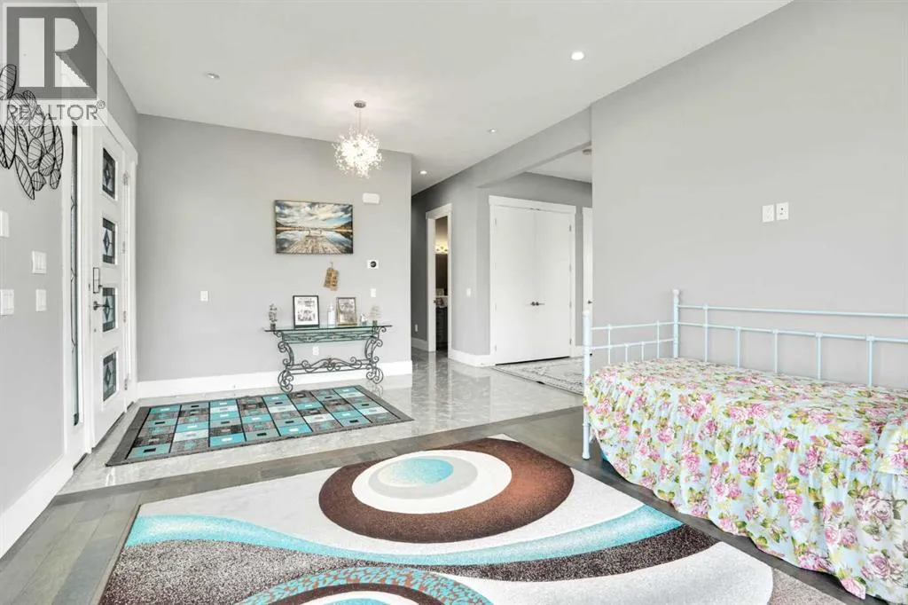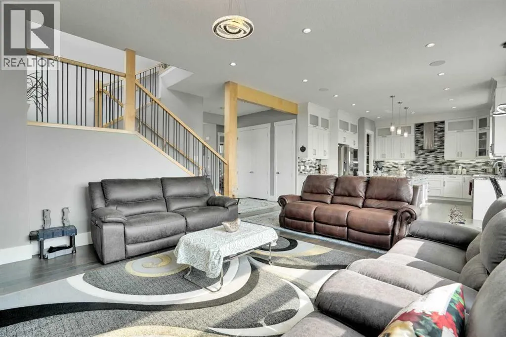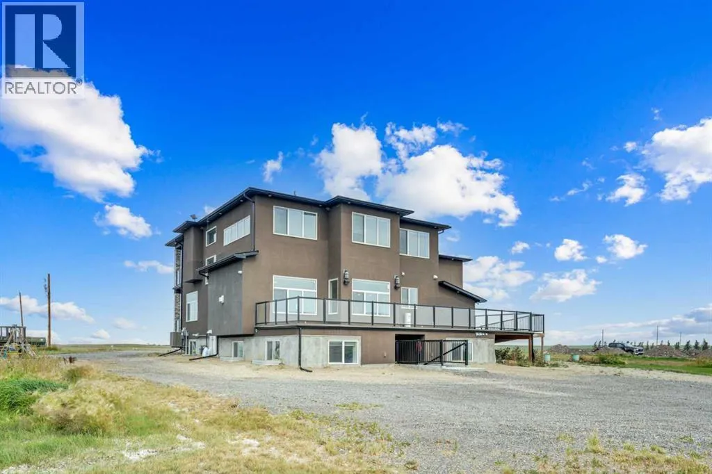 Refined Country Luxury Just Minutes from ChestermereThis 2021 custom-built estate delivers over 5,400 sq. ft. of exceptional craftsmanship across three levels on nearly 2 acres. Designed for Luxury, functionality and family living, it presents a striking two-storey exterior with terrace Balconies, dazzling stonework and an Oversized Heated Garage that accommodates 6+ vehicles. On the main level, a grand foyer opens into bright, welcoming spaces filled with large windows for Natural Light. The inviting family room features a cozy fireplace and flows into a stunning Chefâs kitchen with Granite Counters, a massive island, abundant cabinetry and a walk-in Pantry. A spacious Office that can be converted into a seventh bedroom sits next to a full bathroom, while a convenient mudroom off the garage keeps everything organized. A beautiful Deck off the kitchen â perfect for summer BBQs and entertaining. Upstairs are four generous bedroomsâeach with its own ensuite, including two with Steam Showers, walk-in closets and private Balconies. A family room, flex space and convenient laundry complete this level. The primary Ensuite is a private retreat with a lavish 5-piece ensuite (granite counters, soaker tub, steam shower) and walk-in closet. The lower level is built for versatility and entertainment with a custom Wet Bar and full Media/Theatre room with washroom. The other side houses a fully self-contained 2-bedroom Legal suite complete with kitchen, bath, laundry and private entrance, while above-grade windows flood the entire level. The basement is equipped with in-floor heating for year-round comfort.with natural light. Car enthusiasts will appreciate the Attached, Heated, and Insulated garageâapproximately 35â x 74â with high ceilings ready for a hoist, built-ins, and space for multiple vehicles. Thereâs even a dedicated hot-tub room already set up for your relaxation needs. Outdoors, the expansive grounds are ready for your visionâa sports court, pool, outdoor kitchen or entertainment area. Smart-home features include Surround Sound, exterior Puck Lights, Security Cameras, and Dual high-efficiency furnaces.Situated in Rocky View County, this estate combines peaceful country living with urban convenienceâjust 5 minutes to Chestermere and a short drive to Calgary with quick access to Hwy 1, Stoney Trail, Deerfoot Trail and Glenmore Trail. (id:27476)