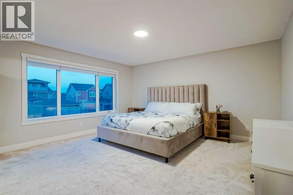 Welcome to this beautifully crafted 2022-built home in the award-winning community of Harmony, offering over 4,000 sqft of thoughtfully designed living space with luxurious finishes throughout. From the moment you walk in, youâll notice the attention to detailâlarge windows on the main floor flood the home with natural light, highlighting the elegant design of the spacious living room and dining area, perfect for family gatherings and entertaining. The main floor also features a dedicated office, ideal for working from home in peace and comfort. The heart of the home is a showstopper: a stunning kitchen with a sleek stovetop and a private spice kitchen equipped with a gas range, giving you the flexibility to cook and entertain with ease. Upstairs, youâll find a bright and open bonus room, perfect for a second lounge or kidsâ play area. The primary bedroom is a true retreat with custom-fitted closets and a spa-inspired ensuite featuring double vanities and high-end finishes. The fully developed basement offers two spacious bedrooms and has been roughed-in with all plumbing extensions in place for a future kitchen, making it an excellent option for extended family. The home also includes central air conditioning to keep you comfortable all year round. Situated in Harmony, youâll enjoy access to the lake, beach, community fire pits, beach volleyball court, skating rink, scenic pathways, parks, and an unmatched lifestyle just minutes from the city and steps from the mountains. This is more than just a homeâitâs a lifestyle. (id:27476)