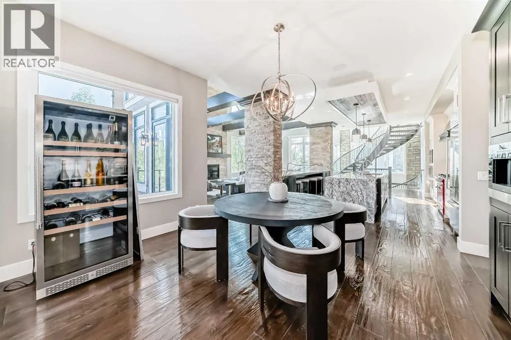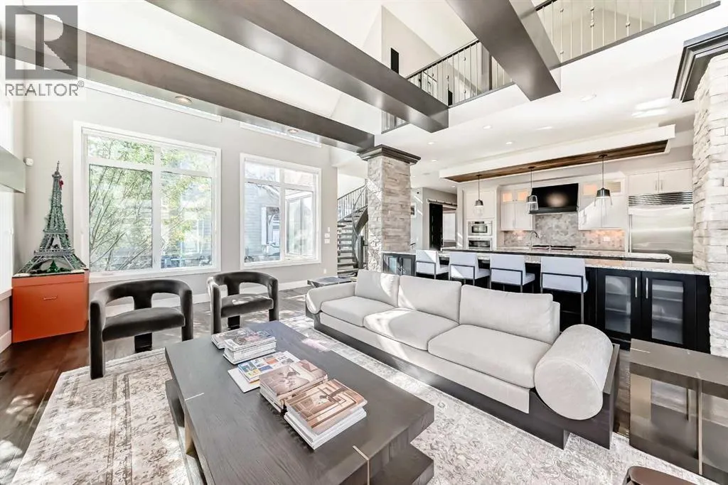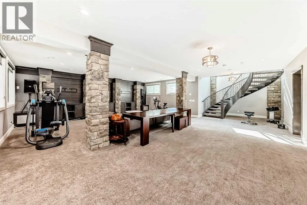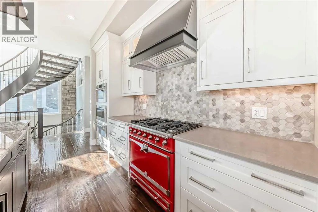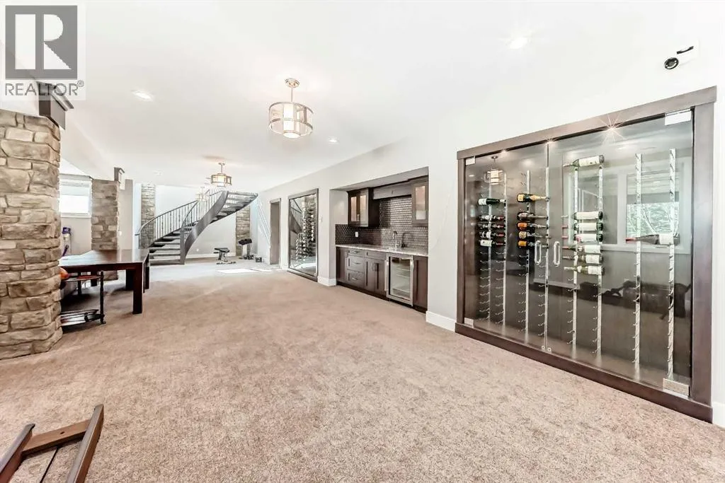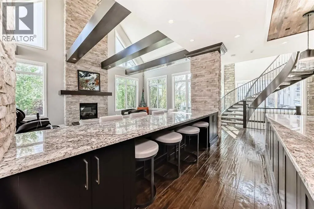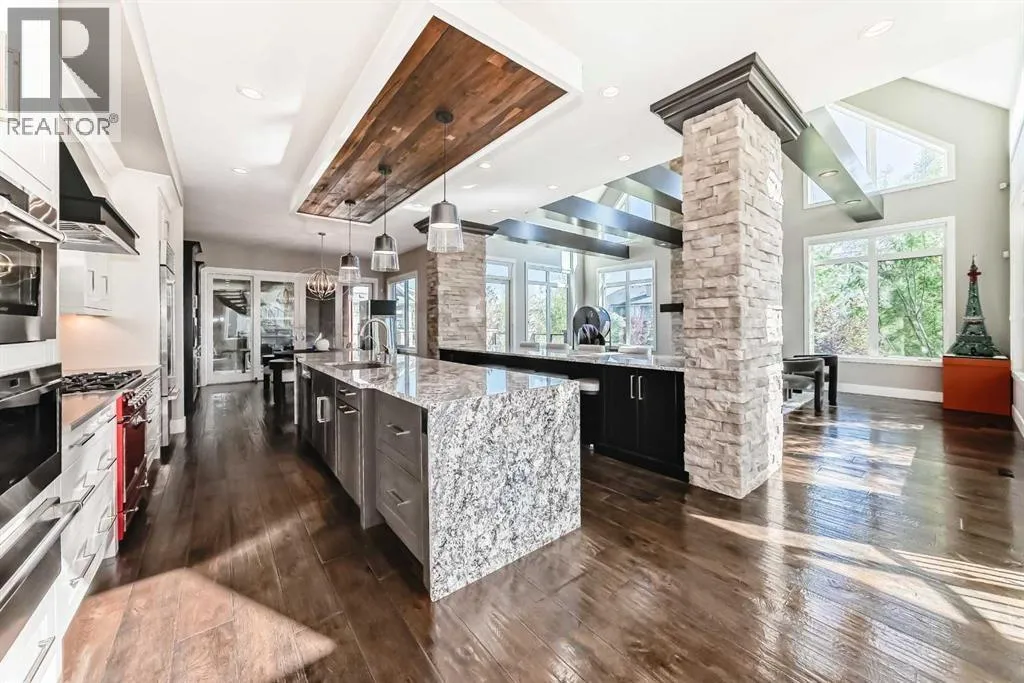 FORMER ASTORIA SHOWHOME â NATIONAL FINALIST FOR HOME OF THE YEAR! Welcome to 24 Rockwater Way in Watermark, a masterpiece by Astoria Custom Homes.Recognized as a Canadian National Finalist for Housing Excellence and a SAM Awards Finalist for Best New Home, this residence was ranked among the TOP FIVE homes in the nation.The home opens with a dramatic foyer, where wide-plank hardwood, 11-foot ceilings, and a curved open-rise staircase set the tone. Sunlight floods the space, illuminating stone-clad columns, wood-beamed ceilings, and hand-painted details. The chef-inspired kitchen featuring dual granite waterfall islands, a La Cornue range, Sub-Zero refrigeration, and a Wolf built-in coffee system. A butlerâs pantry with beverage center streamlines entertaining, while custom cabinetry, subtle lighting, and professional-grade finishes complete the space. French doors open to a covered deck with a stone-clad fireplace, extending the gathering space for year-round enjoyment. In the great room, a soaring stone fireplace anchors the design, while exposed beams draw the eye upward.Custom lighting and built-in speakers enhance the ambiance, highlighting both architecture and comfort. A private home office with barn doors and tailored built-ins offers function with style, while the bright dining nookâframed by designer finishesâcreates an inviting space for everyday living. Upstairs, the primary suite is a private sanctuary with vaulted ceilings, a fireplace, and a hidden walk-in closet. The spa-inspired ensuite offers heated tile floors, a glass shower, private water closet, and a soaking tub designed for pure serenity. A second guest suite with ensuite, two additional bedrooms with a shared full bath, and a loft overlooking the great room provide space for family and guests. A full laundry room with custom cabinetry adds convenience.The walkout basement is designed for both relaxation and entertaining.Highlights include a rec/theatre room with stone-clad built-ins, wet bar, and wine display; a fifth bedroom with full bath for guests; and walkout access to a covered patio prepped for a hot tub with gas fire bowl rough-in. The triple-attached heated garage features epoxy floors, slab heating, and custom storageâcombining function with refined elegance.Over $40,000 in thoughtful upgrades make this home move-in ready, including a 2024 Bosch dishwasher, radon mitigation system, landscaping with new trees, mulch, and driveway sealing, patio improvements with a new staircase and screened patio, and custom window blinds, among other refinements. Watermark at Bearspaw delivers tranquility, privacy, and prestige. Architectural controls preserve timeless beauty, and the absence of commercial development ensures peace and exclusivity. Residents enjoy a central plaza with gazebo and outdoor fire pit, soccer field, reflection pond, BBQ facilities, landscaped parks, NBA-sized sports court and 5 km of paved trails. Book your private showing today and Welcome Home! (id:27476)