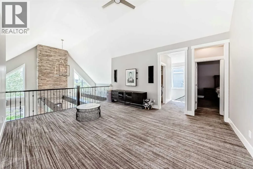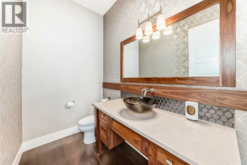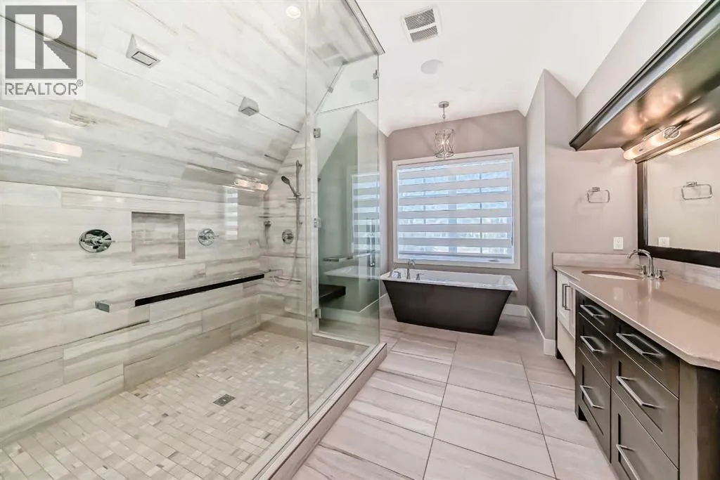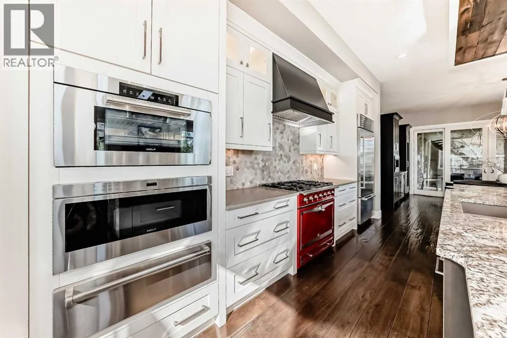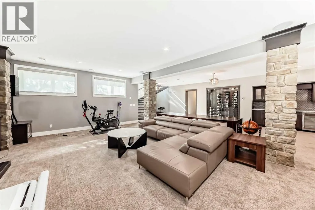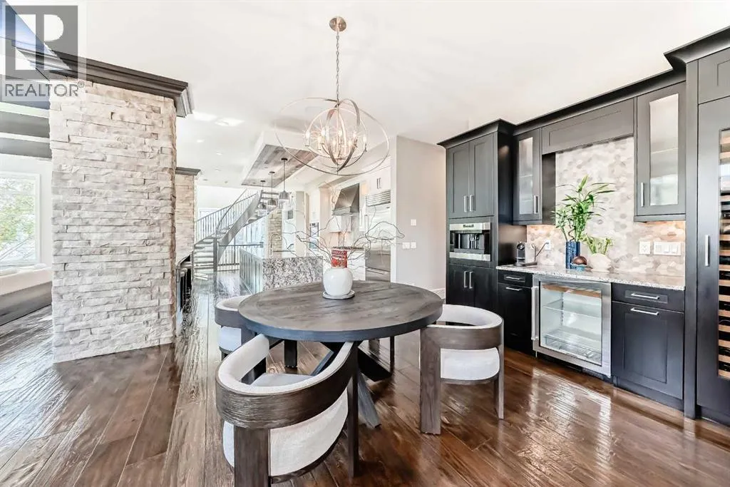 FORMER ASTORIA SHOWHOME â NATIONAL FINALIST FOR HOME OF THE YEAR! Welcome to 24 Rockwater Way in Watermark, a masterpiece by Astoria Custom Homes.Recognized as a Canadian National Finalist for Housing Excellence and a SAM Awards Finalist for Best New Home, this residence was ranked among the TOP FIVE homes in the nation.The home opens with a dramatic foyer, where wide-plank hardwood, 11-foot ceilings, and a curved open-rise staircase set the tone. Sunlight floods the space, illuminating stone-clad columns, wood-beamed ceilings, and hand-painted details. The chef-inspired kitchen featuring dual granite waterfall islands, a La Cornue range, Sub-Zero refrigeration, and a Wolf built-in coffee system. A butlerâs pantry with beverage center streamlines entertaining, while custom cabinetry, subtle lighting, and professional-grade finishes complete the space. French doors open to a covered deck with a stone-clad fireplace, extending the gathering space for year-round enjoyment. In the great room, a soaring stone fireplace anchors the design, while exposed beams draw the eye upward.Custom lighting and built-in speakers enhance the ambiance, highlighting both architecture and comfort. A private home office with barn doors and tailored built-ins offers function with style, while the bright dining nookâframed by designer finishesâcreates an inviting space for everyday living. Upstairs, the primary suite is a private sanctuary with vaulted ceilings, a fireplace, and a hidden walk-in closet. The spa-inspired ensuite offers heated tile floors, a glass shower, private water closet, and a soaking tub designed for pure serenity. A second guest suite with ensuite, two additional bedrooms with a shared full bath, and a loft overlooking the great room provide space for family and guests. A full laundry room with custom cabinetry adds convenience.The walkout basement is designed for both relaxation and entertaining.Highlights include a rec/theatre room with stone-clad built-ins, wet bar, and wine display; a fifth bedroom with full bath for guests; and walkout access to a covered patio prepped for a hot tub with gas fire bowl rough-in. The triple-attached heated garage features epoxy floors, slab heating, and custom storageâcombining function with refined elegance.Over $40,000 in thoughtful upgrades make this home move-in ready, including a 2024 Bosch dishwasher, radon mitigation system, landscaping with new trees, mulch, and driveway sealing, patio improvements with a new staircase and screened patio, and custom window blinds, among other refinements. Watermark at Bearspaw delivers tranquility, privacy, and prestige. Architectural controls preserve timeless beauty, and the absence of commercial development ensures peace and exclusivity. Residents enjoy a central plaza with gazebo and outdoor fire pit, soccer field, reflection pond, BBQ facilities, landscaped parks, NBA-sized sports court and 5 km of paved trails. Book your private showing today and Welcome Home! (id:27476)