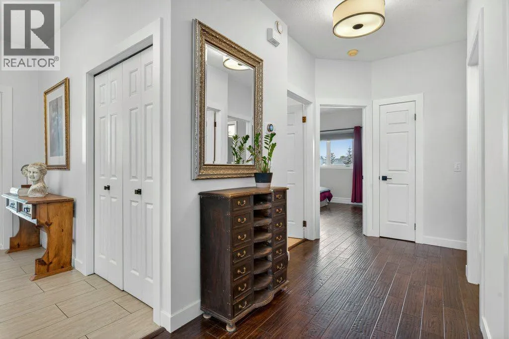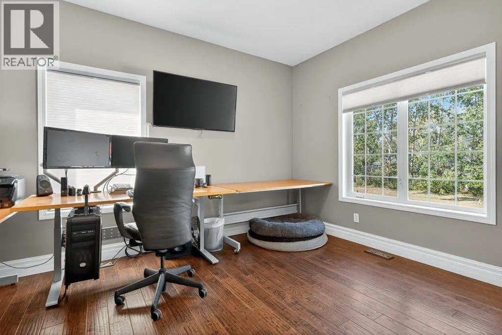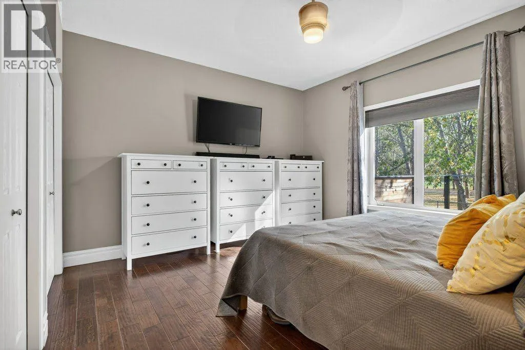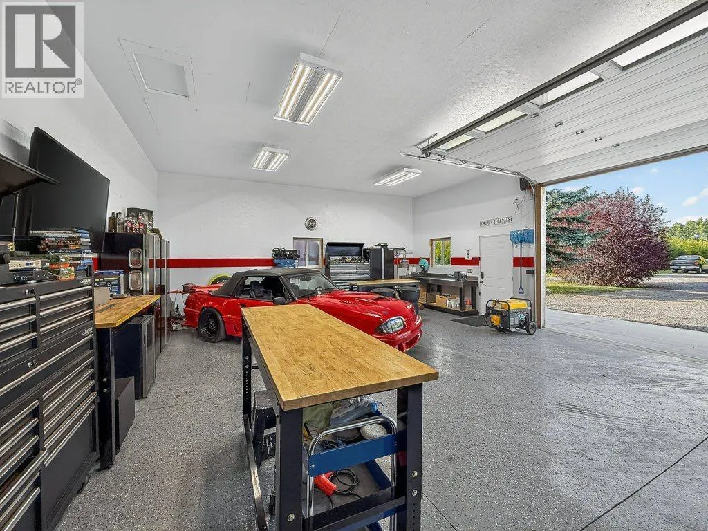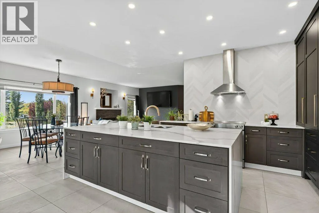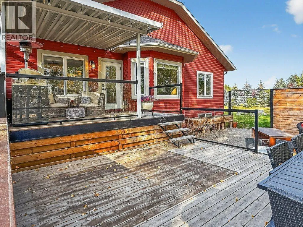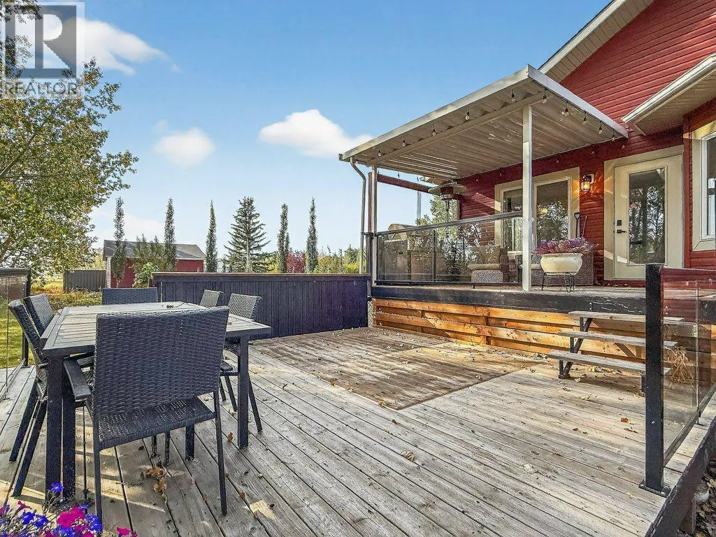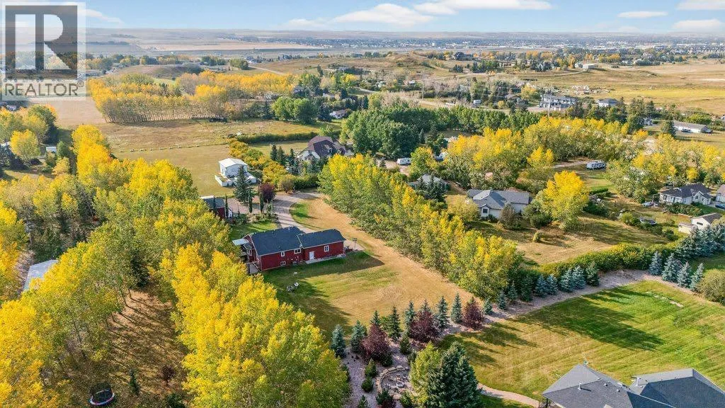 Welcome to this well-appointed acreage property set on just over two acres in Rocky View County. This big bungalow offers a thoughtful blend of comfort, function, and style, along with the conveniences of modern upgrades and reliable utilities.The main floor spans over 1,700 square feet, finished with warm, rough-hewn wood floors and anchored by a fully renovated kitchen. Here youâll find custom cabinetry with Häfele and Blum hardware, quartz countertops, high-end stainless steel appliances, a contemporary hood vent, and a chevron tile backsplash that adds a clean, modern touch. Just off the kitchen is a spacious living room with a gas fireplace and the huge windows in the dining area flood this space with natural light. A tiled, open entryway creates an inviting first impression, while a large office located near the front door makes working from home convenient.The primary suite is generously sized, offering a private retreat with a five-piece ensuite. A large second bedroom, four piece bathroom and laundry room round out the main floor. Two additional bedrooms and a bathroom on the lower level complete the homeâs total of four bedrooms and three full baths, with a fully finished basement that expands the living space and includes a second gas fireplace for cozy evenings.Practical features are well covered: central air conditioning, a septic system with tank and field, and water service through the Rocky View Water Co-operativeâno well maintenance required. Car enthusiasts and hobbyists will appreciate the triple heated garage, equipped with 240 wiring, water service, mezzanine storage, and a four-post vehicle lift. In addition there's an over-height, 800 square foot, heated shop with epoxy floors and 240 wiring offering space for all kinds of hobbies.Outdoor living is easy here, with a multi-level deck that is partially covered and finished with glass rails, as well as an exposed aggregate patio. The yard is nicely landscaped with trees that provide both shade and privacy, creating a space that feels quiet and settled. With a balance of modern finishes, solid infrastructure, and room to enjoy both inside and out, this property is a comfortable place to call home in a sought-after area of Rocky View County. (id:27476)