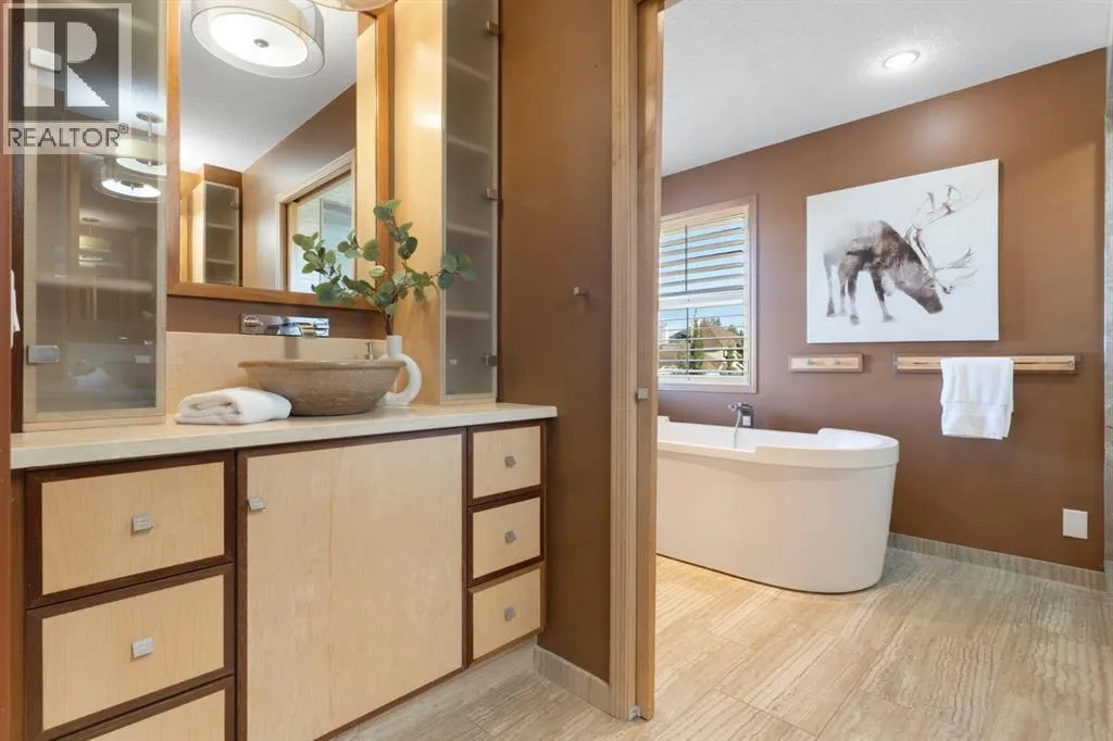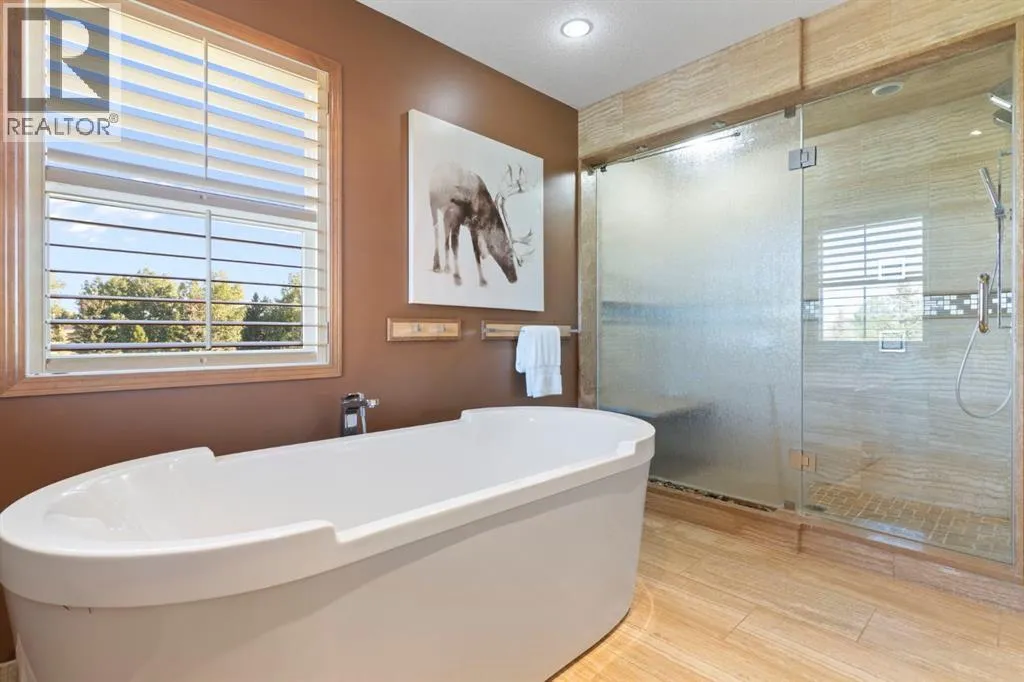 Walking distance to Bearspaw School, 5 min outside Calgary city limits, grocery, gas, Tim Horton's and local fine dining restaurant Flores and Pine, welcome to 30070 Township Rd 254! A rare find due to its very close proximity to Bearspaw School, Bearspaw Lifestyle Centre and the upcoming Three Sister's Centre. This 3,938 sq ft walkout 2-storey home isTURN KEY for your family's needs. The main floor design successfully encompasses modern aesthetic and family functionality; it includes the dining room next to the kitchen, a 3-way fireplace, a flex room that very easily could be a playroom, an office with French doors for quiet and privacy, a bright modern kitchen, the laundry room equipped with counter space and cabinetry up and down, and a 2pc bathroom. The upper level design speaks to making new family memories with the unique placement of an upper level family room (flex room) with fireplace. The primary bedroom is a peaceful retreat with its MOUNTAIN views, luxurious ensuite with high end finishes and features, and spacious walk-in closet. The fully finished basement walks out to a covered deck area with integrated power and lighting, pergola, and fire pit for 4-season outdoor enjoyment. Recent upgrades include two new furnaces, two hot water heaters, humidifier, and a heat-recovery ventilator, two new toilets (2023), newer washer and dryer, new window coverings throughout, new hood fan (2023), new garage door openers added in 2024. The triple car garage, ample parking on the driveway, and beautiful LOW MAINTENANCE landscaped grounds are perfect for busy households. This residence offers a rare blend of privacy and accessibility. (id:27476)