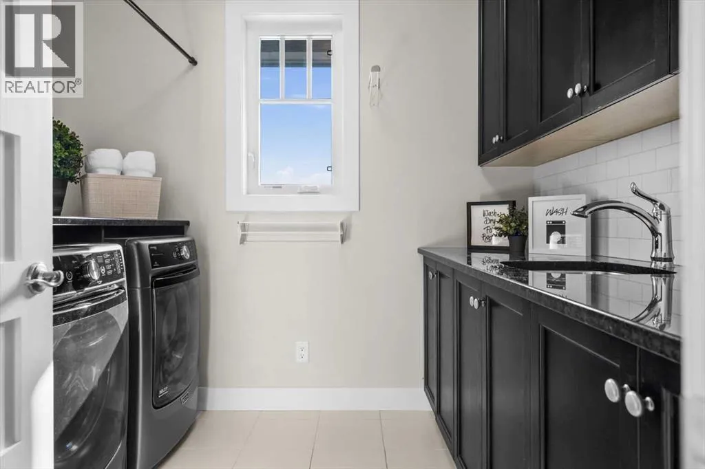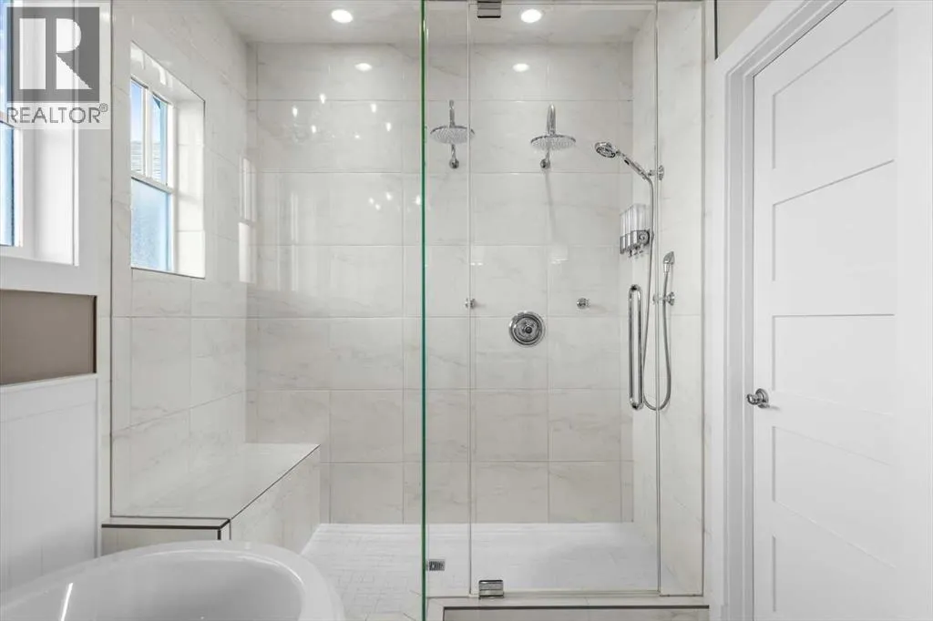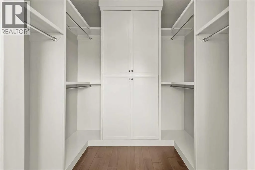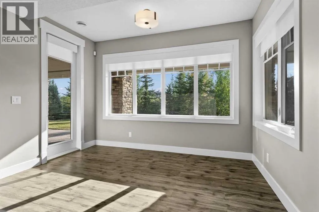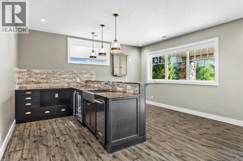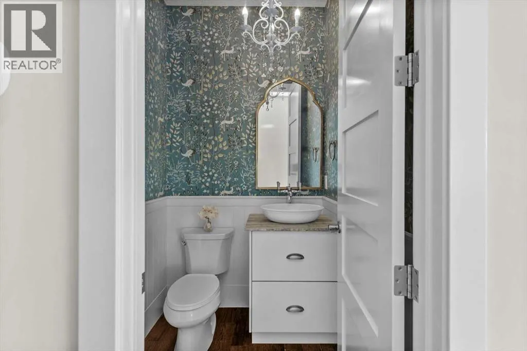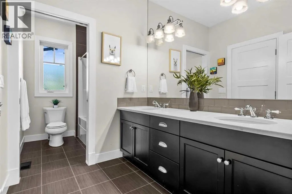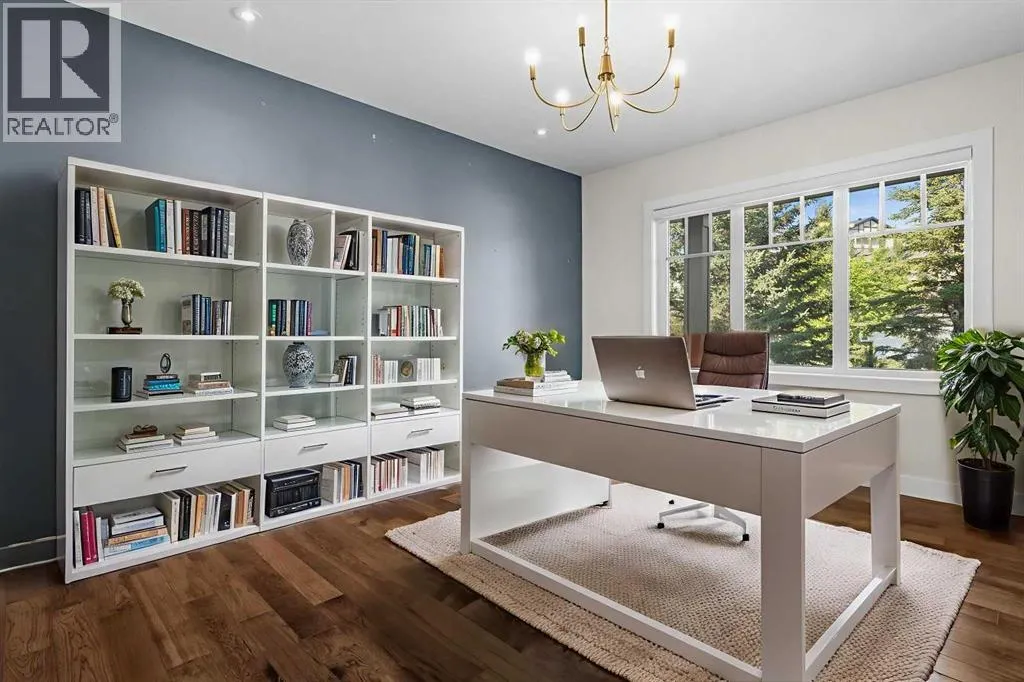 Set in one of Watermark's most coveted locations, a quiet cul-de-sac backing southwest onto green space with tranquil pond and stunning Rocky Mountain views, this custom built two-storey walkout by Wolf Custom Homes offers over 4500sqft of thoughtfully designed living space. Entering the home you are immediately captivated by the millwork on the artisanal curved wood staircase, the natural light streaming throughout the home and the serenity of the stunning views. The main floor is ideal for family connection and entertaining featuring an expansive great room with focal gas fireplace and custom cabinetry, a spacious dining area, and a chef-inspired kitchen with Calcutta Marble quartz countertops, premium JennAir appliances, and walk-through butlerâs pantry with exceptional storage. An expansive southwest deck off the kitchen and dining area is perfect for weekend BBQâs, outdoor dining or simply relaxing in the sunshine. Working from home is easy with the private office with double french doors on the main floor, while the large mudroom with custom built-ins keeps family life organized. On the upper level hardwood floors lead to four generous bedrooms and three full bathrooms, including a luxurious primary suite with vaulted ceilings, spectacular mountain views, a walk-in dressing room with custom cabinetry, and a spa-inspired ensuite featuring heated floors, dual vanities, a deep soaker tub, and a 10mm glass shower with dual rain heads. Two of the upper bedrooms share a Jack & Jill bathroom, and the fourth has its own private bathâideal for teens or guests. A large laundry room on the upper level adds everyday convenience. The walkout lower level features in-slab heating and is perfect for movie nights or entertaining with the spacious family room and wet bar. Additionally on the lower level is a fifth bedroom that can double as a gym or second home office, a full bathroom, and plentiful storage. The private backyard continues the theme of exceptional living wi th professional landscaping, mature trees, fire pit conversation area, discreetly positioned hot tub, irrigation system and an abundance of space to play and entertain. Not to be missed is the finished oversized triple garage with polyaspartic flooring, slat walls, extensive built-in storage and EV charger. Recent updates to the home include servicing of furnaces, hot water tank, and A/C units; new light fixtures above island and in dining area, new wine fridge and icemaker in wet bar, hot tub, polyaspartic flooring and shelves in garage, mirrored wall in 5th bedroom, re-tiled shower base in ensuite, and addition of childrenâs play space under the stairs. Awarded Canadaâs Community of the Year multiple times, Watermark features over 5km of paved trails, a network of cascading ponds and streams, community playgrounds and a Central Plaza. Exceptional access to several golf courses, the Rocky Mountains, Stoney Trail and downtown Calgary. (id:27476)