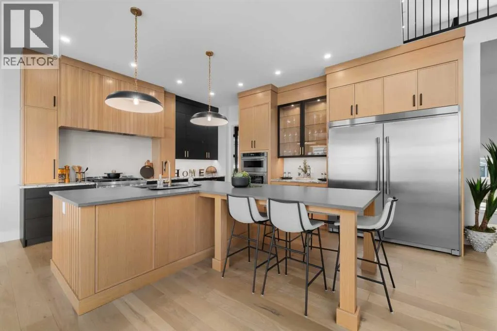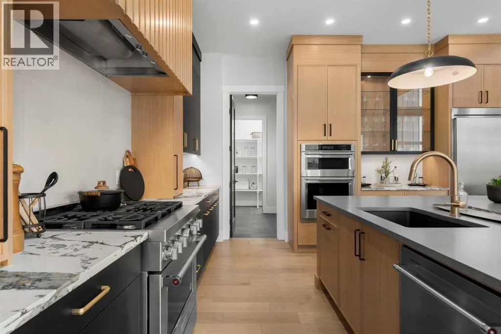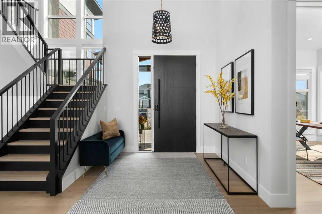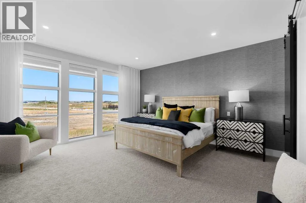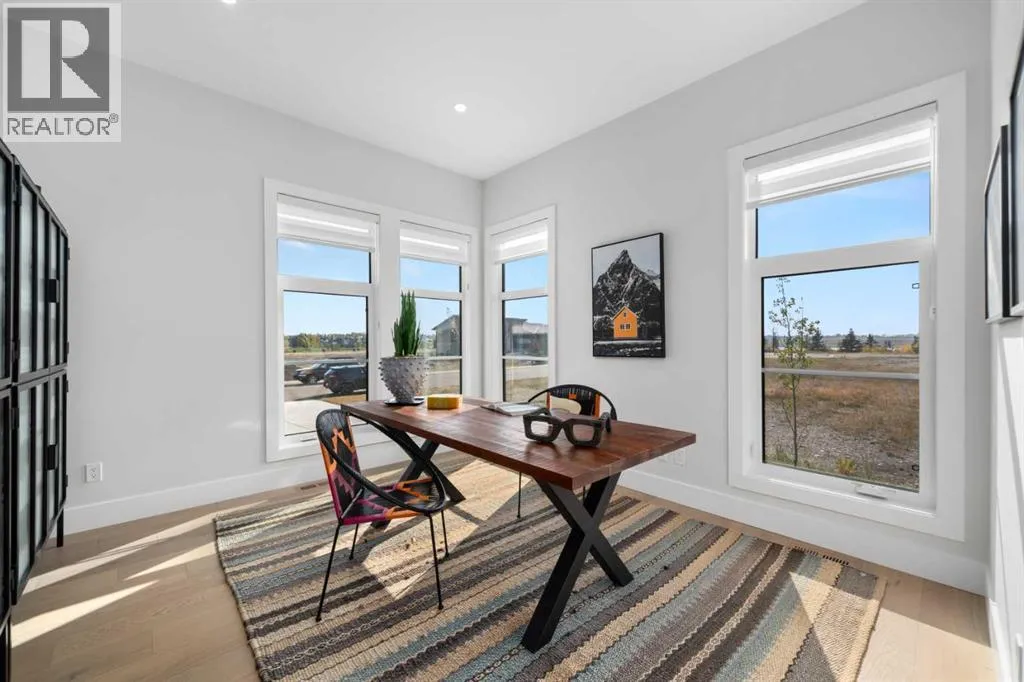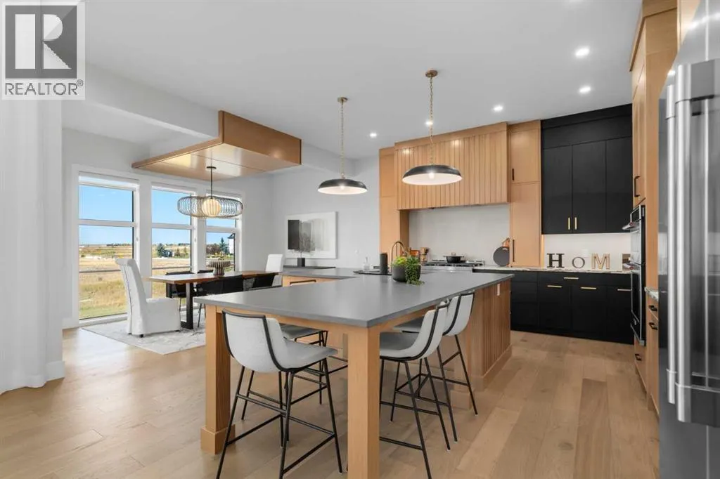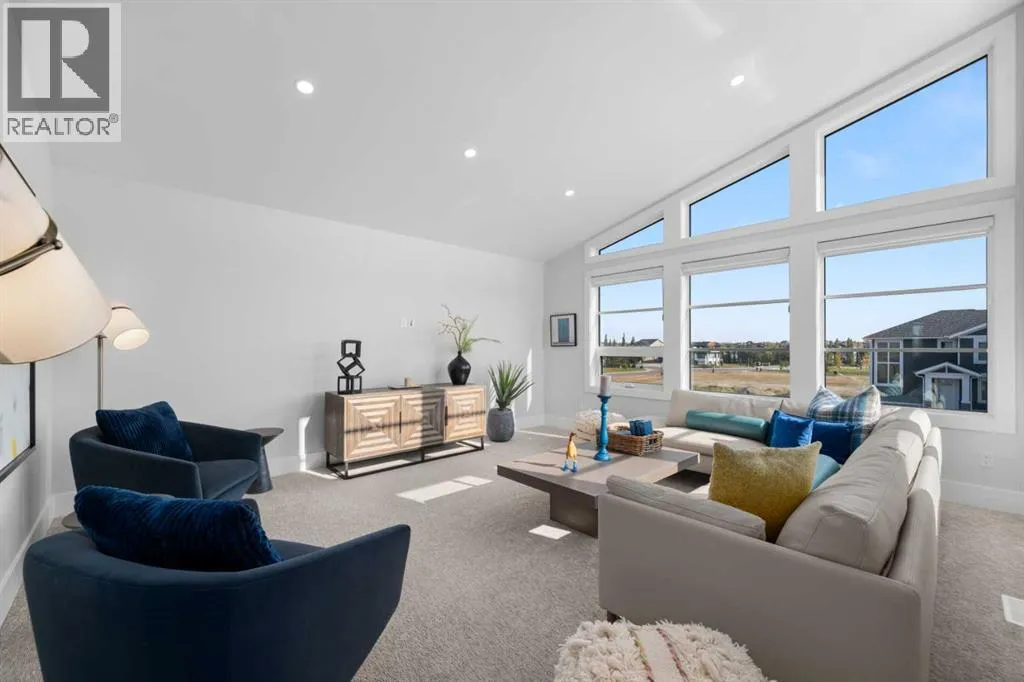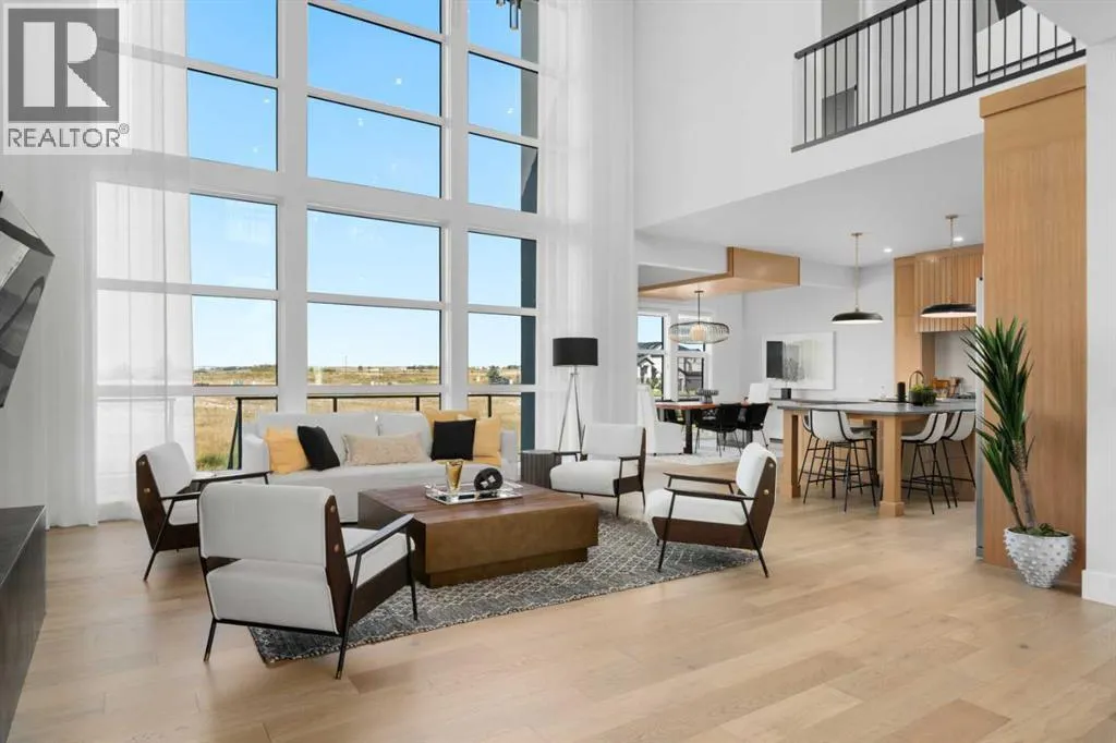 Welcome to the âAuroraâ Showhome, Â a masterpiece by award-winning builder Cornerstone Luxury Homes (now offered with a finished basement). Thoughtfully designed with intention and purpose, this home strikes the perfect balance of elegance and comfort in the welcoming, family-friendly community of Monterra on Cochrane Lakes, just minutes from the town of Cochrane. Set on a 0.28-acre lot, this stunning two-storey offers over 4,900 sq. ft of refined living space, 5 bedrooms, 4 bathrooms and a triple car garage. A striking mezzanine bridge and expansive windows showcase breathtaking views, while the open-concept main floor creates an ideal flow for family living and entertaining. The great room impresses with soaring vaulted ceilings and a sleek linear gas fireplace. The chef-inspired kitchen features a large center island, custom cabinetry, premium appliances, and an impressive butlerâs pantry. Completing the main level are a dedicated office/study, spacious dining area, oversized mudroom, and elegant 2-piece powder room. Step outside to the expansive wrap-around deck, perfect for al fresco dining and unforgettable sunsets. Upstairs, the primary retreat is a serene escape, offering space for a king-sized bed, a spa-inspired 5-piece ensuite, and a custom walk-in closet. Two additional bedrooms, a 5-piece bath, and a light-filled bonus room provide ample space for family and guests.The fully developed basement expands your living space with a bedroom, a wine bar, a comfortable recreation room, and a gym that could also be used as a bedroom ensuring the home is truly move-in ready (basement development is in progress). The oversized, heated three-car garage with epoxy floors easily accommodates vehicles, storage, and recreational gear. Monterra offers an exceptional lifestyle, with tranquil lakes, scenic pathways, and generous lots, while keeping you close to the charm of Cochrane and the convenience of Calgary. Available as a leaseback. Book your private showing today or visit the showhome during open hours to learn all that Monterra has to offer. Showhome Hours: MonâThurs 2:00â8:00 | Sat & Sun 12:00â5:00. (id:27476)
