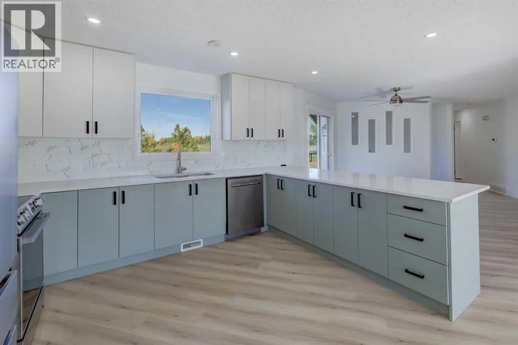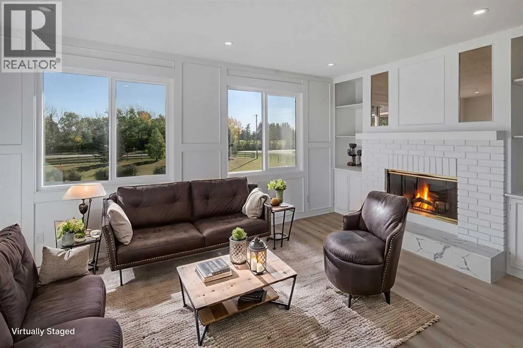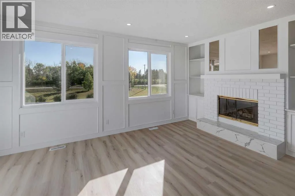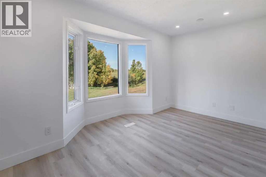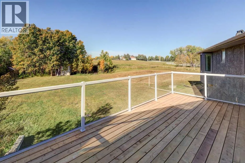 Welcome to this beautifully renovated family home perched on 5 acres in a prime Bearspaw locationâoffering incredible value, long-term potential, and stunning mountain views. Whether youâre a growing family seeking room to roam, a multigenerational household needing flexibility, or an investor eyeing future development, this property is full of opportunity. The home now boasts a complete top-to-bottom renovation, blending modern finishes with a functional layout. Enjoy over 3,700 square feet of total living space with 6 generously sized bedroomsâ3 on the main floor and 3 more in the fully finished walkout basement. The brand-new kitchen features contemporary cabinetry, quartz counters, and stainless steel appliances, while all bathrooms have been fully redone with fresh, modern design. A formal dining room and a bright west-facing deck make entertaining effortless. High-end upgrades include scratch- and waterproof luxury vinyl plank flooring, freshly painted interiors, brand-new light fixtures with LED pot lights throughout, and upgraded 5.5-inch baseboards on both levels. Many new windows have been installed at the front of the home, flooding the living spaces with natural light, while the stucco exterior has been freshly painted for a crisp, updated look. The triple attached garage and driveway were recently repaired and resealed for years of durability. Even the plumbing has been fully replaced to meet current code, giving peace of mind for the future. The expansive walkout basement offers a custom oak bar, built-in entertainment centre, large family room, spacious office, hobby room, dedicated laundry, and walkout access to a covered patio. Outside, the acreage provides ample space for RVs, outbuildings, or even a hobby farm with horses. While the home is now fully refreshed and move-in ready, the true value lies in the land. (id:27476)