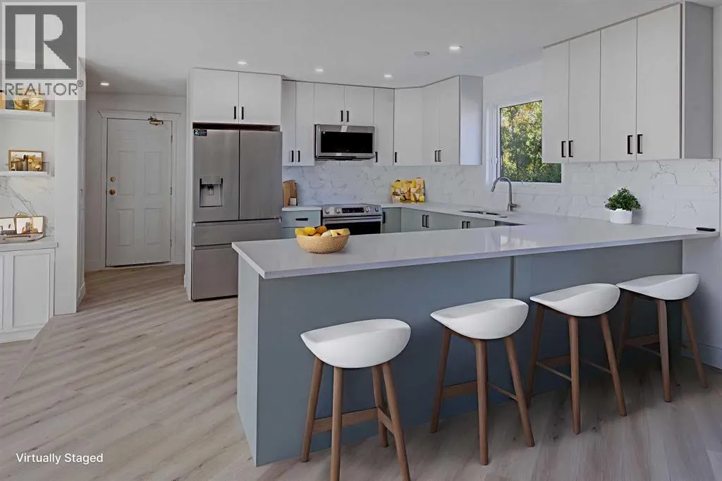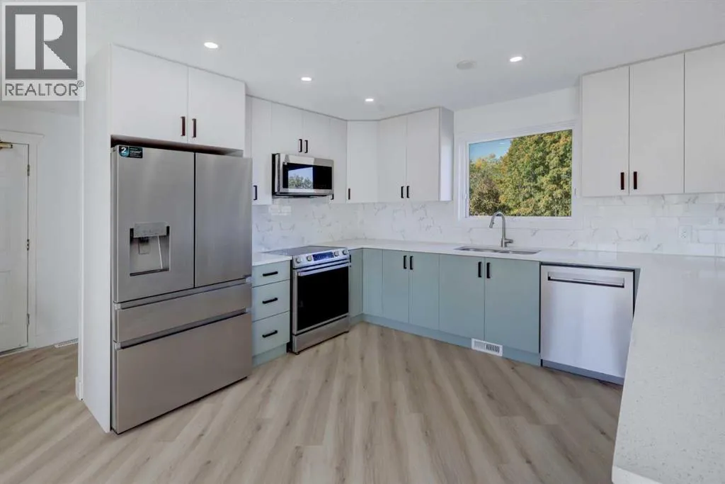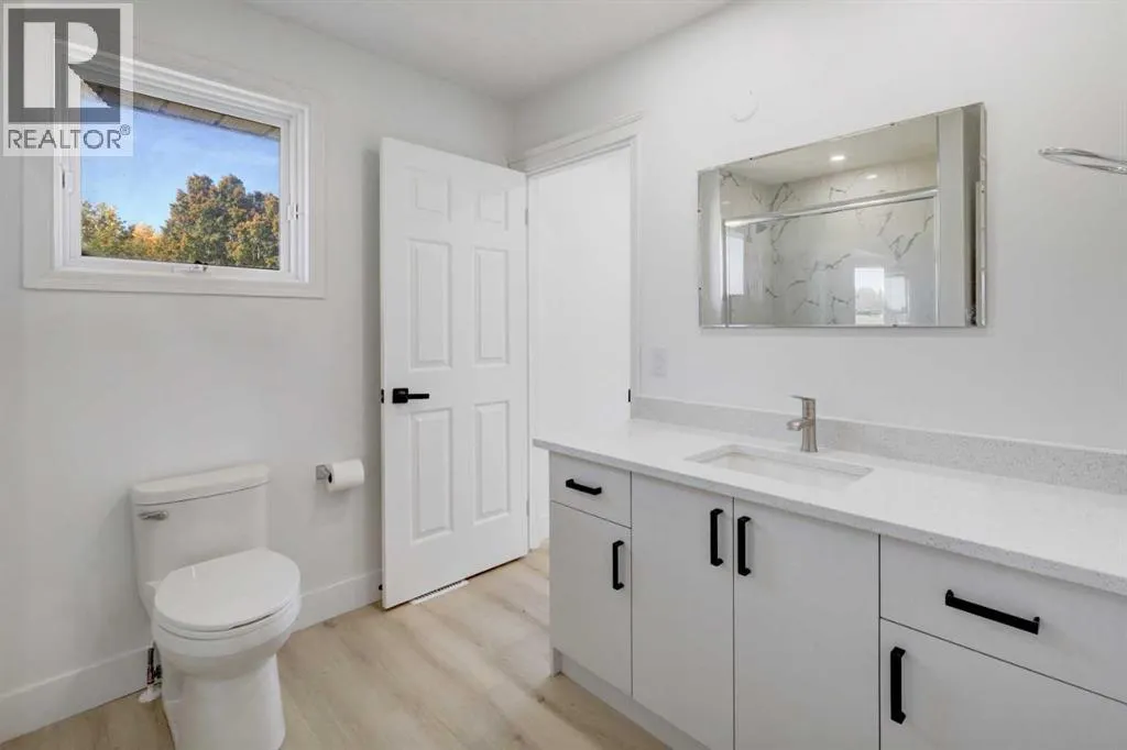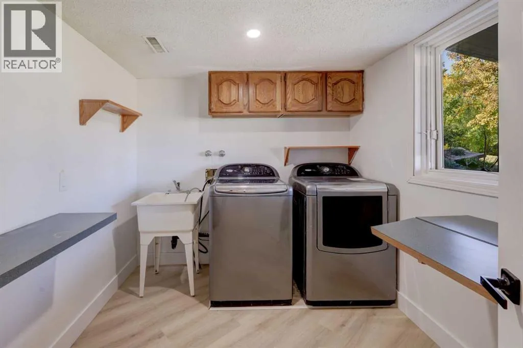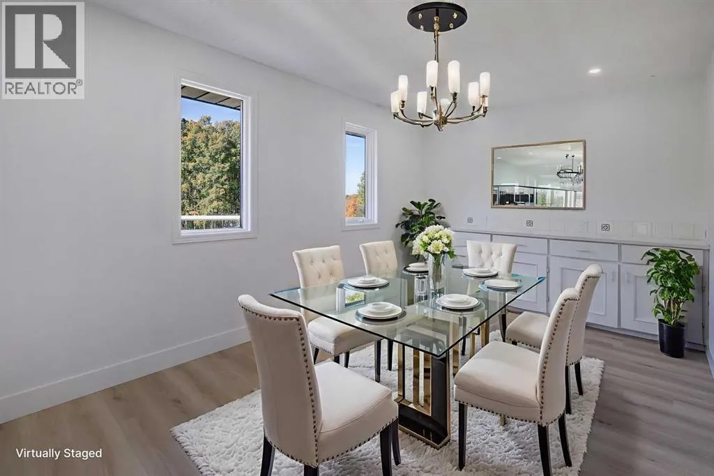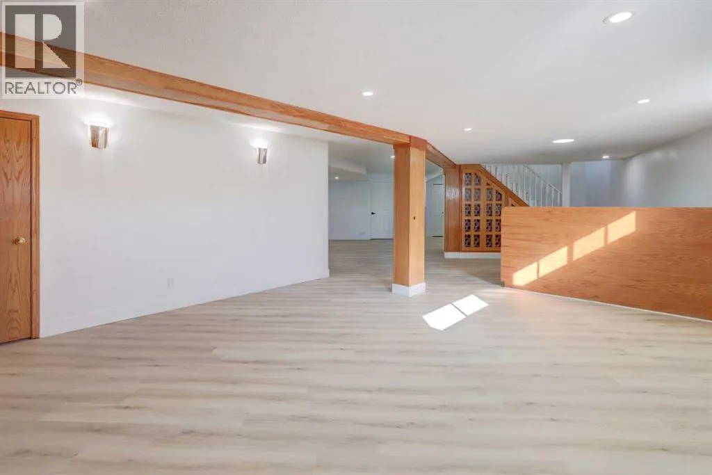Welcome to this beautifully renovated family home perched on 5 acres in a prime Bearspaw locationâoffering incredible value, long-term potential, and stunning mountain views. Whether youâre a growing family seeking room to roam, a multigenerational household needing flexibility, or an investor eyeing future development, this property is full of opportunity. The home now boasts a complete top-to-bottom renovation, blending modern finishes with a functional layout. Enjoy over 3,700 square feet of total living space with 6 generously sized bedroomsâ3 on the main floor and 3 more in the fully finished walkout basement. The brand-new kitchen features contemporary cabinetry, quartz counters, and stainless steel appliances, while all bathrooms have been fully redone with fresh, modern design. A formal dining room and a bright west-facing deck make entertaining effortless. High-end upgrades include scratch- and waterproof luxury vinyl plank flooring, freshly painted interiors, brand-new light fixtures with LED pot lights throughout, and upgraded 5.5-inch baseboards on both levels. Many new windows have been installed at the front of the home, flooding the living spaces with natural light, while the stucco exterior has been freshly painted for a crisp, updated look. The triple attached garage and driveway were recently repaired and resealed for years of durability. Even the plumbing has been fully replaced to meet current code, giving peace of mind for the future. The expansive walkout basement offers a custom oak bar, built-in entertainment centre, large family room, spacious office, hobby room, dedicated laundry, and walkout access to a covered patio. Outside, the acreage provides ample space for RVs, outbuildings, or even a hobby farm with horses. While the home is now fully refreshed and move-in ready, the true value lies in the land. (id:27476)