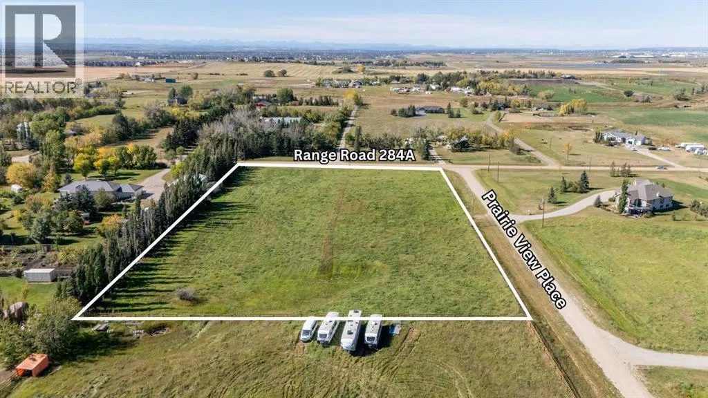 ** Welcome to Your FUTURE DREAM HOMESITE ** This Stunning 3.63-ACRE CORNER LOT is perfectly positioned Just Outside Calgary city limitsâoffering the Best of Both Worlds: PEACEFUL COUNTRY LIVING with the CONVENIENCE OF CITY ACCESS only 10 Minutes Away. Set in a Quiet Cul-De-Sac among Elegant Estate Homes, this Parcel offers PANORAMIC VIEWS of the City Skyline and the Rocky Mountains. A DRILLED WELL is already in place, and POWER, GAS, AND TELEPHONE SERVICES are at the property lineâmaking it READY FOR YOUR CUSTOM BUILD. Thereâs Abundant Room for an Accessory Building or Shop, giving you Flexibility to Create the Lifestyle youâve been dreaming of. Whether you envision a Modern Abode or a Serene Retreat, this Lot is Your BEAUTIFUL BLANK CANVAS. With the TRANQUILITY of Rural Life and NEARBY MULTIPLE AMENITIES in Mahogany, McKenzie Towne, and more⦠Youâre Perfectly ConnectedâYet Perfectly Tucked Away. ** Excited?? The Wait is Over and The Opportunity is YOURS -- Schedule your Viewing Appointment Today! ** ....... DIRECTIONS: Beginning in SE Calgary on Stoney Trail -- Exit onto Hwy 22X heading East, then Turn Left onto 104 Street SE (heading North), then Turn Right onto 146 Ave SE (heading East), then Turn Left onto Range Road 284A (heading North), then Turn Right onto Prairie View Place. The Land Lot is located on your Immediate Right after turning onto Prairie View Place (at the Corner of Prairie View Place and Range Road 284A). (id:27476)