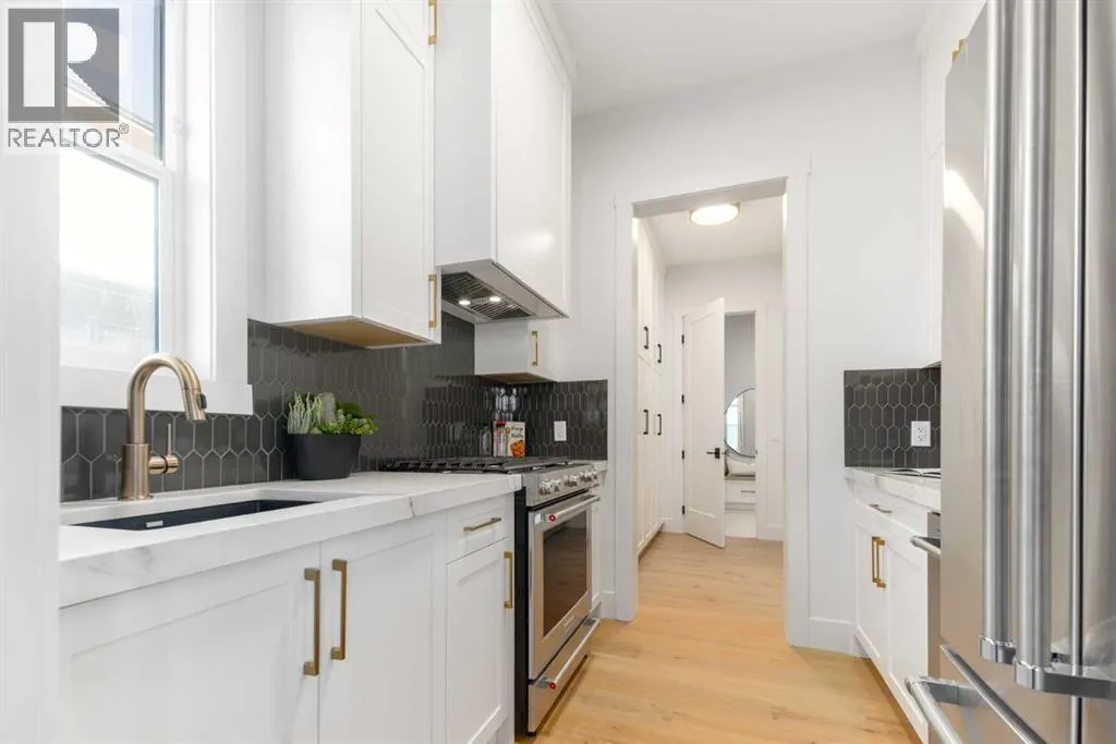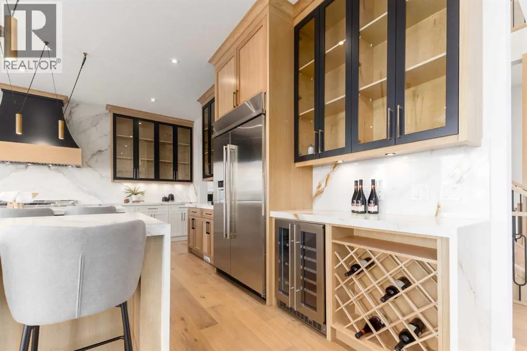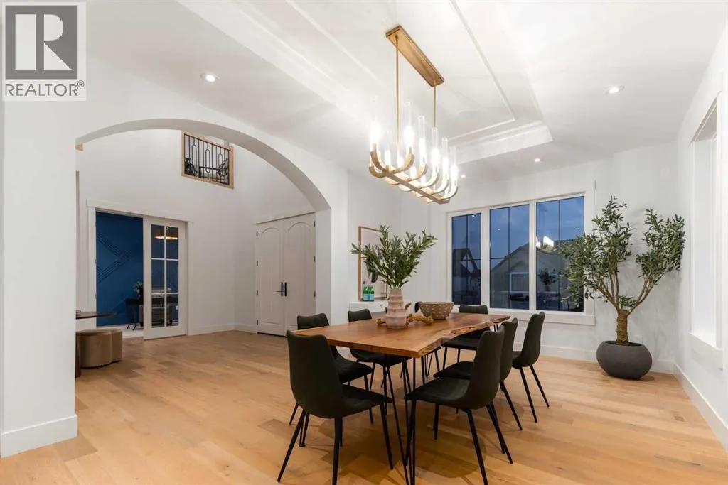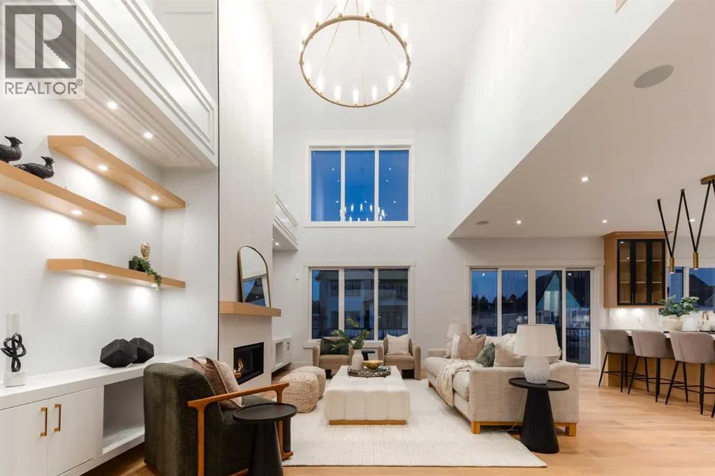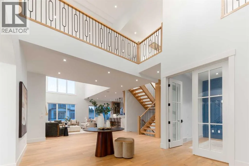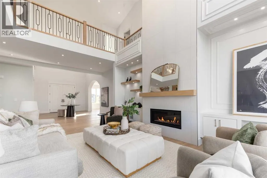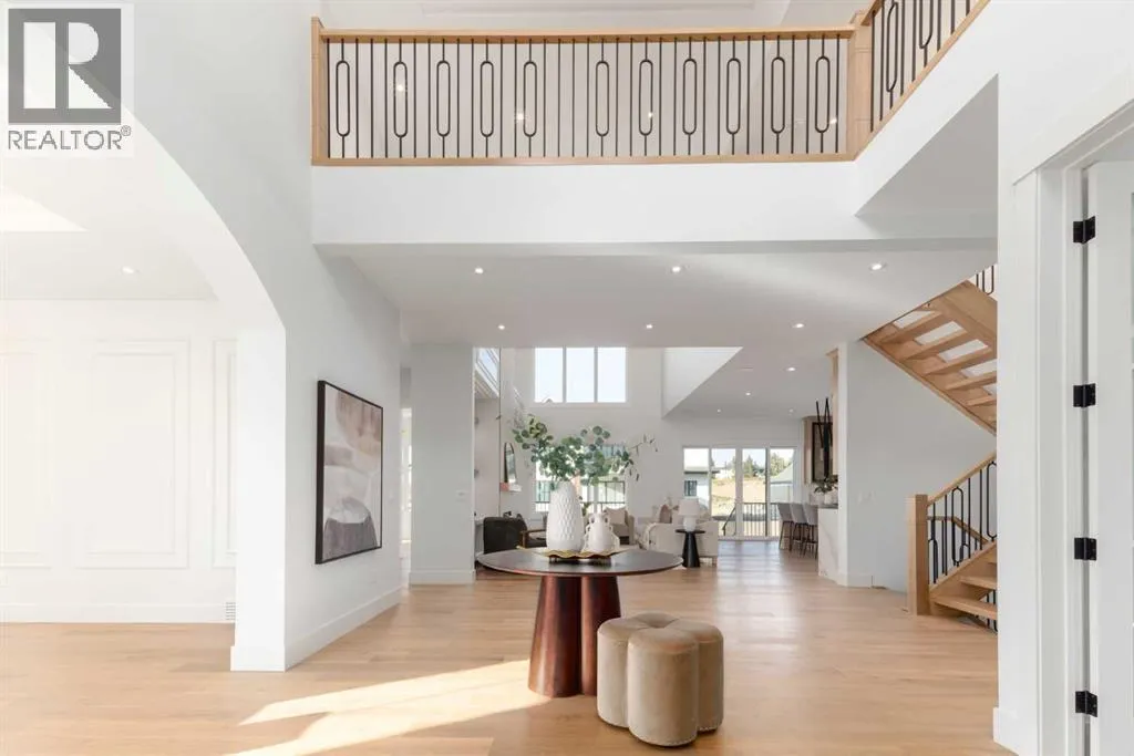 Discover the epitome of luxury living at 200 Pondside Place, an extraordinary 7-bedroom, 6.5-bath estate in the prestigious community of Watermark at Bearspaw. Designed with families in mind, this home combines architectural elegance with modern functionality across nearly 6,800 sq ft of developed space. A striking façade of smooth stucco, black wood accents, and stone detailing sets the tone, while a four-car garage and exposed aggregate driveway provide both practicality and curb appeal. Inside, soaring ceilings, wide-plank oak floors, and expansive windows create a light-filled atmosphere that is as welcoming as it is refined. The gourmet chefâs kitchen is a true showpiece, featuring dual waterfall quartz islands, professional-grade Jenn-Air appliances, integrated wine storage, and a fully equipped spice/prep kitchen. The adjoining great room showcases a soaring fireplace wall and custom built-ins, perfect for both family gatherings and elegant entertaining. Formal dining is elevated with a glass-encased wine display and coffered ceiling, while a private main-floor office, guest suite, and stylish powder room add everyday convenience.Upstairs, the primary suite is a serene retreat with a boutique-style walk-in closet, spa-inspired ensuite with soaking tub and rainfall shower, and space for private lounging. Three additional bedrooms each feature their own ensuite and walk-in closet, while a flex loft/media space and a fully outfitted laundry room complete the level. The lower level is designed for recreation and relaxation, offering a spacious rec room with wet bar, fitness studio, plush theater room, and two additional bedrooms. Radiant in-floor heating throughout ensures year-round comfort. Set on a beautifully landscaped 0.28-acre lot, this home includes speaker zones, gas BBQ hookup, and smart-home rough-ins for modern living. Beyond the property, Watermark is one of Calgaryâs most sought-after family communities, renowned for its strong sense of community, scenic pathways, and access to top schools and amenities. With nearby shopping, dining, recreation centers, and a quick drive into the city, it is the perfect balance of tranquility and convenience. (id:27476)