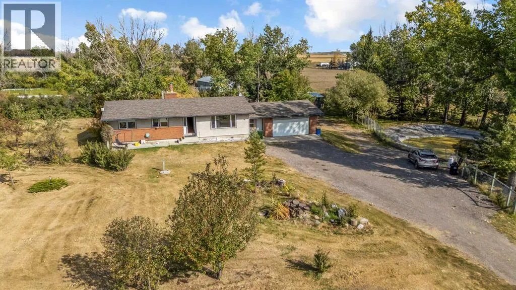 Discover the perfect blend of country charm and city convenience with this incredible 19.4-acre property, located just 10 minutes from Calgary and offering over 3,000 sq. ft. of developed living space ,With quick access to Highway 791, Glenmore Trail, and Stoney Trail, commuting is effortless while still enjoying the peace and privacy of rural living. This warm and inviting bungalow features 3 spacious bedrooms, 2.5 bathrooms, a bright living room with a picture window, and a cozy wood-burning fireplace in the breakfast nook. The kitchen and dining area are perfectly positioned for family meals and entertaining. The fully finished basement offer you a huge living area , a bedroom , a bar and a full bath for your extended family. All surrounded by beautiful views and mature trees offering natural privacy. 19.4 acres of versatile land with the potential to subdivide into 4 or more lots (application already submitted to Rocky View County) Comparable adjacent 4-acre lots listed at $600Kâsignificant investment upside. Beautifully treed and landscaped grounds with an expansive lawn and huge vegetable garden Irrigation system, dugout water source, and option to stay in the local Water Co-Op. Standpipes for water (as-is) near the shed and livestock area . 32' x 34' heated workshopâperfect for hobbies, storage, or small business use , 24' x 10' temporary wood shed, Two 12' x 8' tin sheds for additional storage, Ample space for RVs, equipment, or future development. Centrally located between Calgary, Chestermere, and Langdon, this property offers the best of all worlds. You're minutes from schools, shopping, and services, yet surrounded by nature and wide-open skies. Whether you're looking for a peaceful homestead, a multi-family investment, or a development opportunity, this property checks every box. Live here now, enjoy the land, and build for the future. Don't miss this unique chanceâbook your private showing today. (id:27476)