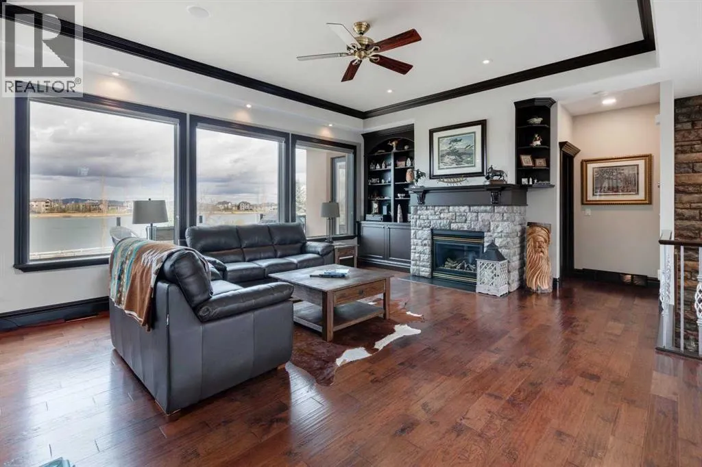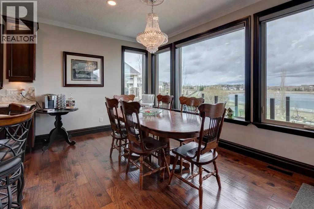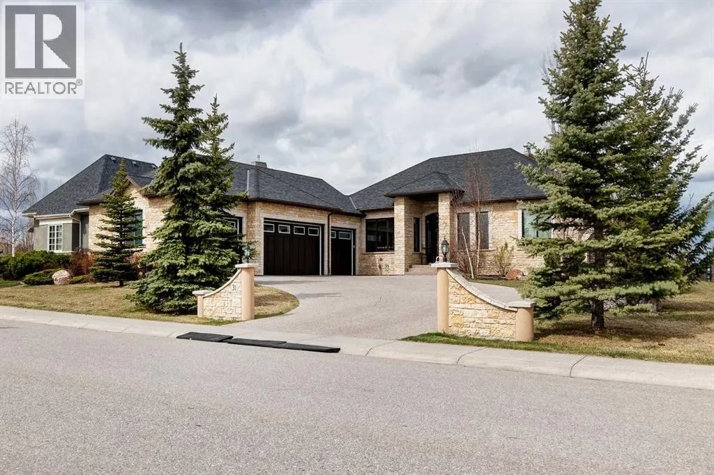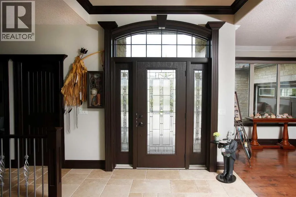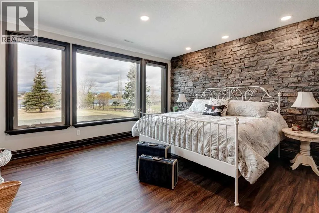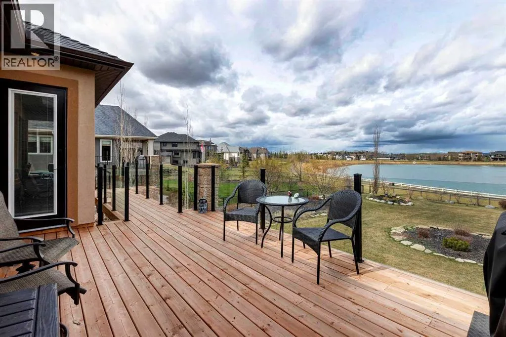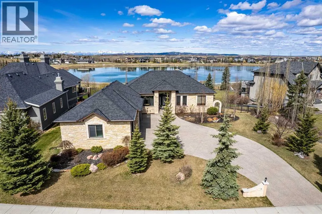 Luxurious Executive Custom-Built Bungalow Home with Walkout Basement backing onto the LAKE with SPECTACULAR ROCKY MOUNTAIN VIEWs. This home is in the charming community of Monterra on Cochrane Lakes. Country Living with City Convenience. This HOME nestled on .48 Acres offers over 3600SF of LIVING SPACE with HEATED 4 CAR GARAGE and a FENCED YARD. The features of this property are endless from the STONE ENTRANCE WING WALLS, exposed AGGREGATE DRIVEWAY to the EXTENSIVE RENOVATIONs. Step inside and be greeted by custom 10-foot ceilings, elegant hardwood flooring, and a wall of windows that provide expansive views and abundant natural light. Main level offers a PRIVATE OFFICE at the front of the home with custom built in bookcase, WALK-IN FRONT CLOSET with ample space, Luxurious OPEN SITTING/DINING AREA is off the living room, LIVINGROOM room offers a stone gas fireplace with custom made mantel, a wall of windows looking over the backyard toward the lake with the mountains beyond that. A âCHEF INSPIREDâ Kitchen with cooper hood fan, double wall oven, sizable island, undermount lighting and custom granite backsplashes that duplicates the look of mountains extending into the BUTLERS PANTRY, The LAUNDRY ROOM/MUD ROOM leads into the 4 car GARAGE for all your vehicles and toys. The PRIMARY BEDROOM offers a wall of windows with STUNNING VIEWS of the Rocky Mountains with access to the large deck overlooking the backyard and lake. Retreat to the 5-piece ensuite spa with heated floors, double vanities with leathered granite countertops, jet tub, large shower with body jets, and walk-in closet. LOWER LEVEL offers in-floor heat throughout, a floor to ceiling stone gas fireplace, and a wall of windows once again to enjoy the outdoor views. There are 2 VERY SPACIOUS BEDROOMS, a 4PC BATH with leathered granite countertop, separate tub and stone tile shower with jets, CUSTOMIZED WET BAR with cabinet and undermount lighting, granite counter tops and bar fridge offers a great entertainin g space, as does the great RECREATION ROOM for FAMILY FUN NIGHT and/or ENTERTAINING GUESTS. There is not a LUXURY or CRAFTMANSHIP that has been overlooked when this custom home was built or renovated, here are just a few: stunning unique interior stone walls, stone fireplaces, elegant crown moulding throughout, phantom doors to allow a nice breeze, LUX triple pane NEAT windows, surround sound throughout, and frameless decking system so as not to obstruct the magnificent views. The views are stunning from either level as are the gorgeous sunsets over the mountains. This is a MUST-SEE PROPERTY as very few properties in Monterra offer LAKE AND MOUNTAIN VIEWS AND A STUNNING HOME! Call today for your private viewing. (id:27476)