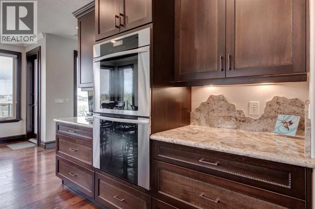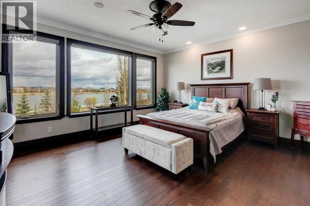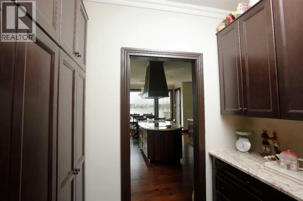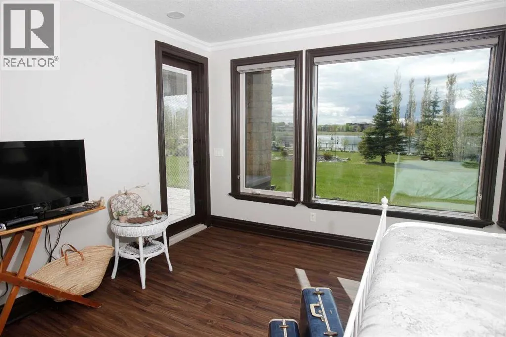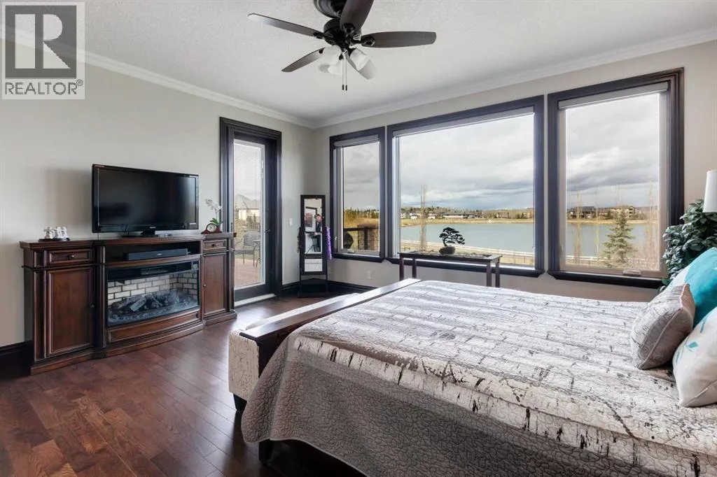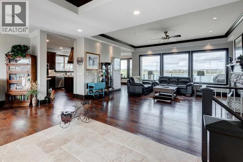 Luxurious Executive Custom-Built Bungalow Home with Walkout Basement backing onto the LAKE with SPECTACULAR ROCKY MOUNTAIN VIEWs. This home is in the charming community of Monterra on Cochrane Lakes. Country Living with City Convenience. This HOME nestled on .48 Acres offers over 3600SF of LIVING SPACE with HEATED 4 CAR GARAGE and a FENCED YARD. The features of this property are endless from the STONE ENTRANCE WING WALLS, exposed AGGREGATE DRIVEWAY to the EXTENSIVE RENOVATIONs. Step inside and be greeted by custom 10-foot ceilings, elegant hardwood flooring, and a wall of windows that provide expansive views and abundant natural light. Main level offers a PRIVATE OFFICE at the front of the home with custom built in bookcase, WALK-IN FRONT CLOSET with ample space, Luxurious OPEN SITTING/DINING AREA is off the living room, LIVINGROOM room offers a stone gas fireplace with custom made mantel, a wall of windows looking over the backyard toward the lake with the mountains beyond that. A âCHEF INSPIREDâ Kitchen with cooper hood fan, double wall oven, sizable island, undermount lighting and custom granite backsplashes that duplicates the look of mountains extending into the BUTLERS PANTRY, The LAUNDRY ROOM/MUD ROOM leads into the 4 car GARAGE for all your vehicles and toys. The PRIMARY BEDROOM offers a wall of windows with STUNNING VIEWS of the Rocky Mountains with access to the large deck overlooking the backyard and lake. Retreat to the 5-piece ensuite spa with heated floors, double vanities with leathered granite countertops, jet tub, large shower with body jets, and walk-in closet. LOWER LEVEL offers in-floor heat throughout, a floor to ceiling stone gas fireplace, and a wall of windows once again to enjoy the outdoor views. There are 2 VERY SPACIOUS BEDROOMS, a 4PC BATH with leathered granite countertop, separate tub and stone tile shower with jets, CUSTOMIZED WET BAR with cabinet and undermount lighting, granite counter tops and bar fridge offers a great entertainin g space, as does the great RECREATION ROOM for FAMILY FUN NIGHT and/or ENTERTAINING GUESTS. There is not a LUXURY or CRAFTMANSHIP that has been overlooked when this custom home was built or renovated, here are just a few: stunning unique interior stone walls, stone fireplaces, elegant crown moulding throughout, phantom doors to allow a nice breeze, LUX triple pane NEAT windows, surround sound throughout, and frameless decking system so as not to obstruct the magnificent views. The views are stunning from either level as are the gorgeous sunsets over the mountains. This is a MUST-SEE PROPERTY as very few properties in Monterra offer LAKE AND MOUNTAIN VIEWS AND A STUNNING HOME! Call today for your private viewing. (id:27476)