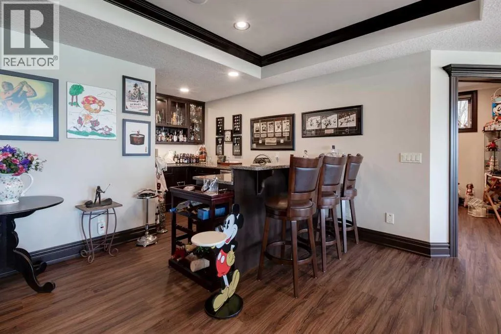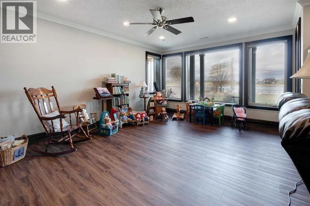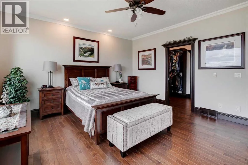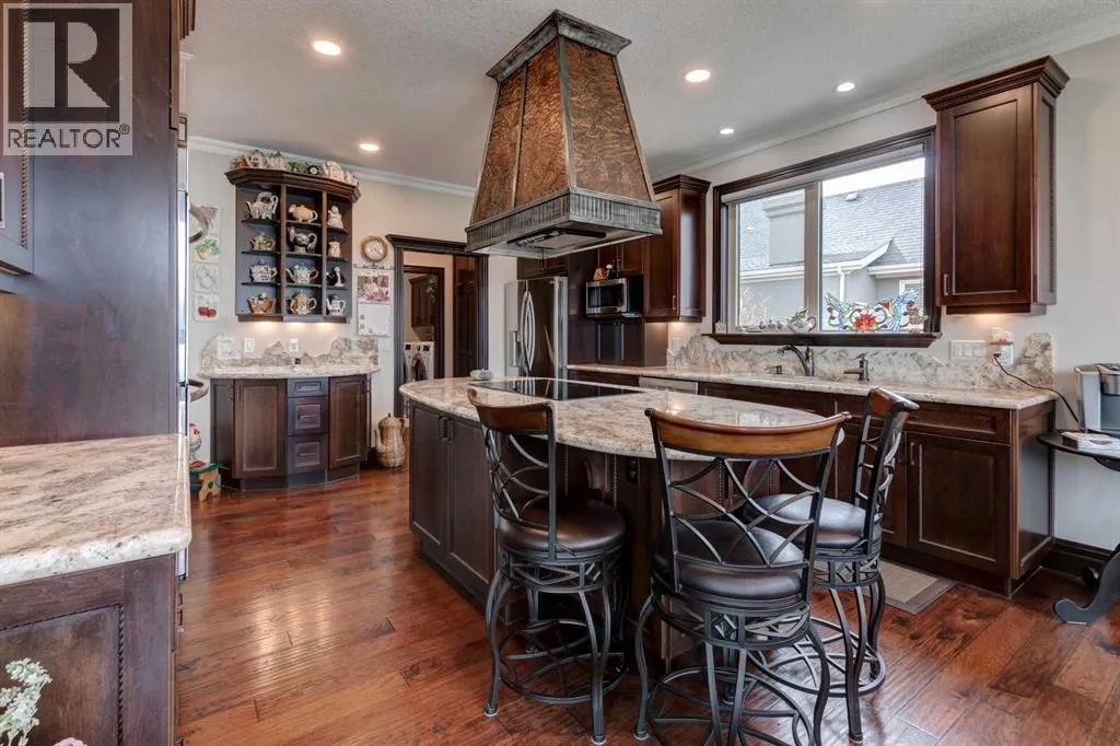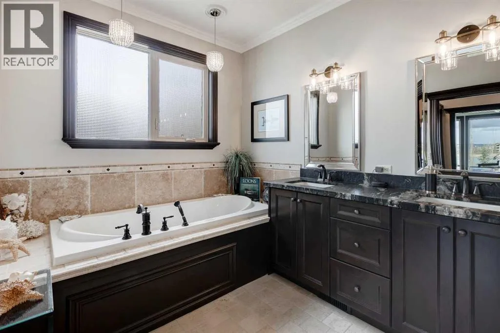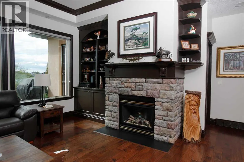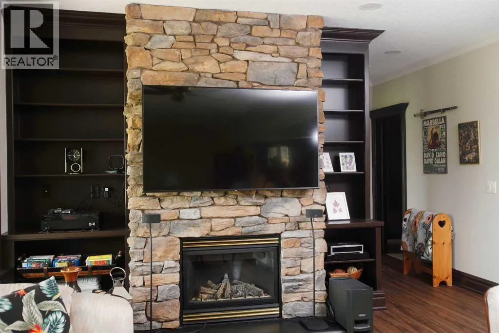 Luxurious Executive Custom-Built Bungalow Home with Walkout Basement backing onto the LAKE with SPECTACULAR ROCKY MOUNTAIN VIEWs. This home is in the charming community of Monterra on Cochrane Lakes. Country Living with City Convenience. This HOME nestled on .48 Acres offers over 3600SF of LIVING SPACE with HEATED 4 CAR GARAGE and a FENCED YARD. The features of this property are endless from the STONE ENTRANCE WING WALLS, exposed AGGREGATE DRIVEWAY to the EXTENSIVE RENOVATIONs. Step inside and be greeted by custom 10-foot ceilings, elegant hardwood flooring, and a wall of windows that provide expansive views and abundant natural light. Main level offers a PRIVATE OFFICE at the front of the home with custom built in bookcase, WALK-IN FRONT CLOSET with ample space, Luxurious OPEN SITTING/DINING AREA is off the living room, LIVINGROOM room offers a stone gas fireplace with custom made mantel, a wall of windows looking over the backyard toward the lake with the mountains beyond that. A âCHEF INSPIREDâ Kitchen with cooper hood fan, double wall oven, sizable island, undermount lighting and custom granite backsplashes that duplicates the look of mountains extending into the BUTLERS PANTRY, The LAUNDRY ROOM/MUD ROOM leads into the 4 car GARAGE for all your vehicles and toys. The PRIMARY BEDROOM offers a wall of windows with STUNNING VIEWS of the Rocky Mountains with access to the large deck overlooking the backyard and lake. Retreat to the 5-piece ensuite spa with heated floors, double vanities with leathered granite countertops, jet tub, large shower with body jets, and walk-in closet. LOWER LEVEL offers in-floor heat throughout, a floor to ceiling stone gas fireplace, and a wall of windows once again to enjoy the outdoor views. There are 2 VERY SPACIOUS BEDROOMS, a 4PC BATH with leathered granite countertop, separate tub and stone tile shower with jets, CUSTOMIZED WET BAR with cabinet and undermount lighting, granite counter tops and bar fridge offers a great entertainin g space, as does the great RECREATION ROOM for FAMILY FUN NIGHT and/or ENTERTAINING GUESTS. There is not a LUXURY or CRAFTMANSHIP that has been overlooked when this custom home was built or renovated, here are just a few: stunning unique interior stone walls, stone fireplaces, elegant crown moulding throughout, phantom doors to allow a nice breeze, LUX triple pane NEAT windows, surround sound throughout, and frameless decking system so as not to obstruct the magnificent views. The views are stunning from either level as are the gorgeous sunsets over the mountains. This is a MUST-SEE PROPERTY as very few properties in Monterra offer LAKE AND MOUNTAIN VIEWS AND A STUNNING HOME! Call today for your private viewing. (id:27476)