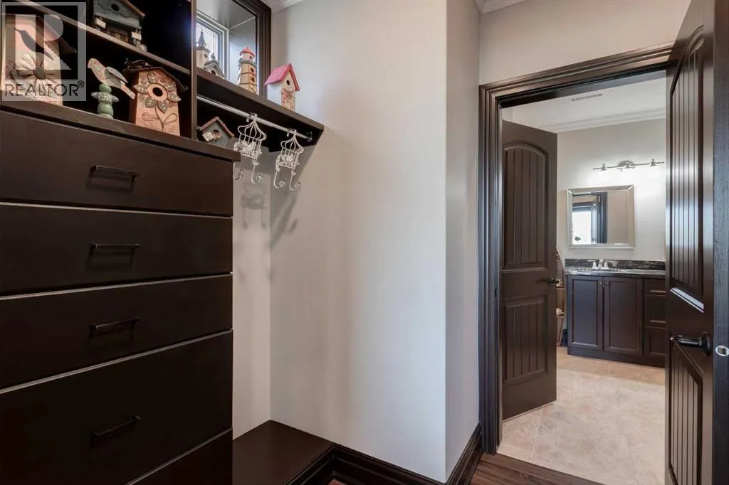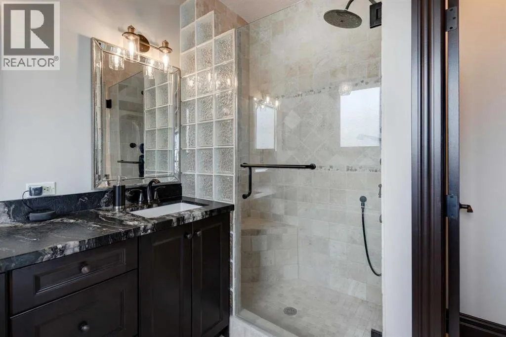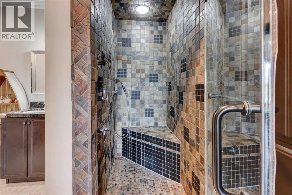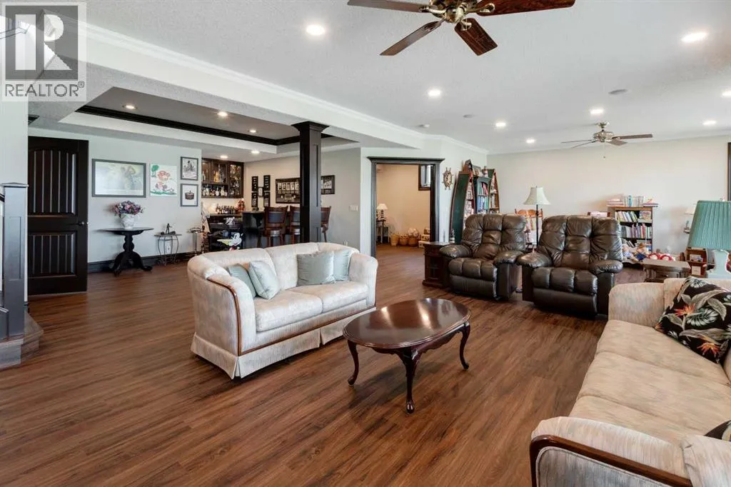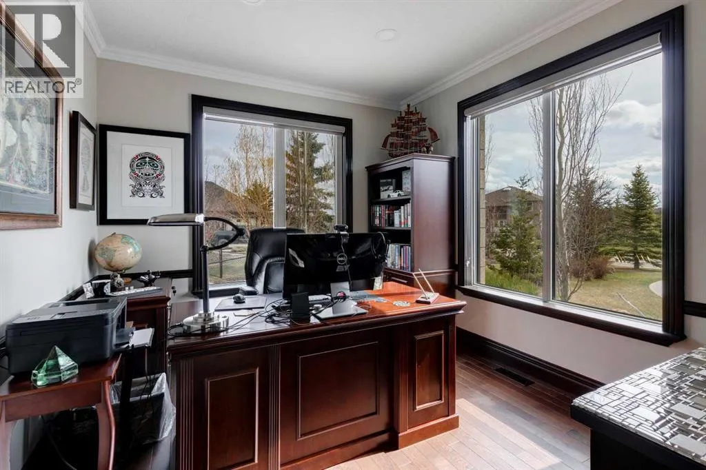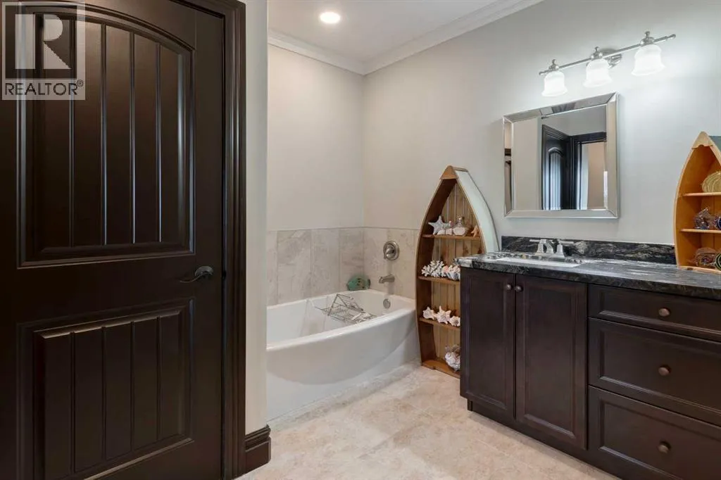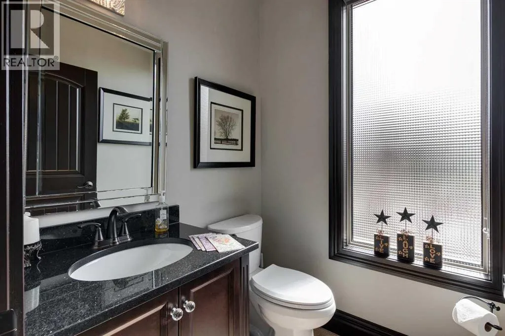 Luxurious Executive Custom-Built Bungalow Home with Walkout Basement backing onto the LAKE with SPECTACULAR ROCKY MOUNTAIN VIEWs. This home is in the charming community of Monterra on Cochrane Lakes. Country Living with City Convenience. This HOME nestled on .48 Acres offers over 3600SF of LIVING SPACE with HEATED 4 CAR GARAGE and a FENCED YARD. The features of this property are endless from the STONE ENTRANCE WING WALLS, exposed AGGREGATE DRIVEWAY to the EXTENSIVE RENOVATIONs. Step inside and be greeted by custom 10-foot ceilings, elegant hardwood flooring, and a wall of windows that provide expansive views and abundant natural light. Main level offers a PRIVATE OFFICE at the front of the home with custom built in bookcase, WALK-IN FRONT CLOSET with ample space, Luxurious OPEN SITTING/DINING AREA is off the living room, LIVINGROOM room offers a stone gas fireplace with custom made mantel, a wall of windows looking over the backyard toward the lake with the mountains beyond that. A âCHEF INSPIREDâ Kitchen with cooper hood fan, double wall oven, sizable island, undermount lighting and custom granite backsplashes that duplicates the look of mountains extending into the BUTLERS PANTRY, The LAUNDRY ROOM/MUD ROOM leads into the 4 car GARAGE for all your vehicles and toys. The PRIMARY BEDROOM offers a wall of windows with STUNNING VIEWS of the Rocky Mountains with access to the large deck overlooking the backyard and lake. Retreat to the 5-piece ensuite spa with heated floors, double vanities with leathered granite countertops, jet tub, large shower with body jets, and walk-in closet. LOWER LEVEL offers in-floor heat throughout, a floor to ceiling stone gas fireplace, and a wall of windows once again to enjoy the outdoor views. There are 2 VERY SPACIOUS BEDROOMS, a 4PC BATH with leathered granite countertop, separate tub and stone tile shower with jets, CUSTOMIZED WET BAR with cabinet and undermount lighting, granite counter tops and bar fridge offers a great entertainin g space, as does the great RECREATION ROOM for FAMILY FUN NIGHT and/or ENTERTAINING GUESTS. There is not a LUXURY or CRAFTMANSHIP that has been overlooked when this custom home was built or renovated, here are just a few: stunning unique interior stone walls, stone fireplaces, elegant crown moulding throughout, phantom doors to allow a nice breeze, LUX triple pane NEAT windows, surround sound throughout, and frameless decking system so as not to obstruct the magnificent views. The views are stunning from either level as are the gorgeous sunsets over the mountains. This is a MUST-SEE PROPERTY as very few properties in Monterra offer LAKE AND MOUNTAIN VIEWS AND A STUNNING HOME! Call today for your private viewing. (id:27476)