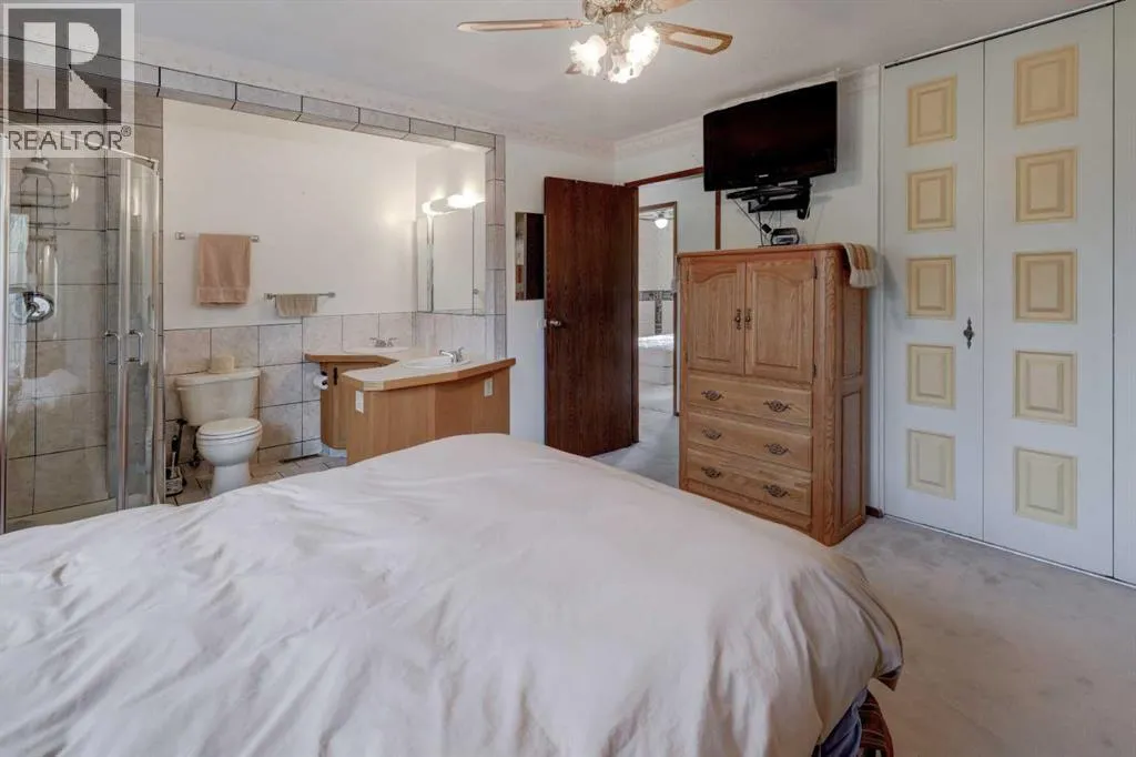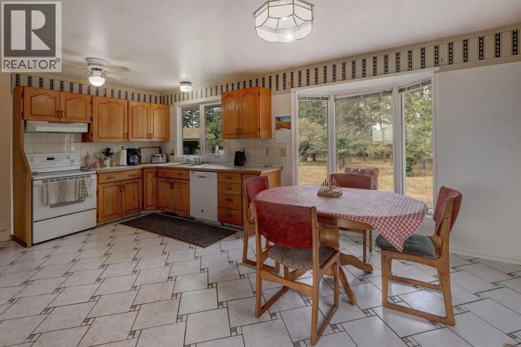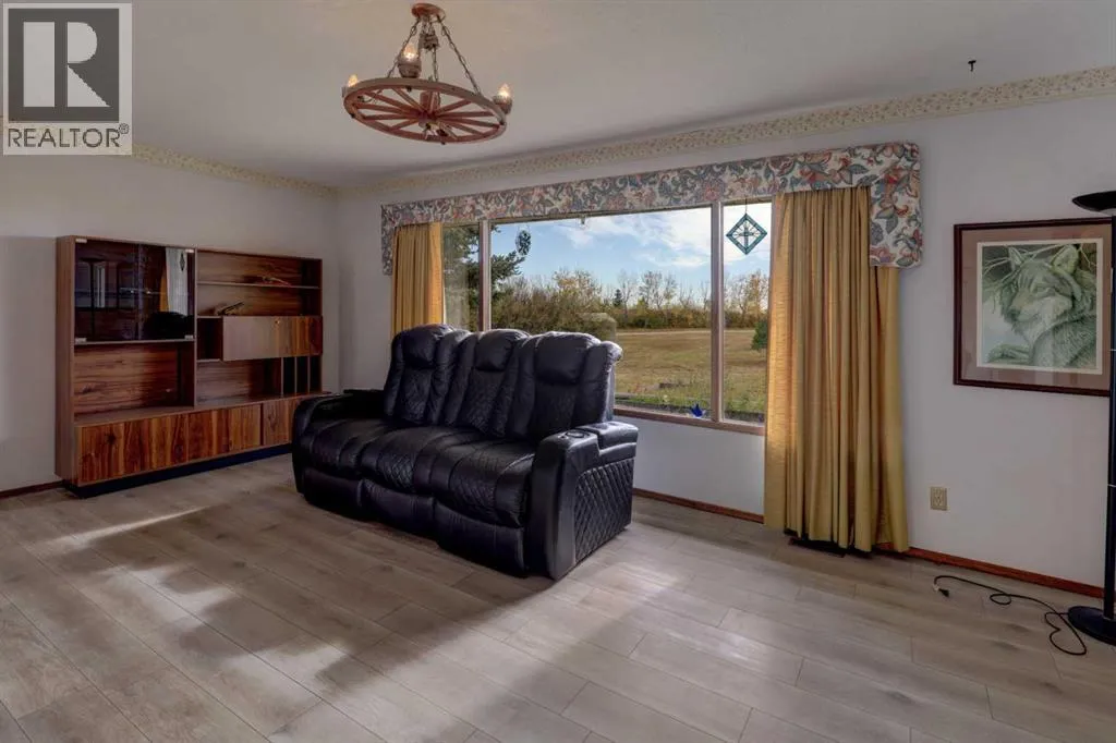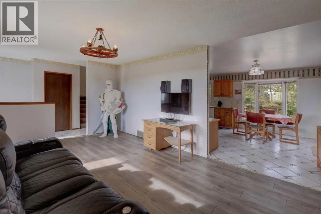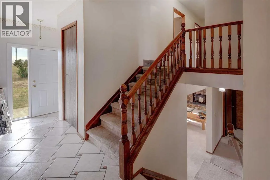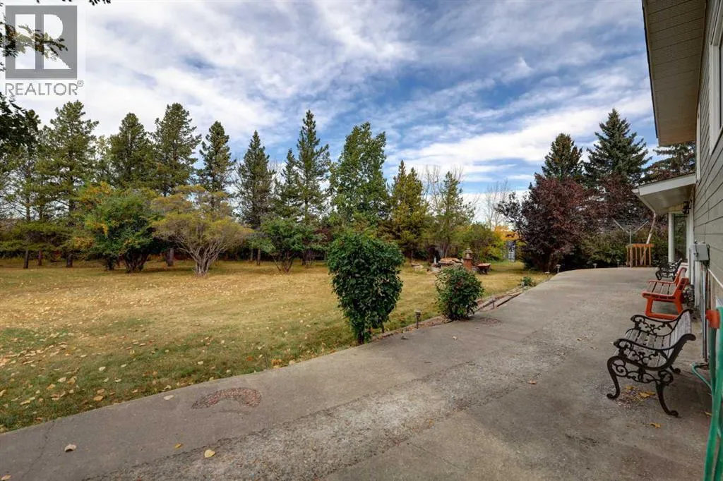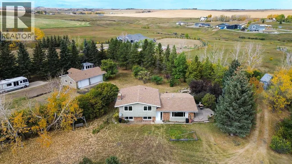 OPEN HOUSE SATURDAY NOVEMBER 1ST FROM 1-3PM. Experience the best of country living just 5 minutes from town! Tucked away on 4 private, beautifully treed acres, this charming 4-level split is the perfect retreat for those craving space, privacy, and a touch of nature. Step inside and youâre welcomed by a bright open-concept kitchen and dining area that flows into the living room, where large windows frame peaceful country views. Upstairs youâll find 3 comfortable bedrooms and 2 full bathrooms, including a relaxing primary suite with its own 4-piece ensuite. The lower level offers cozy family living with a wood-burning stove, a 4th bedroom, laundry, and an additional bathroom. Head down one more level to the basement and youâll discover a games room (yesâthe pool table stays!), bar area, plus plenty of storage and a cold room for all your extras. Recent updates mean peace of mind: new roof (2023), newer composite siding, newer septic tank (approx. 5 years), hot water tank and some new doors/windows (2025). But the real treasure is outsideâwhether youâre tinkering in the heated triple garage and shop, relaxing by the waterfall pond, or enjoying evenings in the bunkhouse with its own propane stove and power. Thereâs room for animals with a paddock and shelter, plenty of sheds for storage, RV parking, and rows of fruit trees that add both privacy and charm. This isnât just a propertyâitâs a lifestyle. A place where you can breathe, unwind, and enjoy the tranquility of acreage living, all while being just minutes from Airdrie. (id:27476)