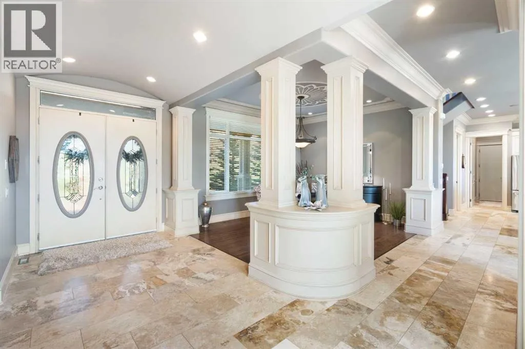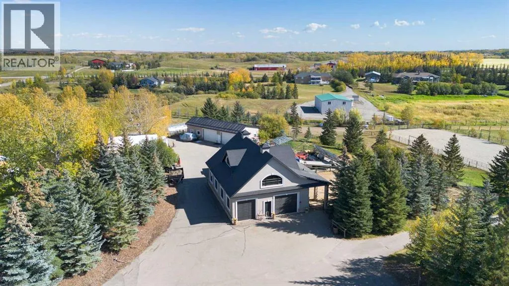** CHECK OUT OUR CINEMATIC TOUR (iGUIDE)** Unbeatable value on 22 ACRES in the beautiful countryside of Bearspaw, Alberta! Yet only a 10 minute drive to Calgary city limits and the nearest Co-op Grocery Store, Gas Station, Tim Hortons and towards the MOUNTAINS a 15 minute drive into Cochrane. Experience peaceful country living at its finest in this stunning estate, custom-built by McKinley Master Builders. Nestled on 22 beautifully landscaped acres with stocked ponds, WATERFALLS, and total privacy, this home offers over 6268sq ft of luxurious living space across three levels. The open-concept main floor features architecturally impressive ceilings, gleaming hardwood and tile floors, a cozy living room with fireplace, formal dining area, and a designer kitchen with top-tier finishes; Miele and Kitchenaid appliances. You'll also find a spacious home office and a private primary bedroom; a serene RETREAT with walk-in closet and a luxury 5-piece ensuite with resort-style finishes. Upstairs, enjoy a lofted conservatory, and a guest suite with its own 3-piece ensuite. For absolute convenience the laundry room is also on the main floor and also roughed in on the basement level. The fully developed walk-out level, with in-floor heating, includes a large family room, game/media areas, three bedrooms (two with private ensuites), as well as another 3-piece bathroom. Additional highlights: New roof in 2025, 200amp, in-floor heating in Kitchen and Primary Bedroom/Ensuite, Phantom screens throughout, 4-car heated garage. Expansive deck with outdoor kitchen including Thermador BBQ. A ~3000 sqft barn with removable stalls, 2-pc bathroom and a 2-post care lift included. (ideal for a show garage, dog kennel, or any hobbyist dream space). Additional 1472 sqft workshop with 2-post car lift included. Green house and covered hay storage. Full-sized outdoor riding arena. Hone your riding skills and show off your HORSES! Fenced and gated horse trail encircling the entire property. A rar e opportunity to own a true retreat just minutes from the city. Donât miss it! (id:27476)